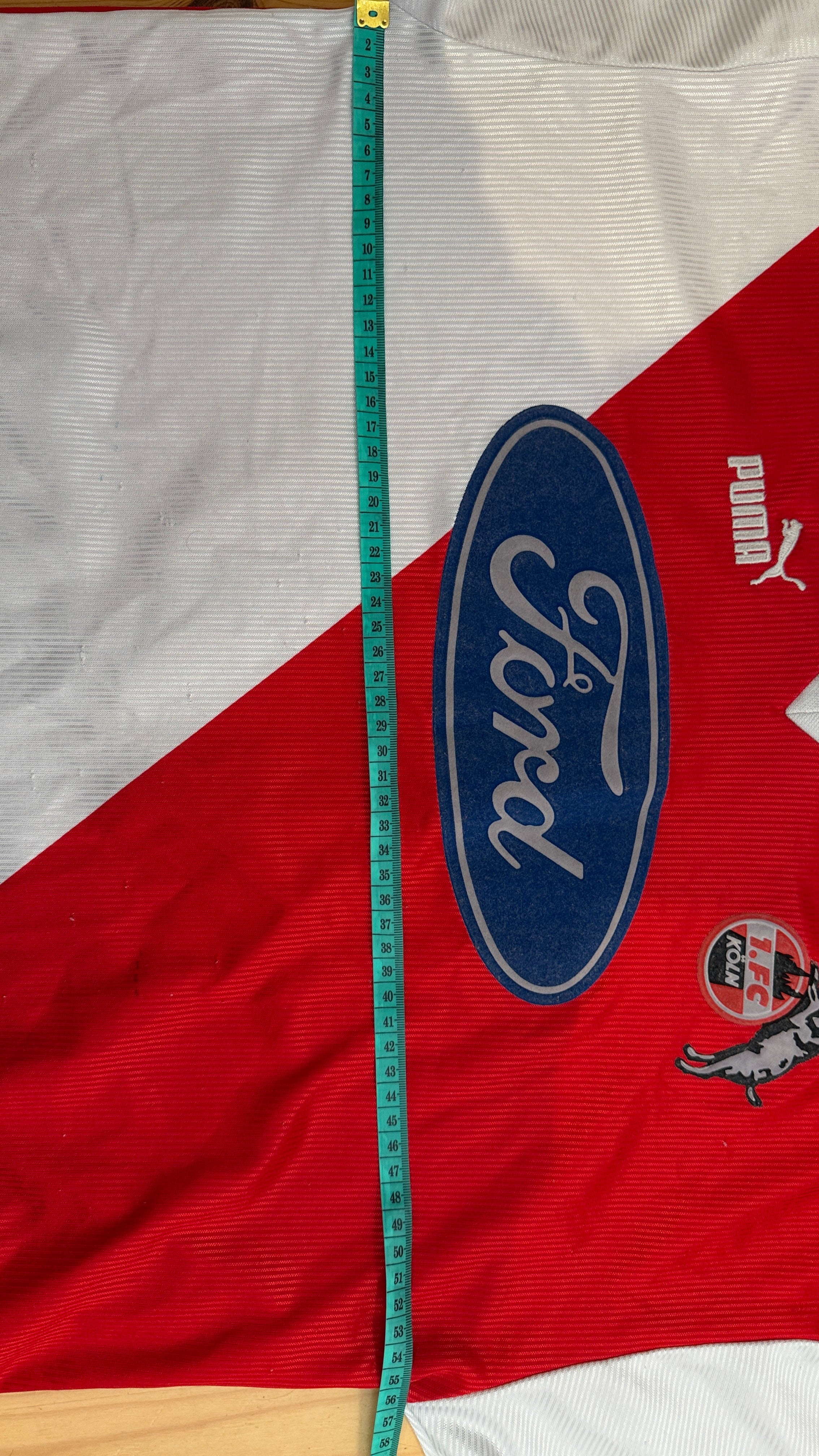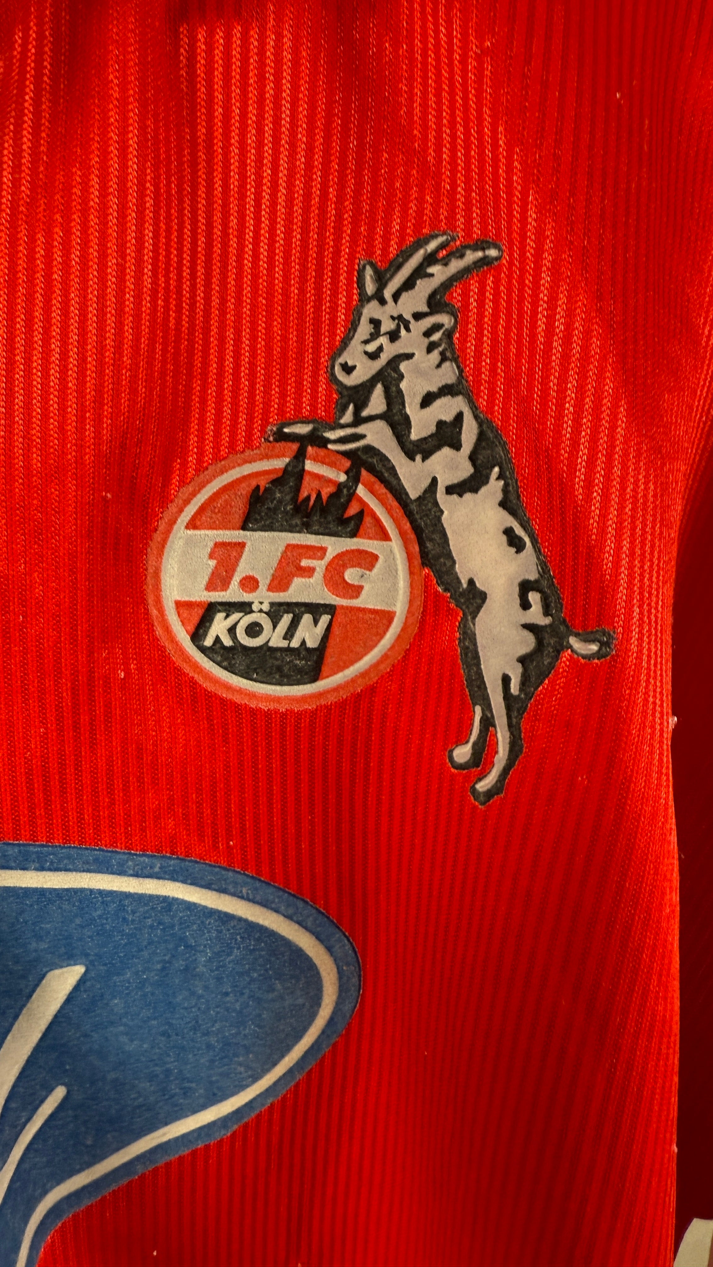 BESONDERHEITEN – Besonderes Jubiläumstrikot des 1. FC Köln aus der Saison 1997/98 mit Ford-Sponsor und Spielernamen Schuster (#7). Klassisches Puma-Design mit Retro-Details zum Vereinsjubiläum. Sehr seltenes Original und echtes Highlight für Effzeh-Sammler.