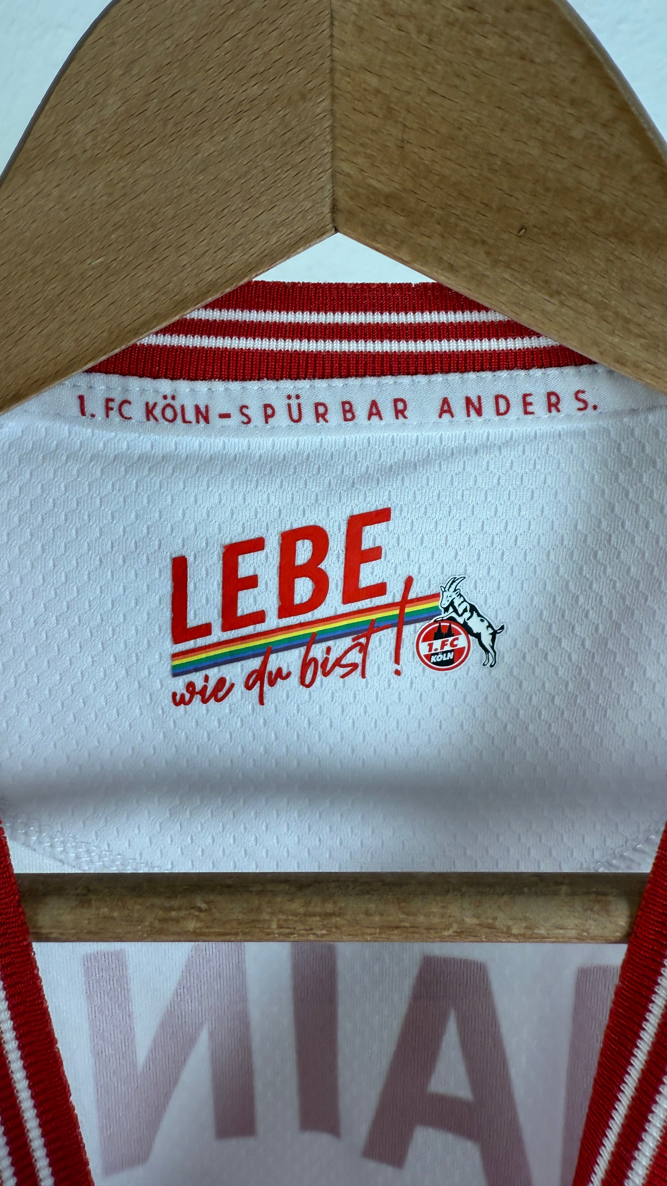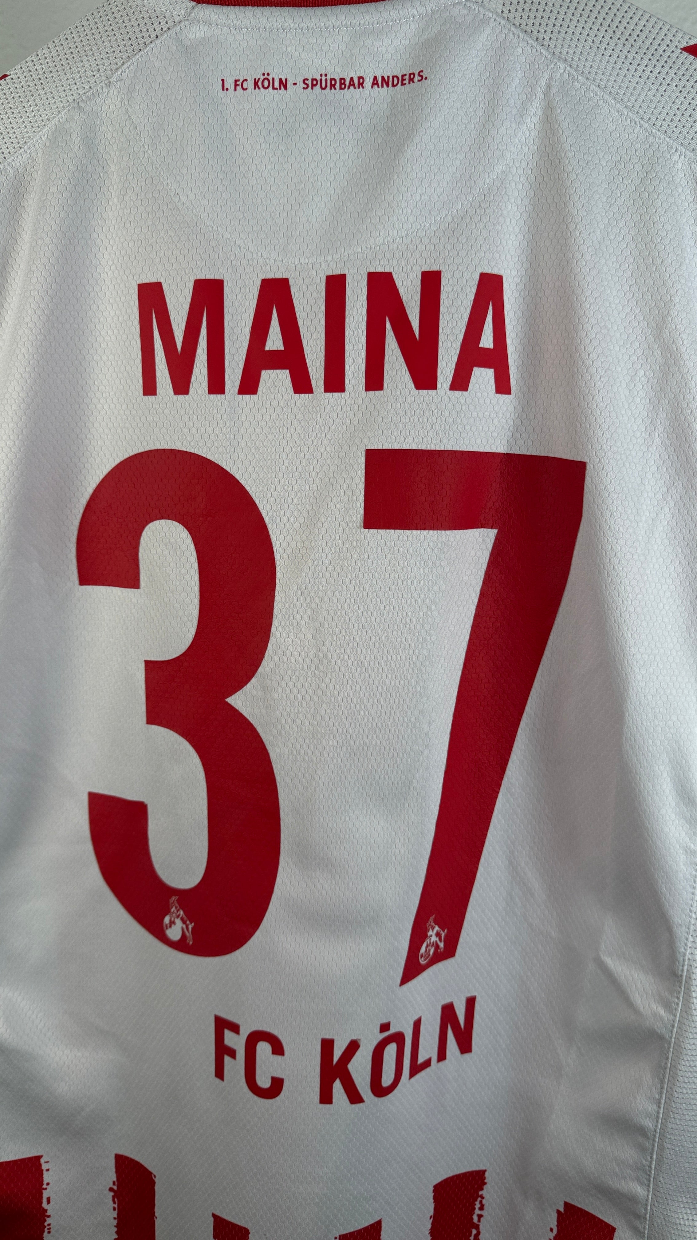 BESONDERHEITEN – Originale Spieler-Version des Heimtrikots vom 1. FC Köln aus der Saison 2022/23 mit originaler Beflockung von Linton Maina #37. Mit offiziellen Europa-Conference-League-Patches auf den Ärmeln. Sehr seltenes Sammlerstück aus der Europapokal-Saison der Geißböcke.