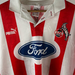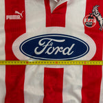 Originales Heimtrikot des 1. FC Köln aus der Saison 1995/96, getragen zu Zeiten von Toni Polster. Klassisches Puma-Design mit Ford-Sponsor und markantem Retro-Kragen. Ein echtes Sammlerstück für Fans des Effzeh und 90s-Vintage-Shirts.