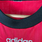 Besonderheiten: Original Heimtrikot von 1. FC Nürnberg aus der Saison 1997/98. Markantes Design mit auffälligem Jacquardmuster, schwarzen Kontrastärmeln, klassischen adidas-Streifen und hochwertig gesticktem Vereinslogo. Ein echtes Highlight für 1. FC Nürnberg-Fans und Sammler.