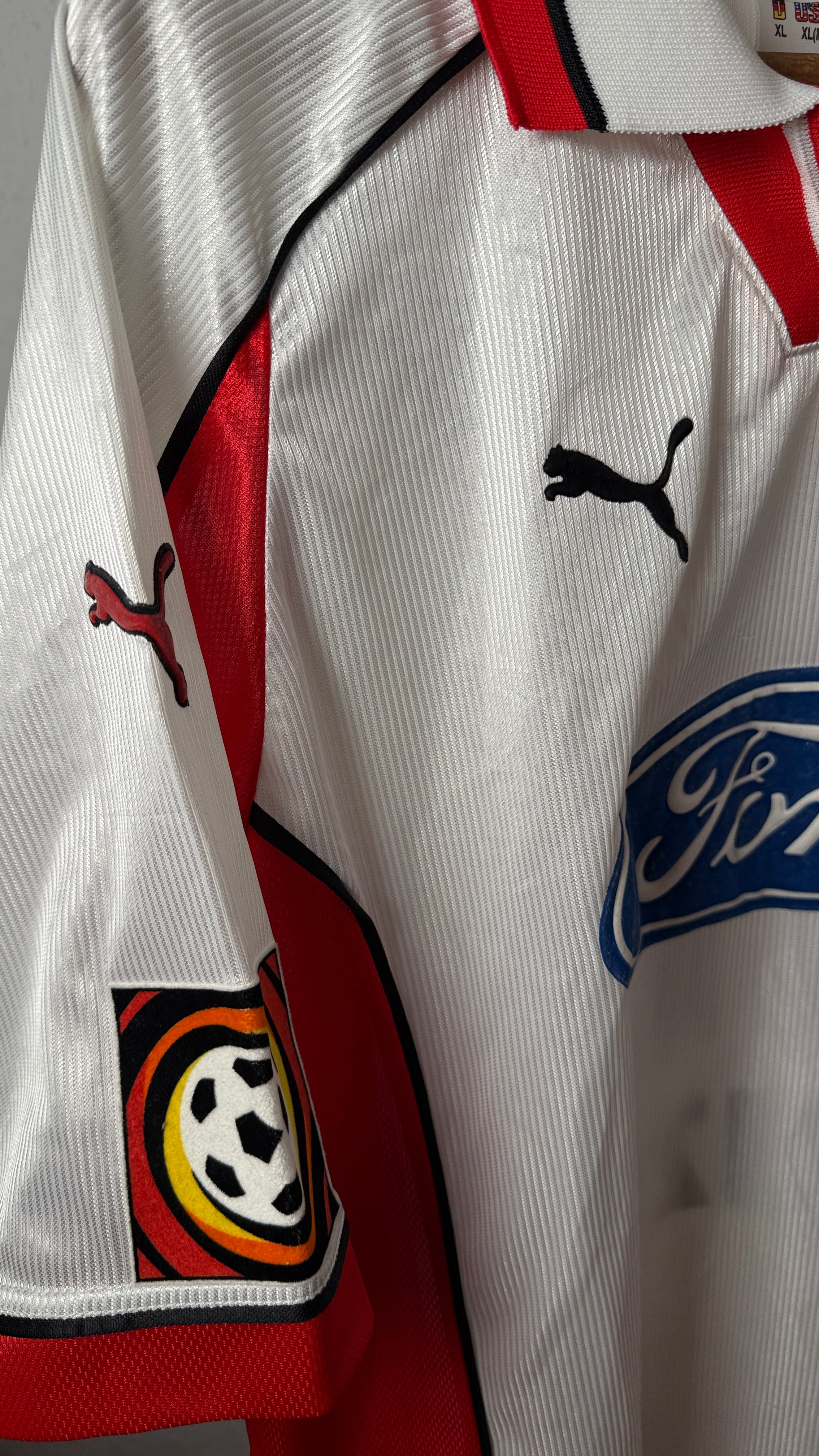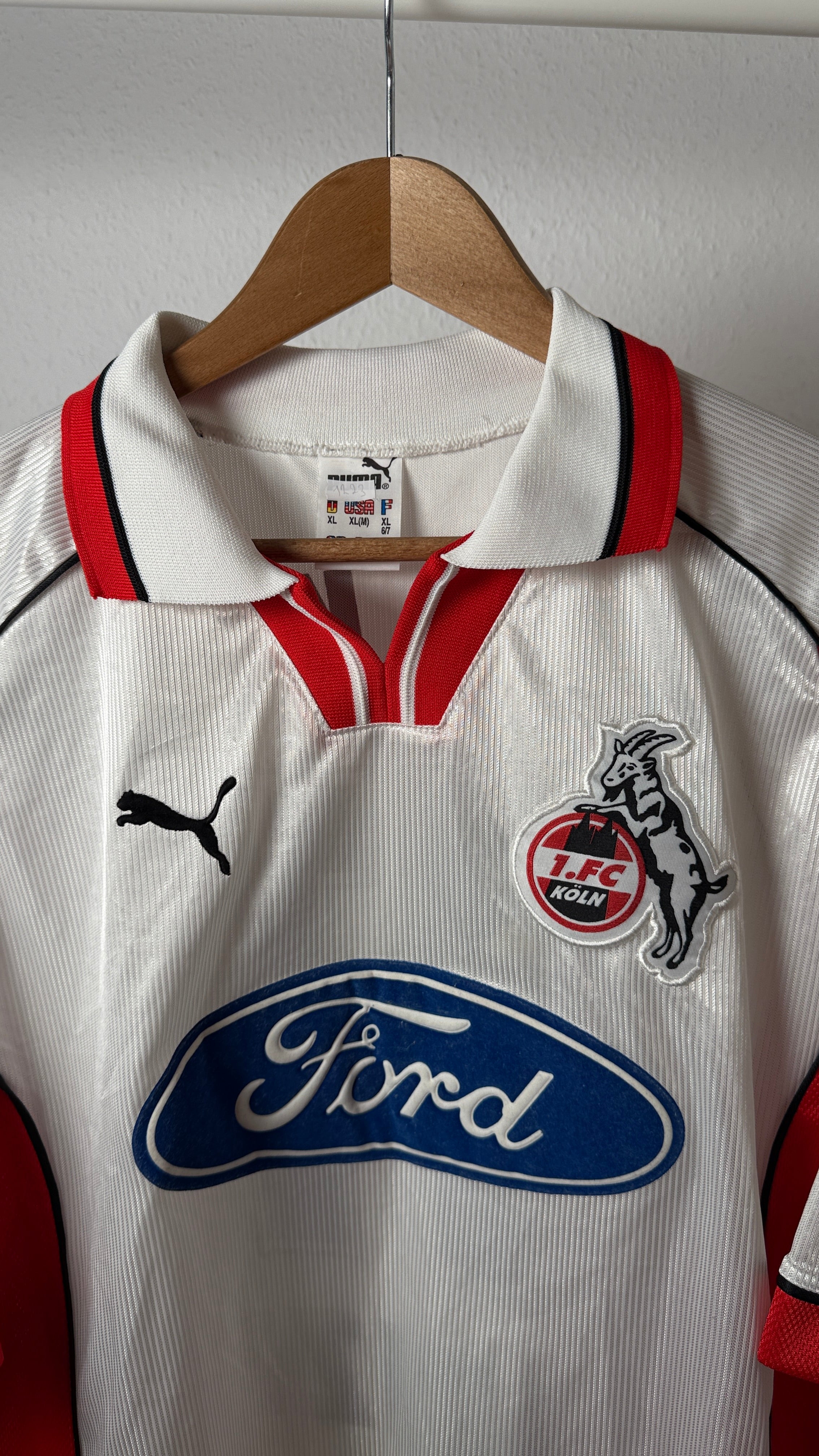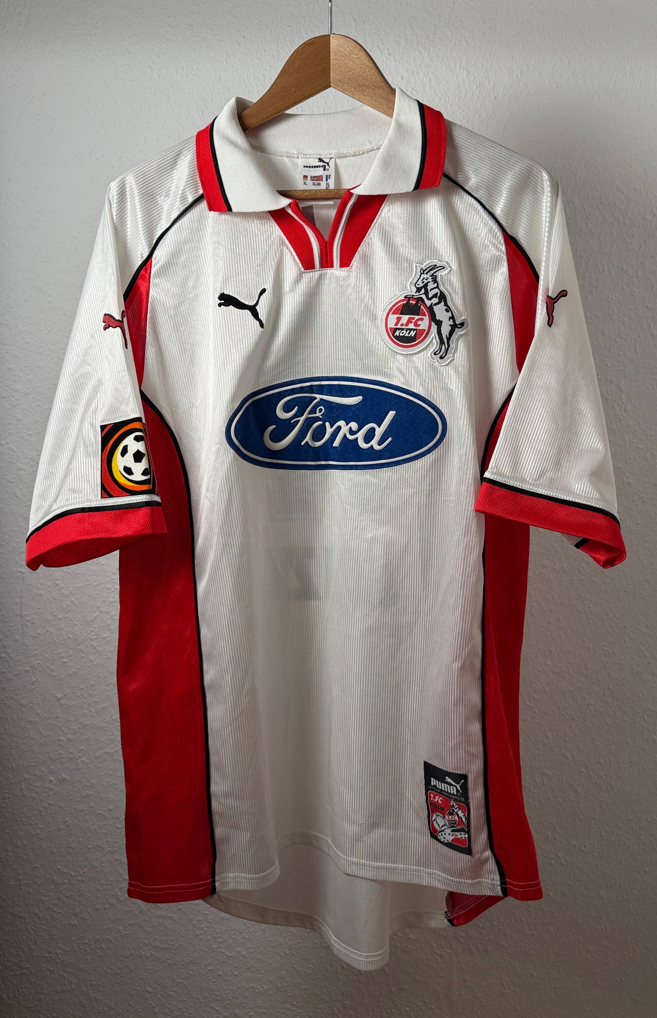 • BESONDERHEITEN – Wunderschönes und seltenes Heimtrikot des 1. FC Köln aus der Saison 1998/99 mit originalem Azizi #11-Flock. Klassisches Puma-Design der späten 90er mit dem ikonischen Ford-Sponsor. In dieser Größe und in nahezu neuwertigem Zustand extrem schwer zu finden – ein Topstück für Effzeh-Fans und Vintage-Sammler.