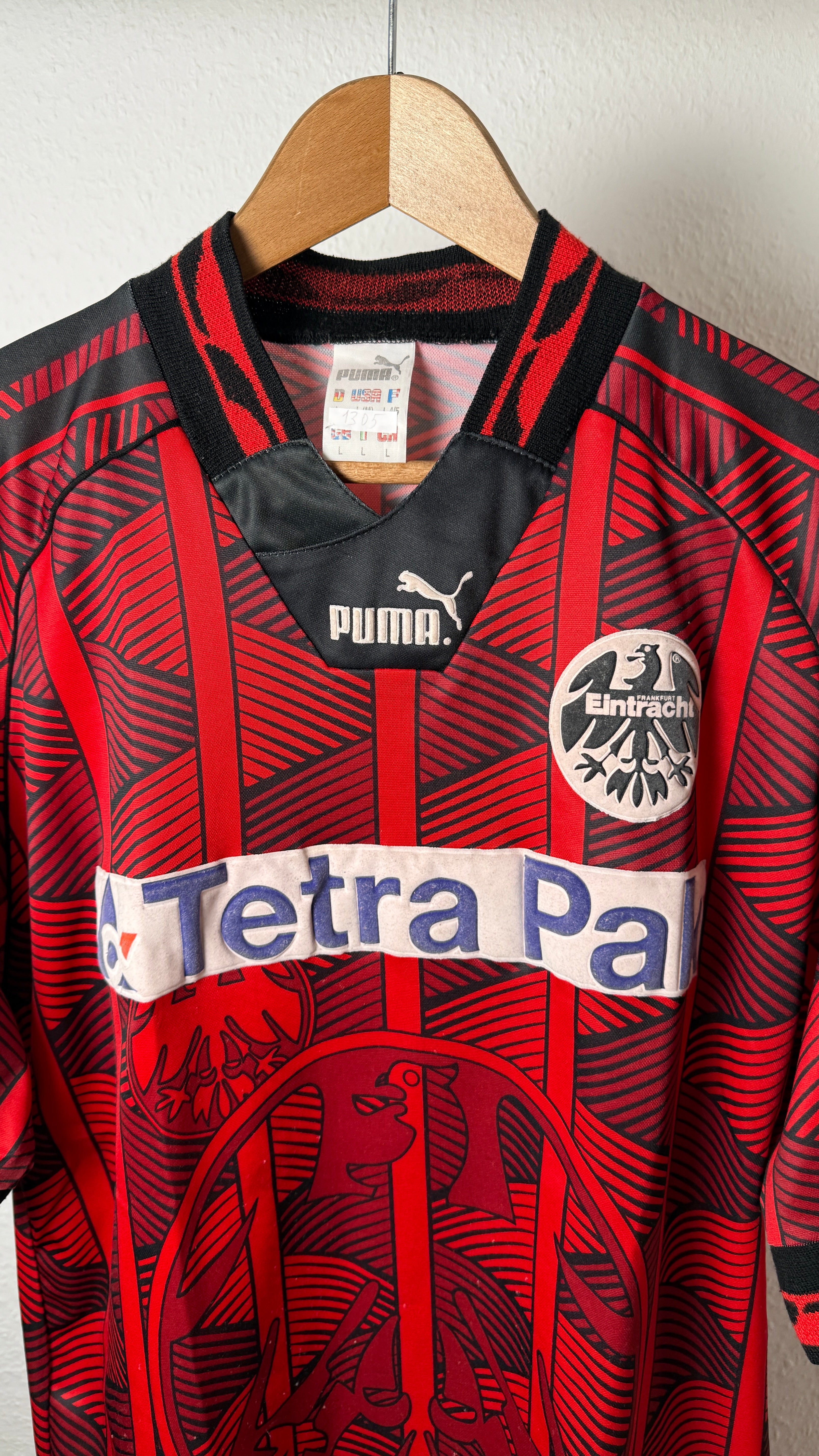 Original Heimtrikot von Eintracht Frankfurt aus dem Jahr 1995 mit legendärem Tetra Pak Sponsor. Klassisches Puma-Design aus den 90ern – ein begehrtes Sammlerstück für Eintracht-Fans und Vintage-Liebhaber.