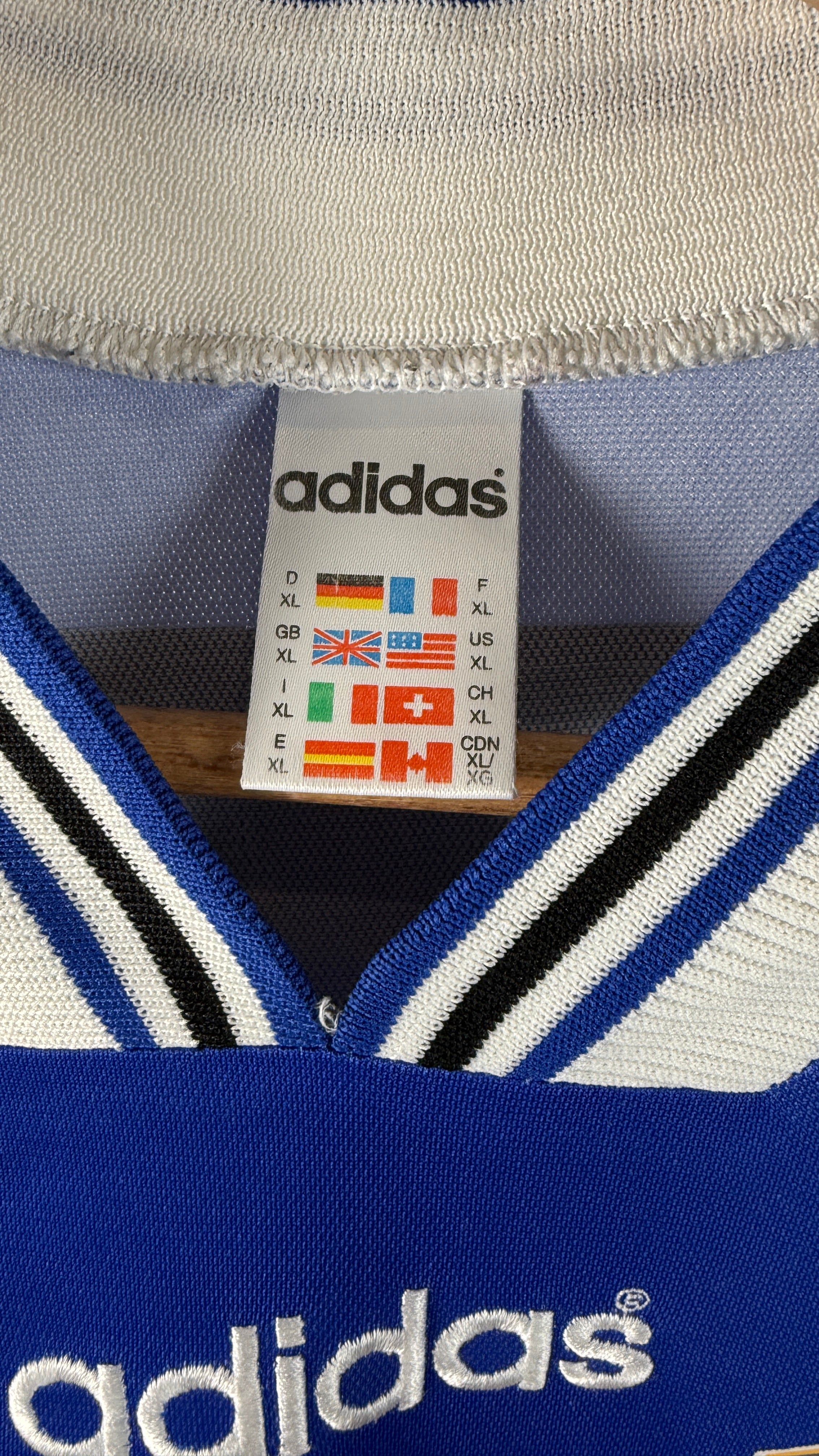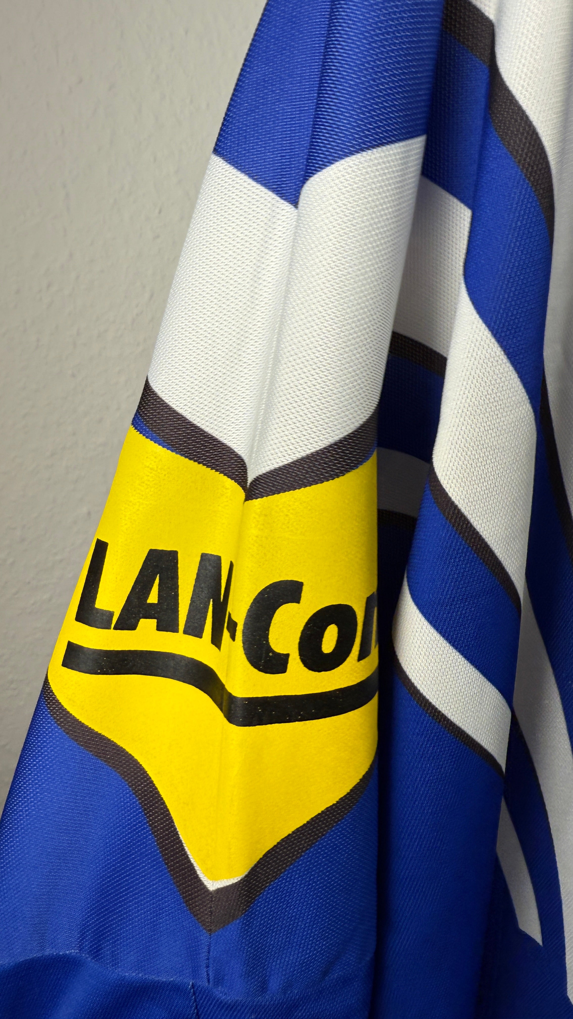 ZUSTAND – Gut – das Trikot befindet sich in gutem Vintage-Zustand, mit leichten Gebrauchsspuren am Sponsor (siehe Fotos).