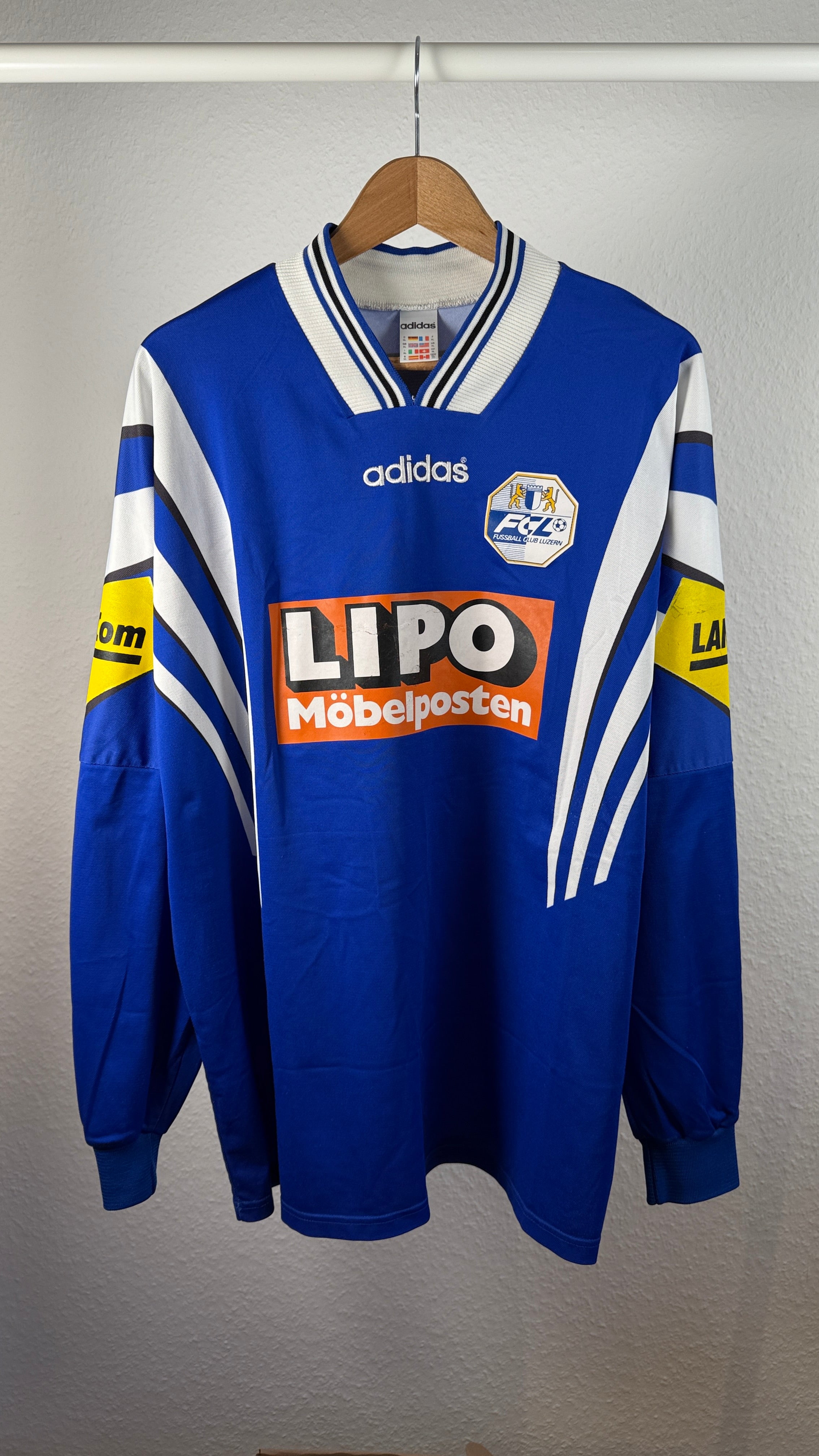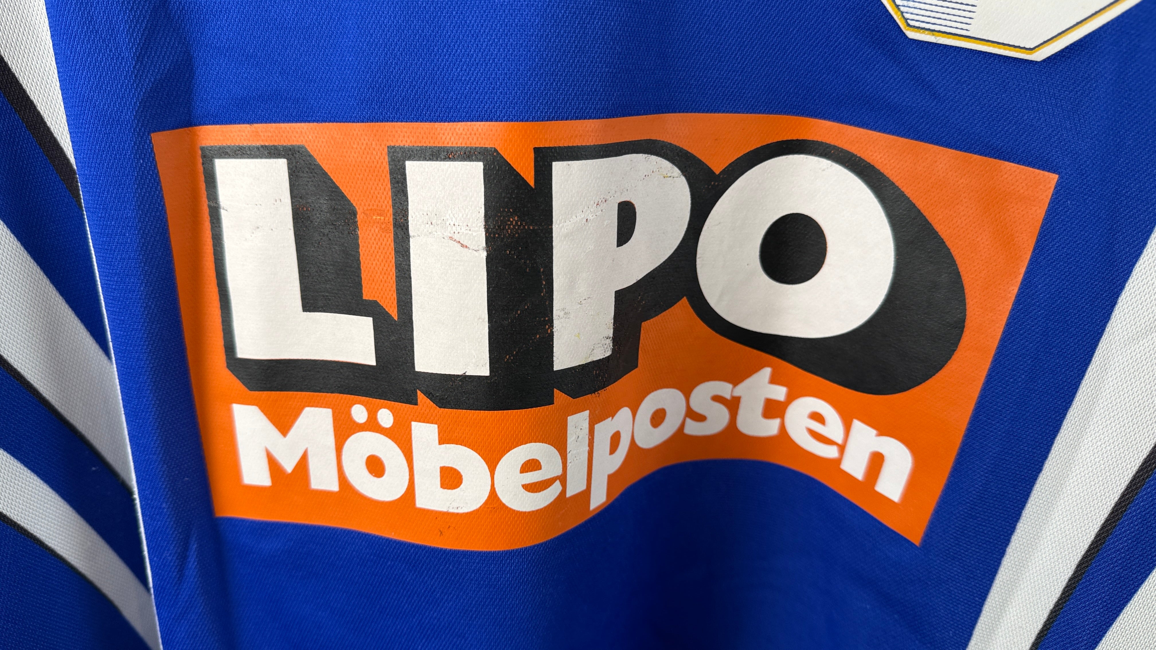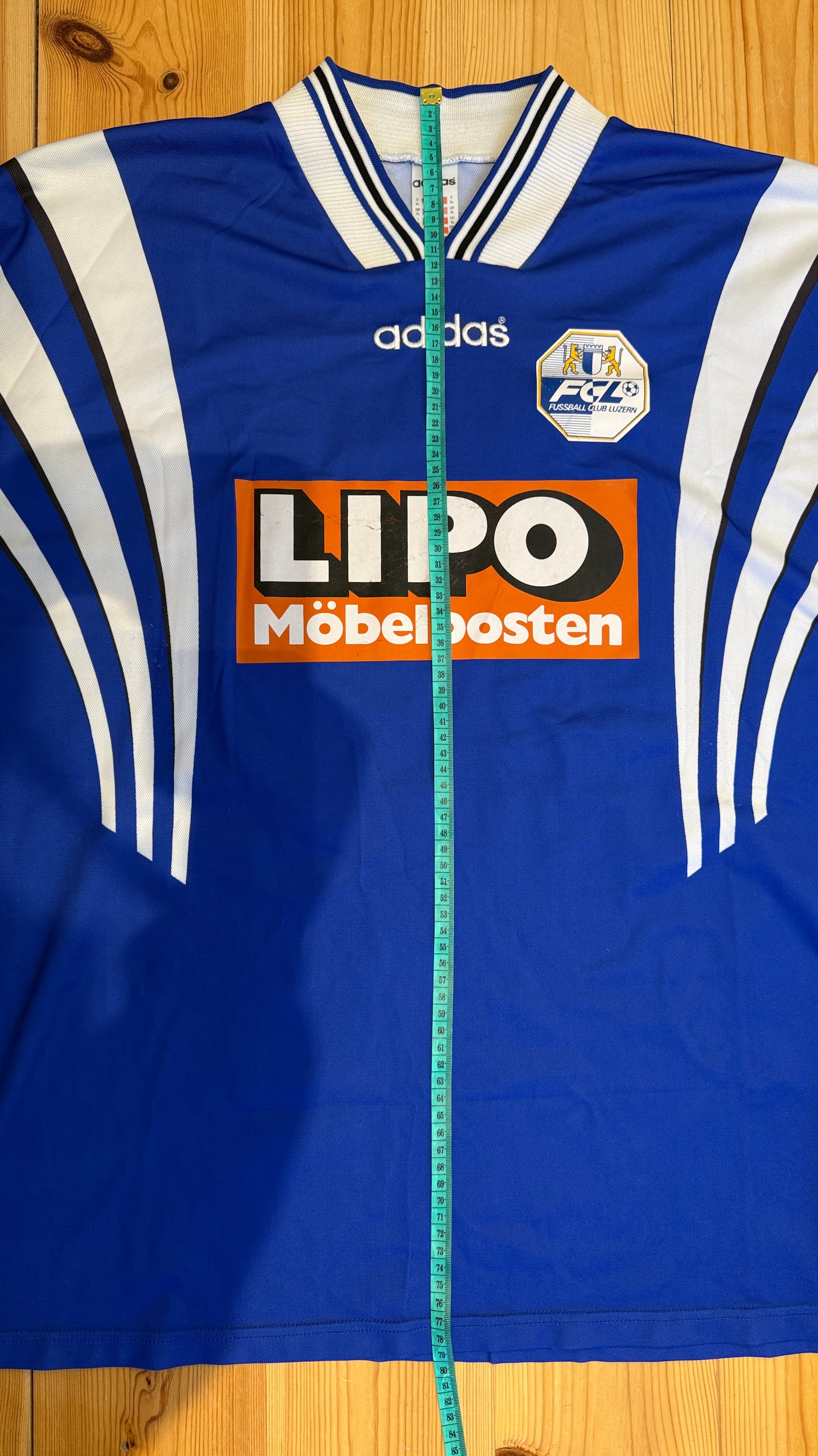 BESONDERHEITEN – Originale Spielerversion Langarm des FC Luzern Heimtrikots aus der Saison 1997/98 mit Flock von Joller #7. Profi-Version mit den charakteristischen langen Ärmeln, hochwertigem Stoff und aufgenähtem Lipo Möbelposten-Sponsor. Ein seltenes Stück Schweizer Fußballgeschichte und ein Highlight für Sammler von 90er-Trikots.
