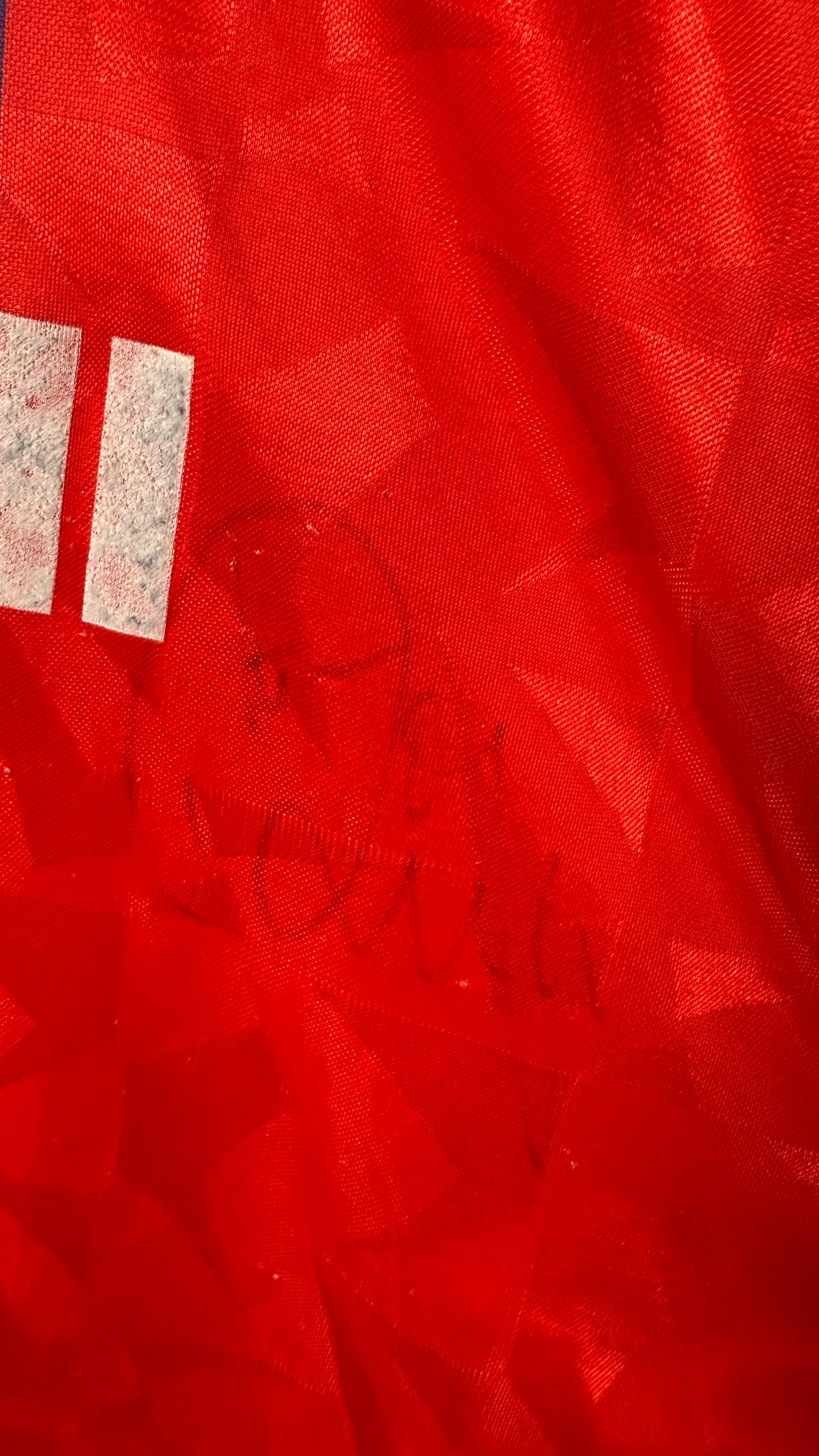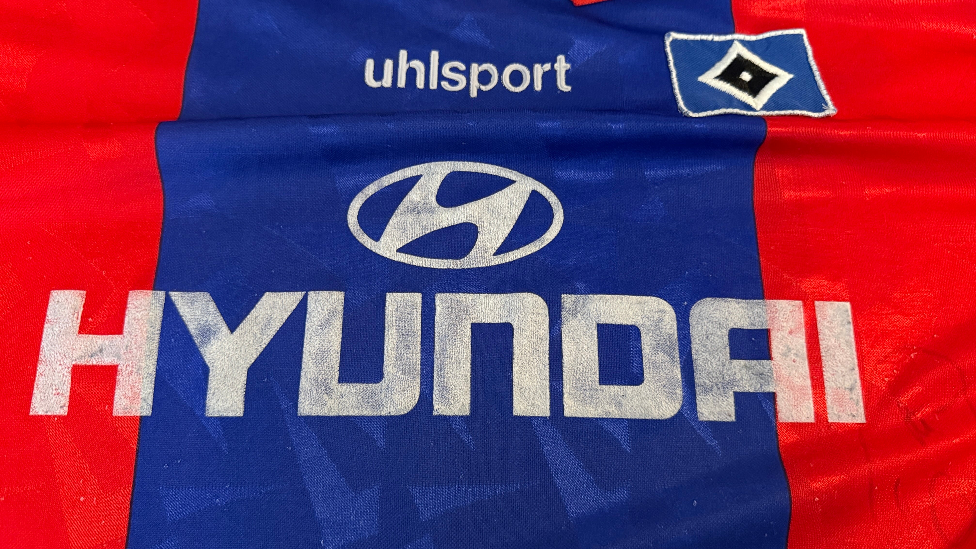 Autogramm auf der Brust (nicht identifiziert) – möglicherweise von einem HSV-Spieler aus der Saison