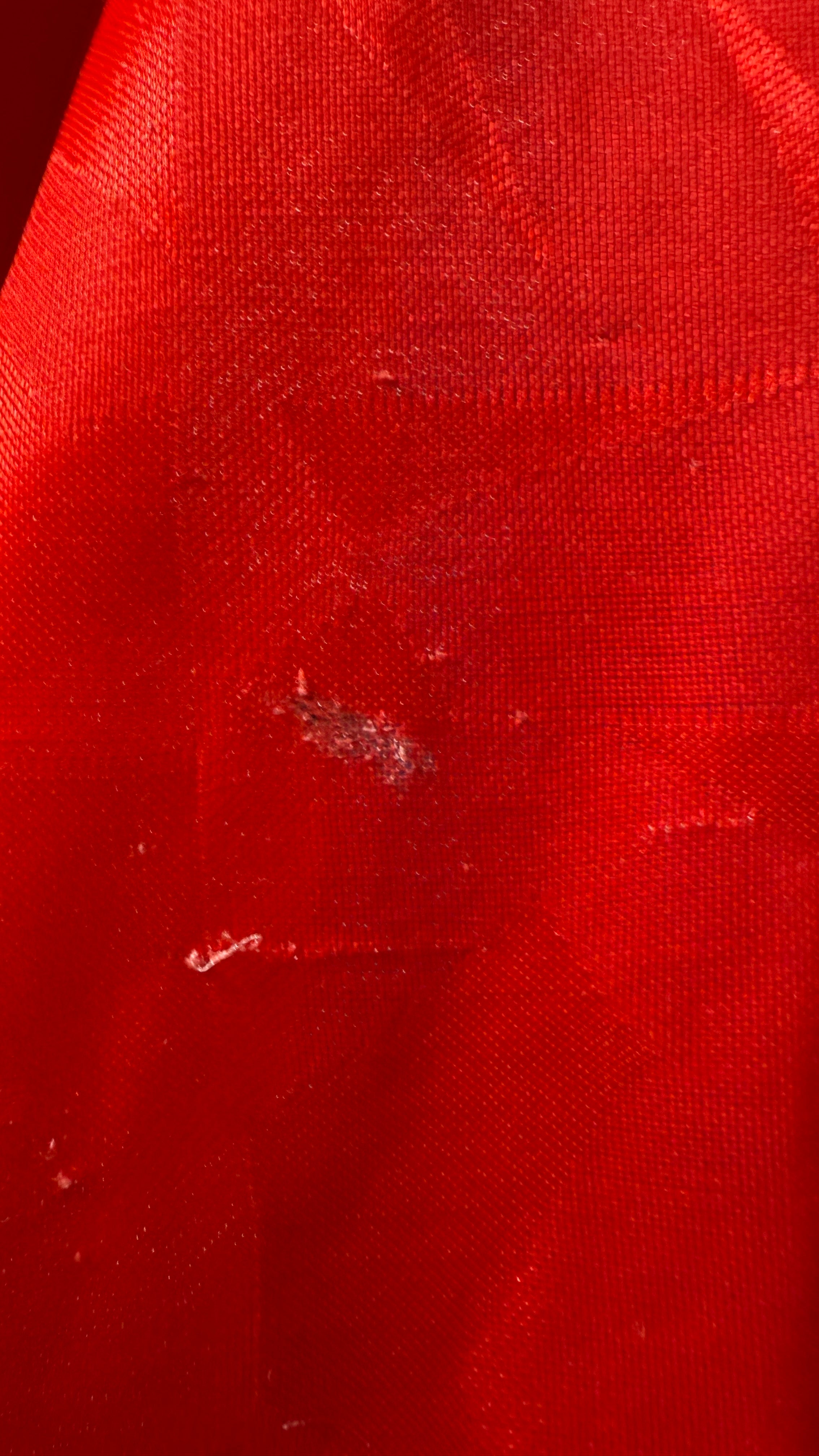 Gebraucht – in "ok" Zustand. Es gibt mehrere lose Fäden und Gebrauchsspuren, siehe Bilder. Keine groben Schäden, aber klar getragen.