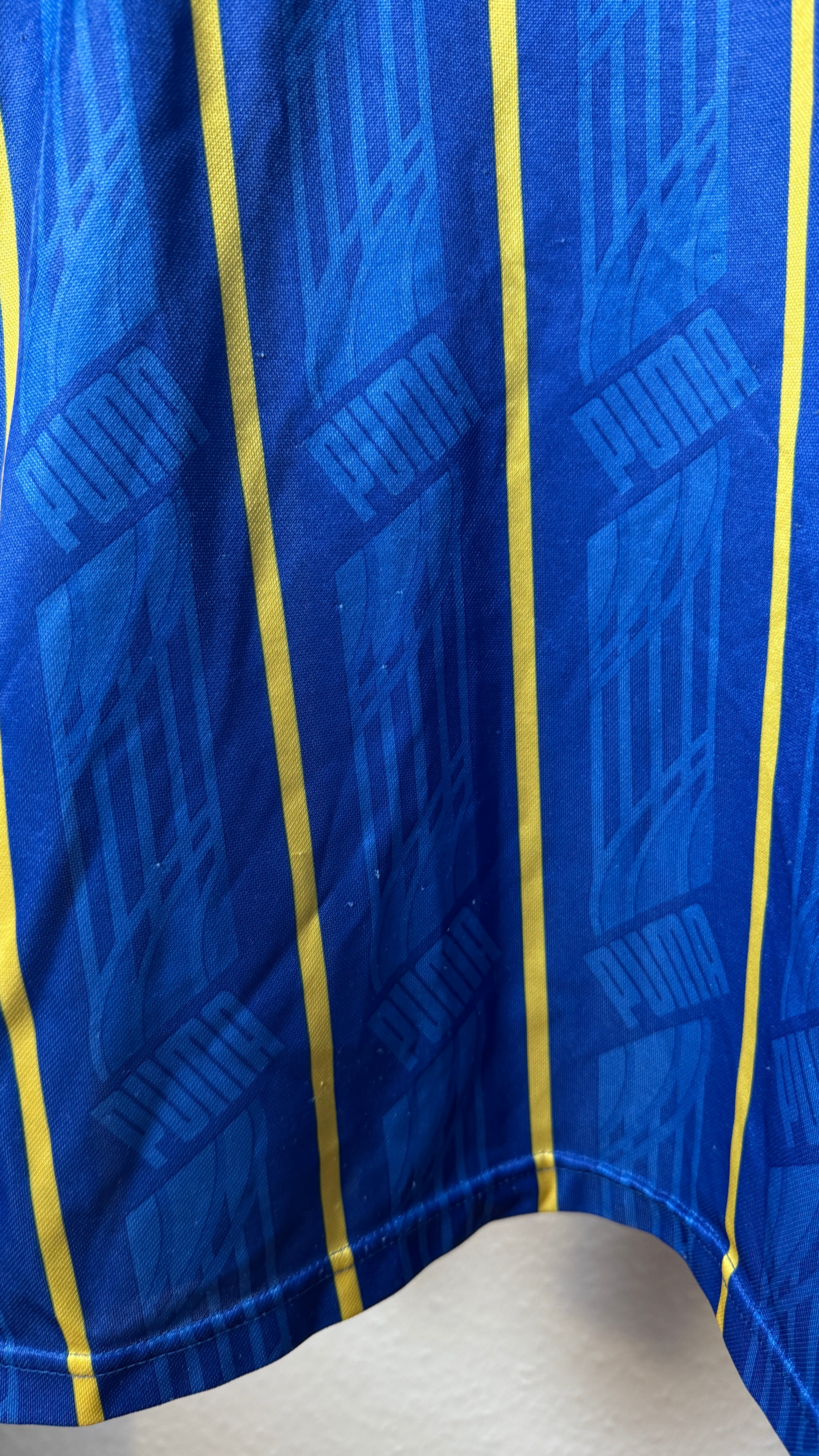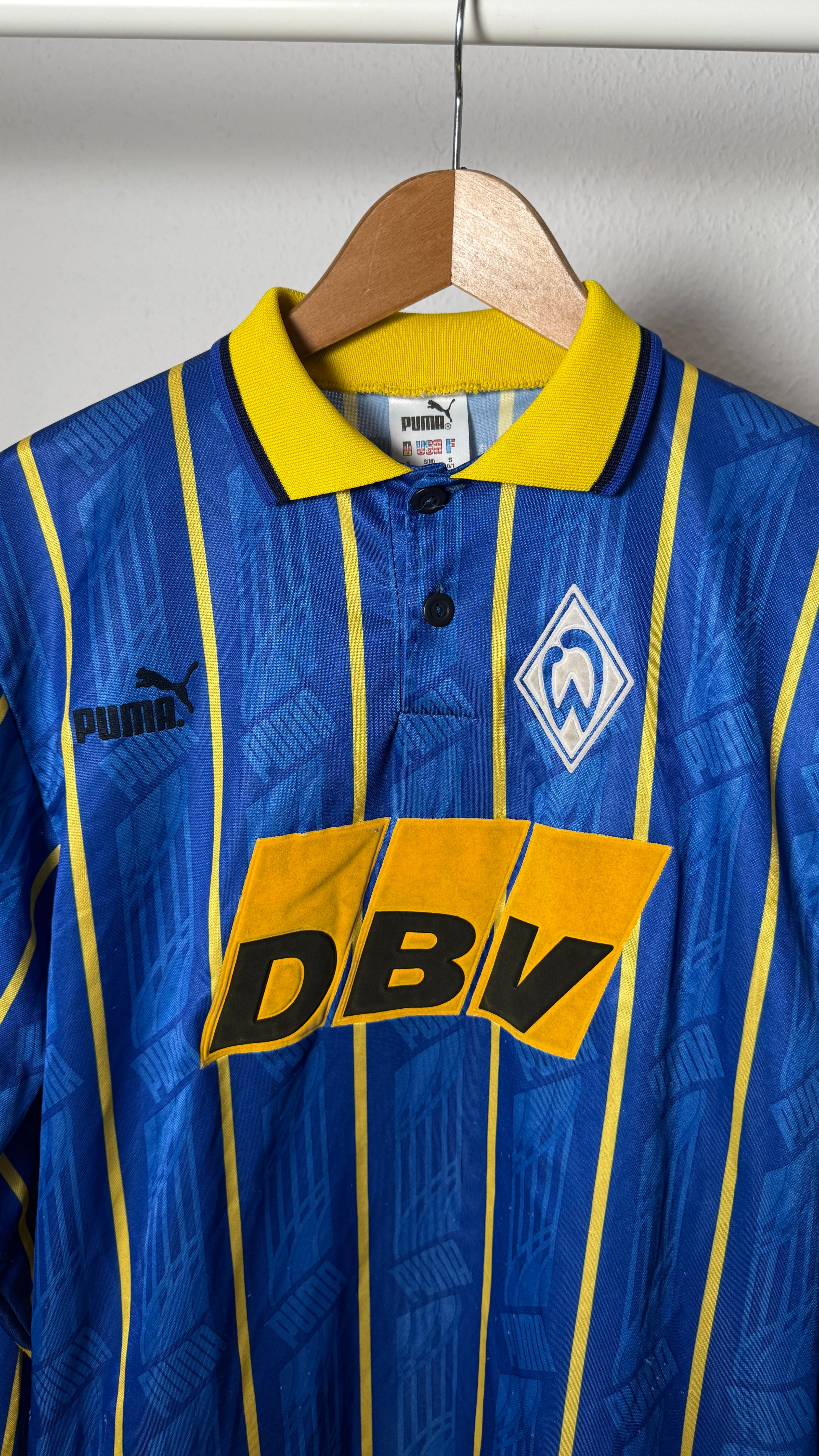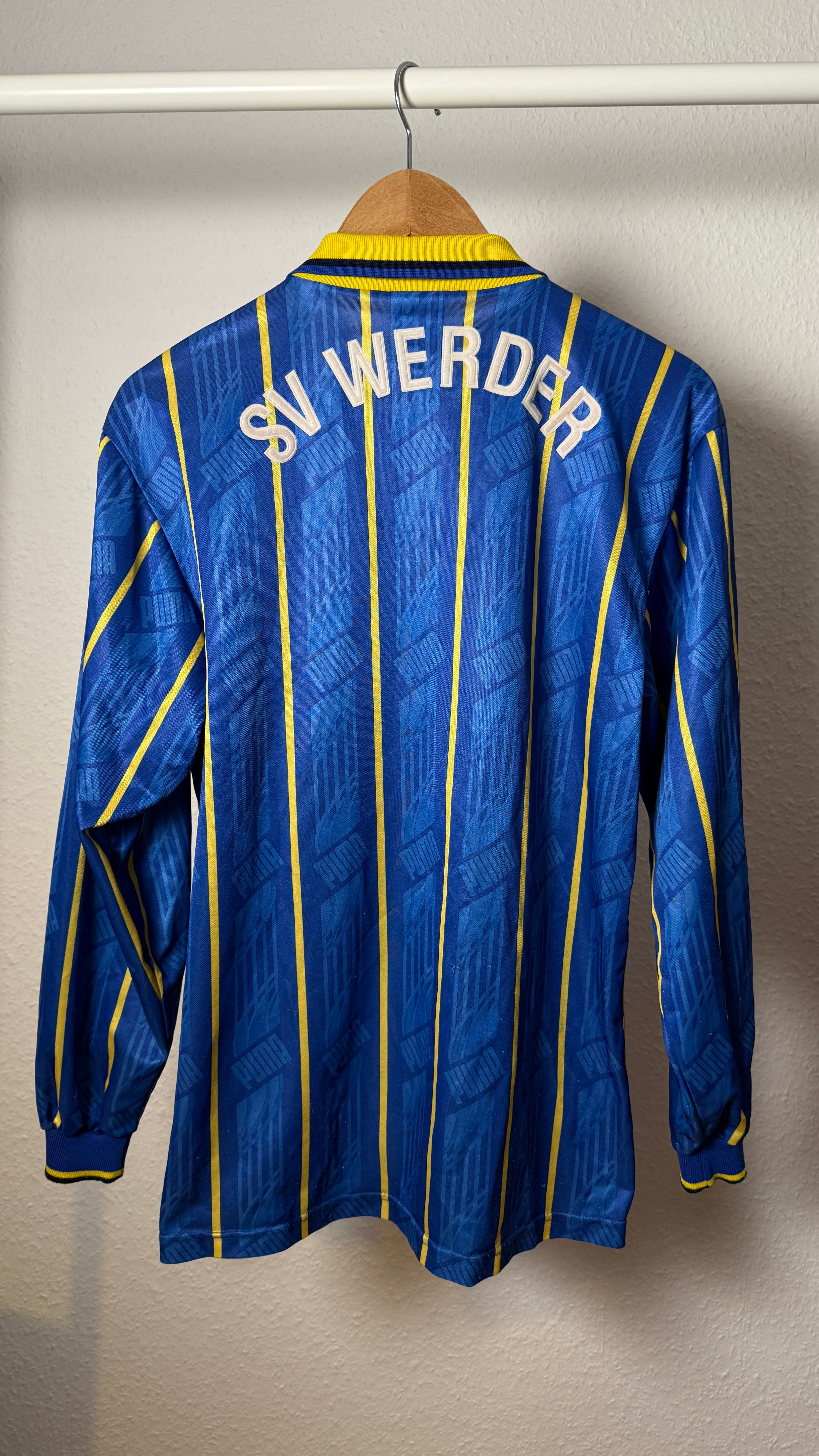 Klassisches Puma-90s-Design, authentischer Europapokal-Look und heute ein begehrtes Sammlerstück für Werder- und Vintage-Fans.