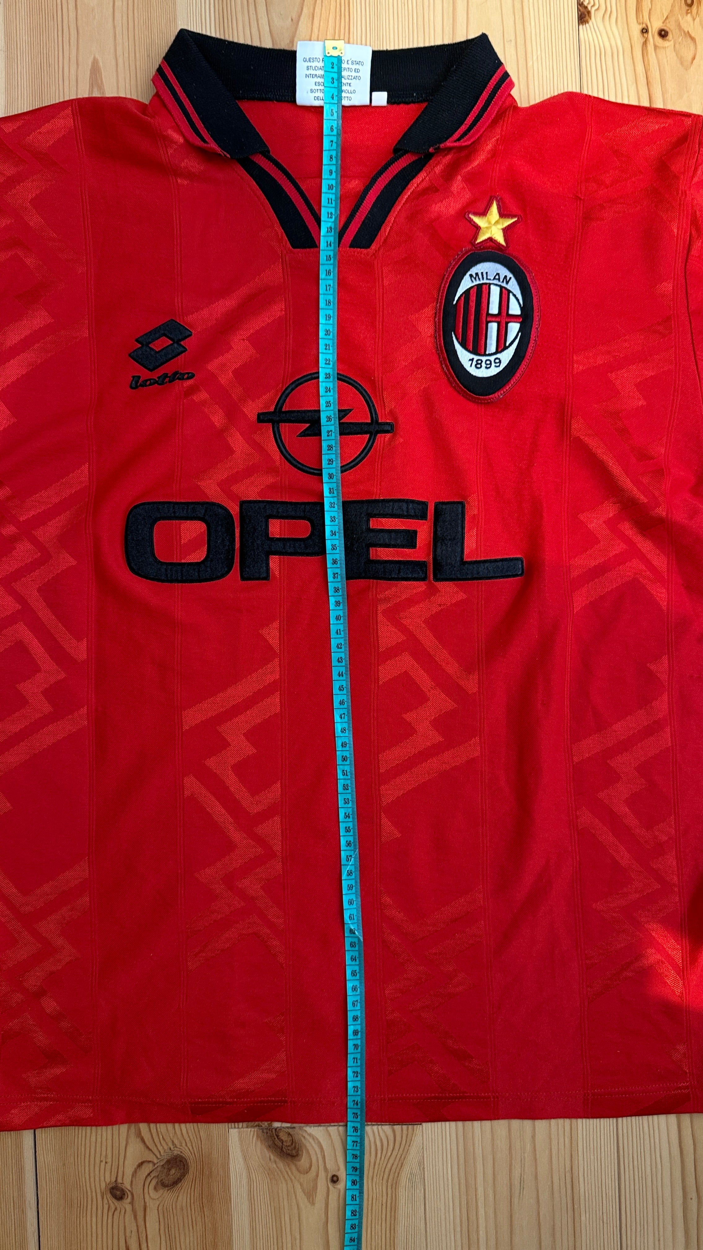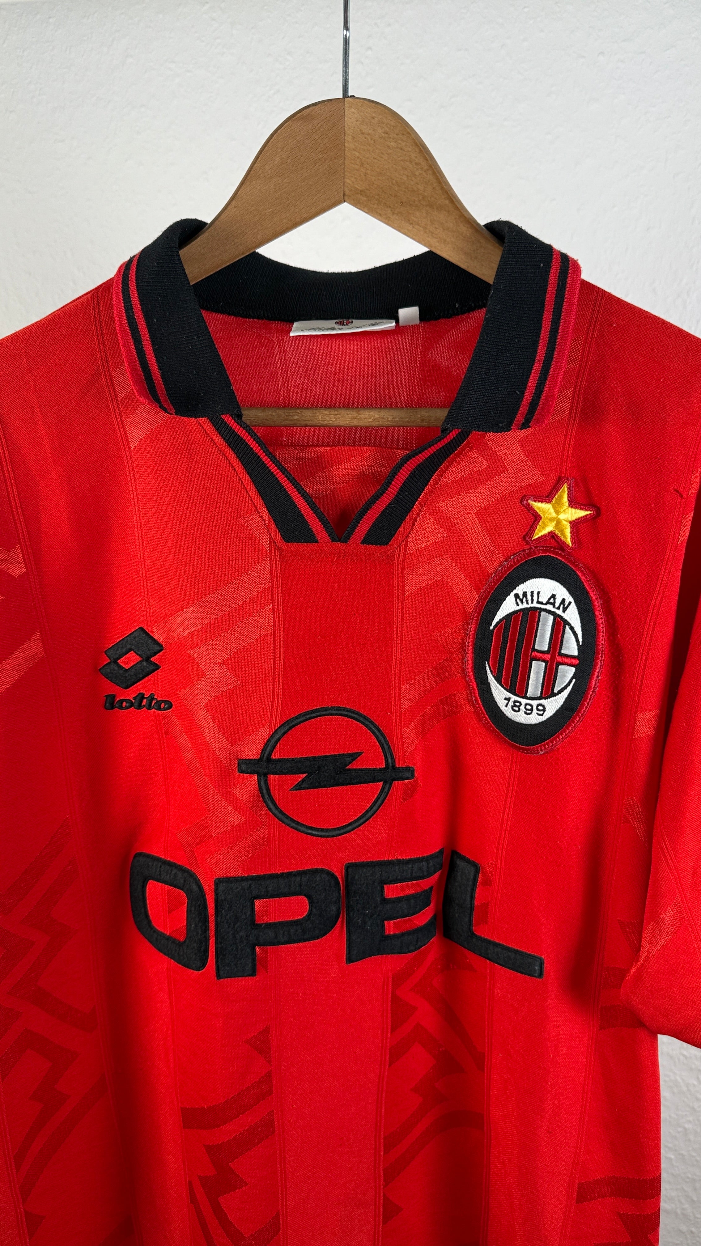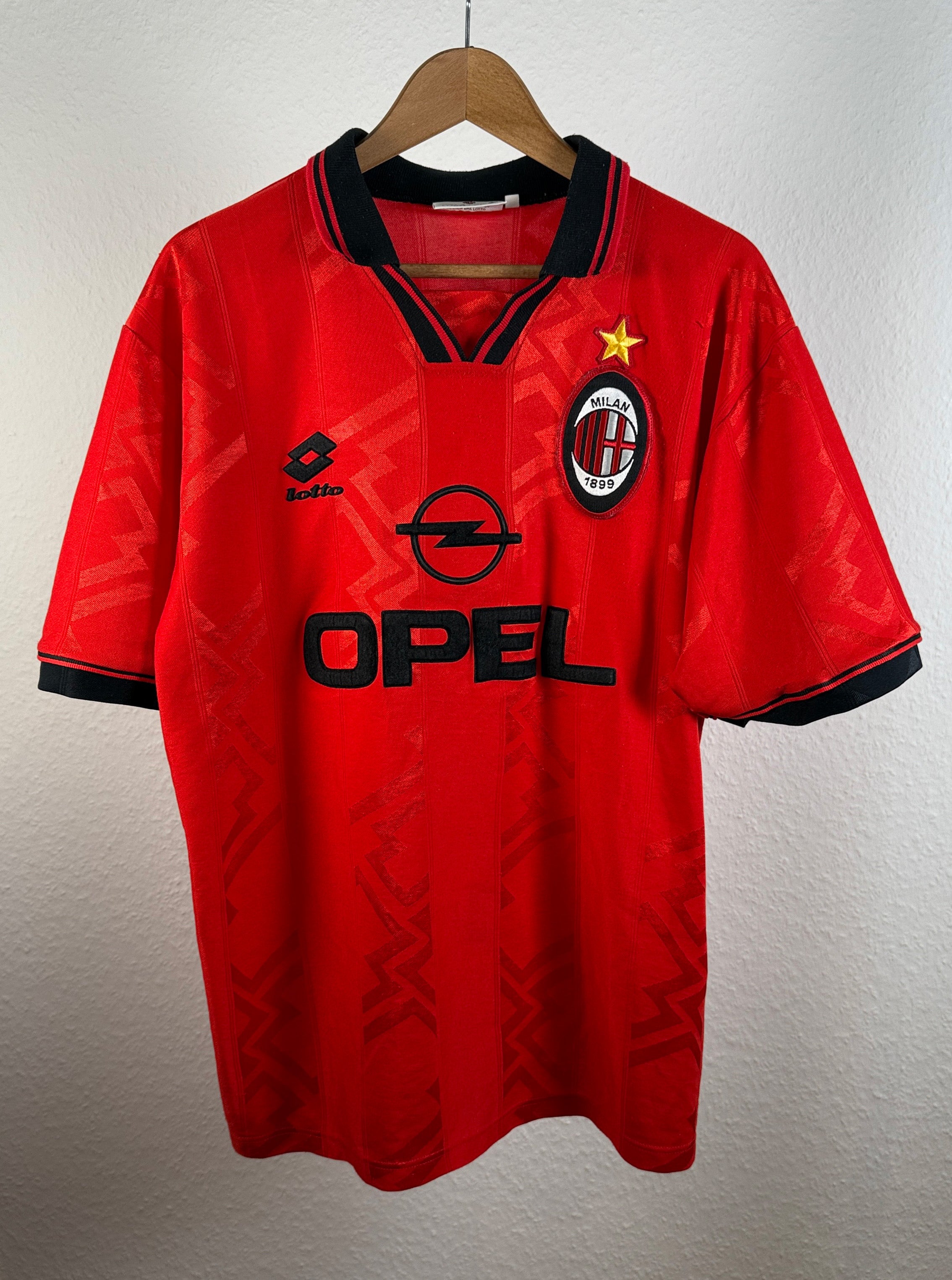 BESONDERHEITEN – Seltenes drittes Trikot der Rossoneri aus der Saison 1996/97. Klassisches Lotto-Design mit Opel-Sponsor, äußerst selten zu finden – ein Highlight für AC-Milan-Sammler.