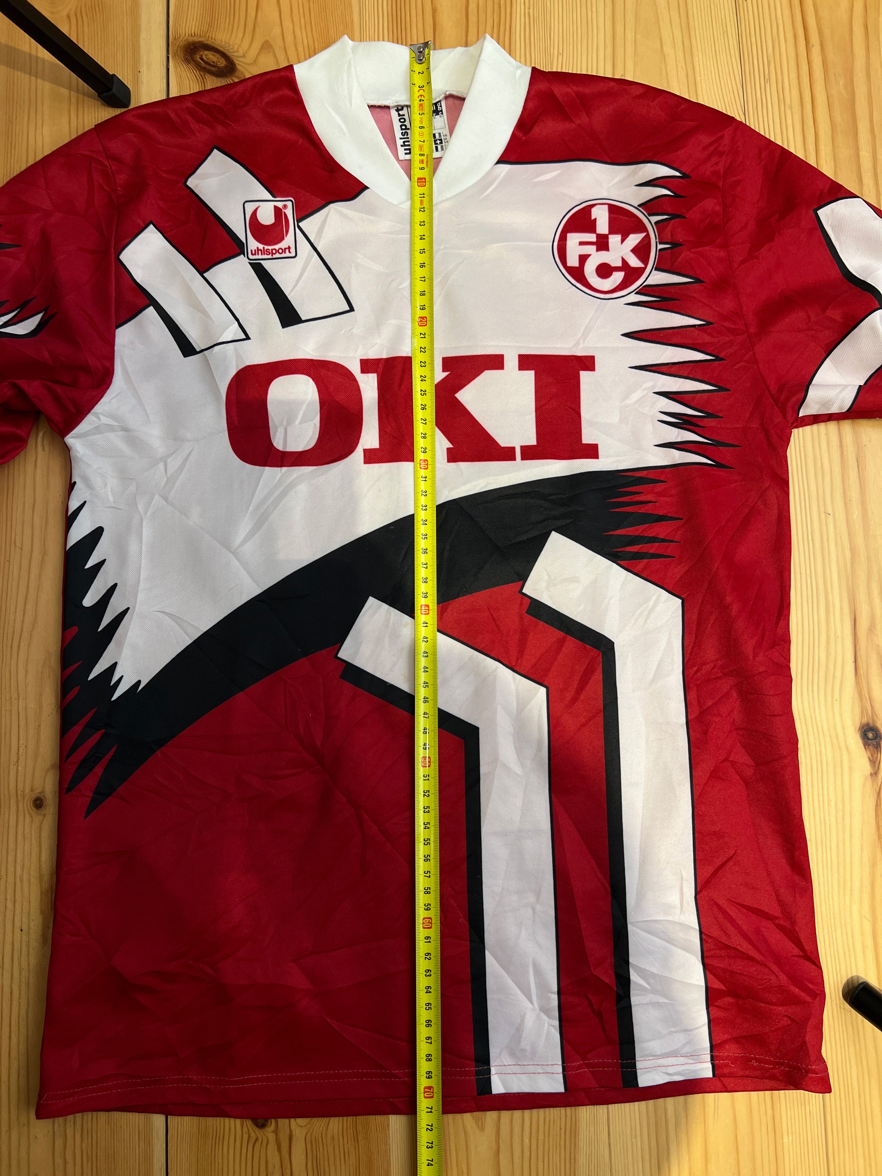 Besonderheiten: Original Langarm Heimtrikot von 1. FC Kaiserslautern aus der Saison 1992/93 mit dem Flock #11 und dem OKI Sponsor. Das Trikot fällt ein wenig kleiner aus als gewöhnlich und eignet sich perfekt für Kaiserslautern-Fans und Sammler.