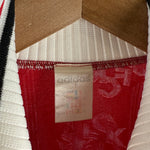Weiß-bordeauxfarbenes Layout, gesticktes Vereinswappen und strukturierte Streifen machen dieses Vintage-Trikot zu einem echten Sammlerstück.