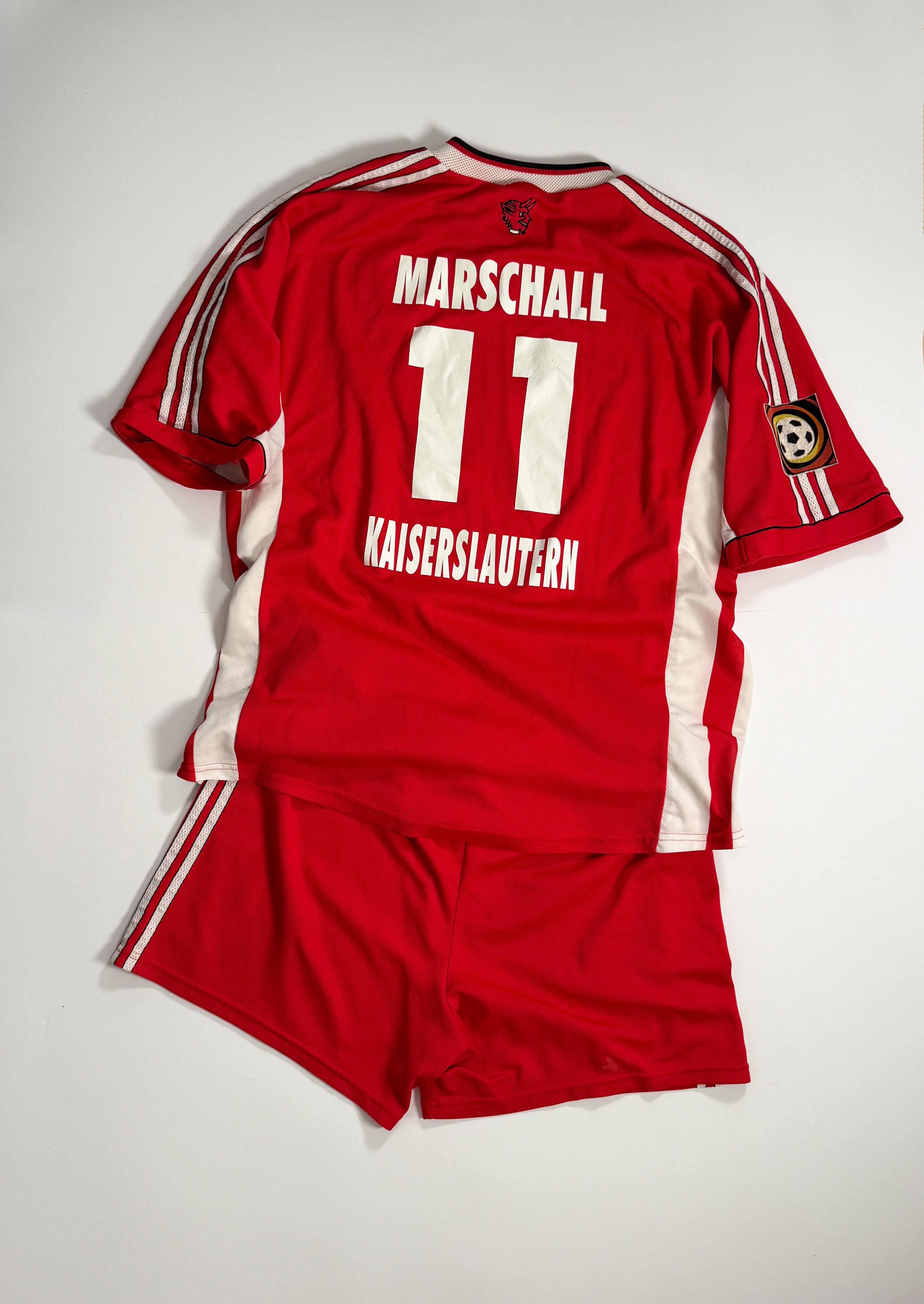 BESONDERHEIT – Komplettes Set bestehend aus Heimtrikot und passenden Adidas-Shorts. Mit Originalflock von Marschall, Bundesliga-Patch und dem Sponsor Deutsche Vermögensberatung. Ein echtes Sammlerstück aus der erfolgreichen Ära der Roten Teufel.