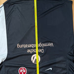Weißes Nike-Design mit schwarzem Kragen und auffälligem DVAG-Sponsor.