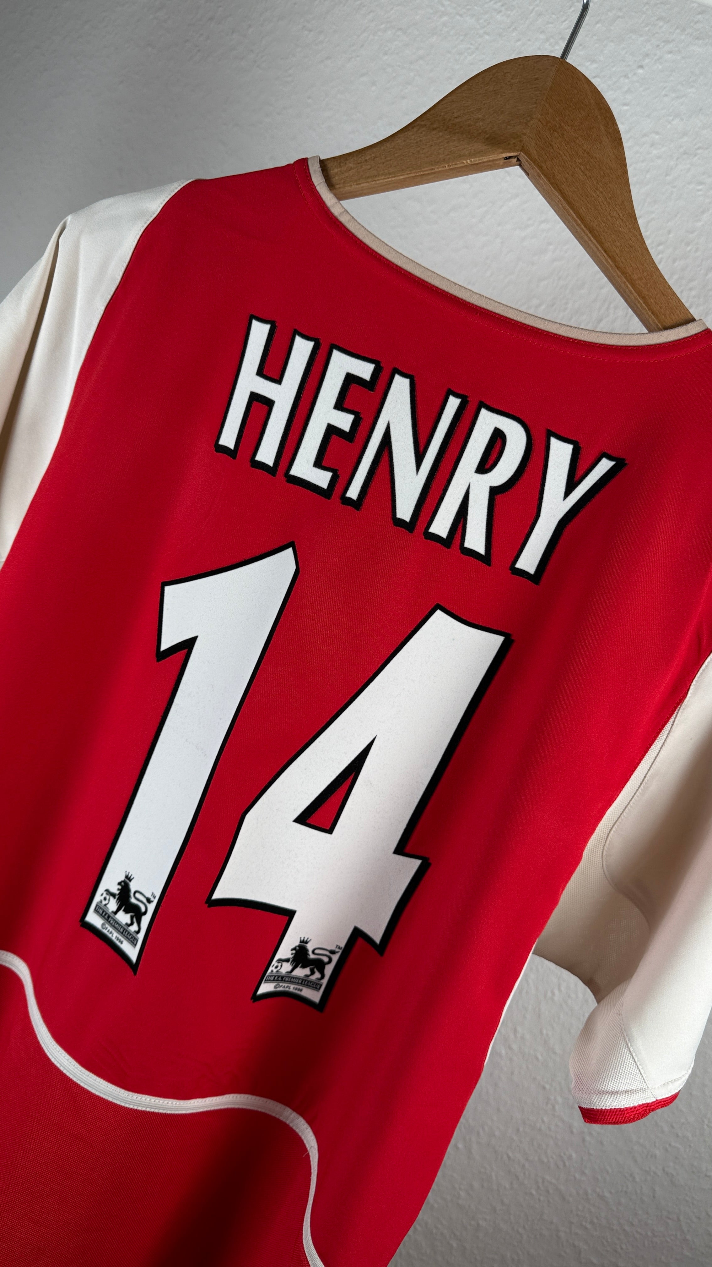 BESONDERHEITEN – Heimtrikot der „Invincibles“-Ära mit originaler Beflockung von Thierry Henry #14. Klassiker der frühen 2000er, sehr begehrtes Sammlerstück.