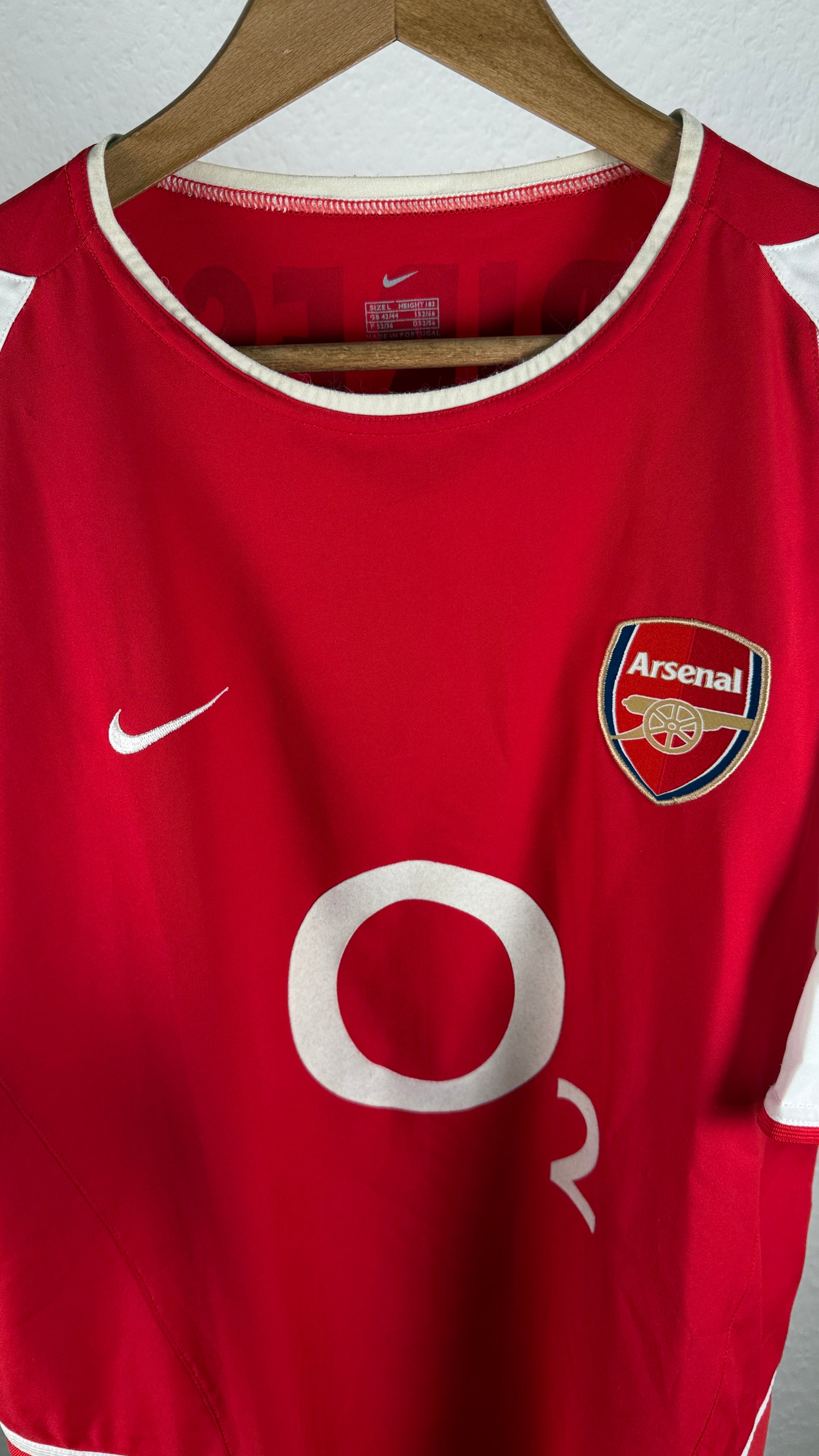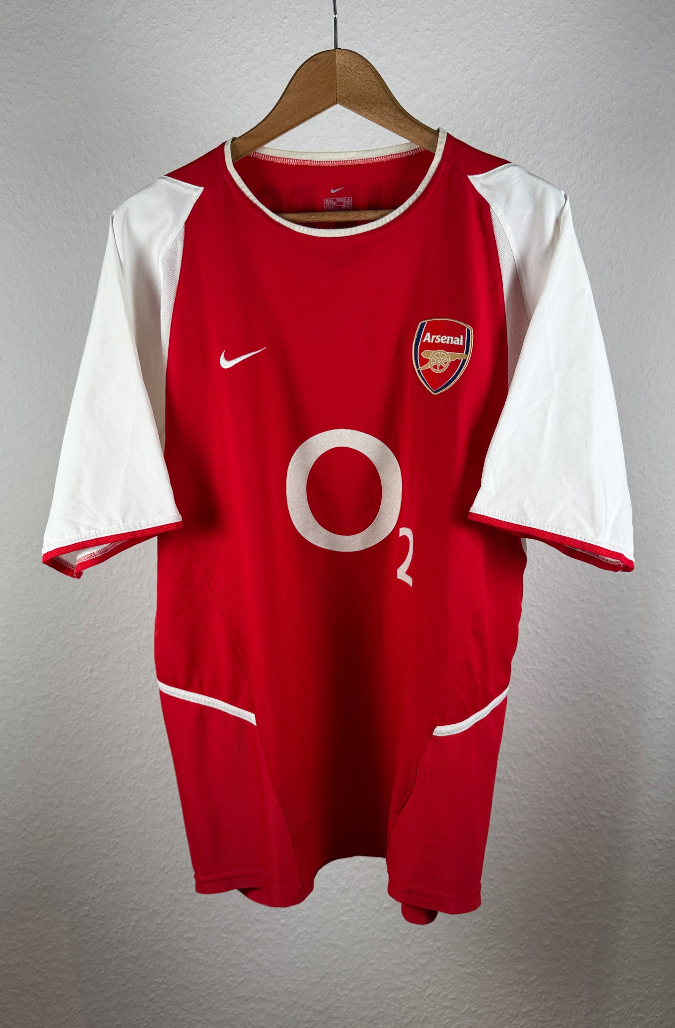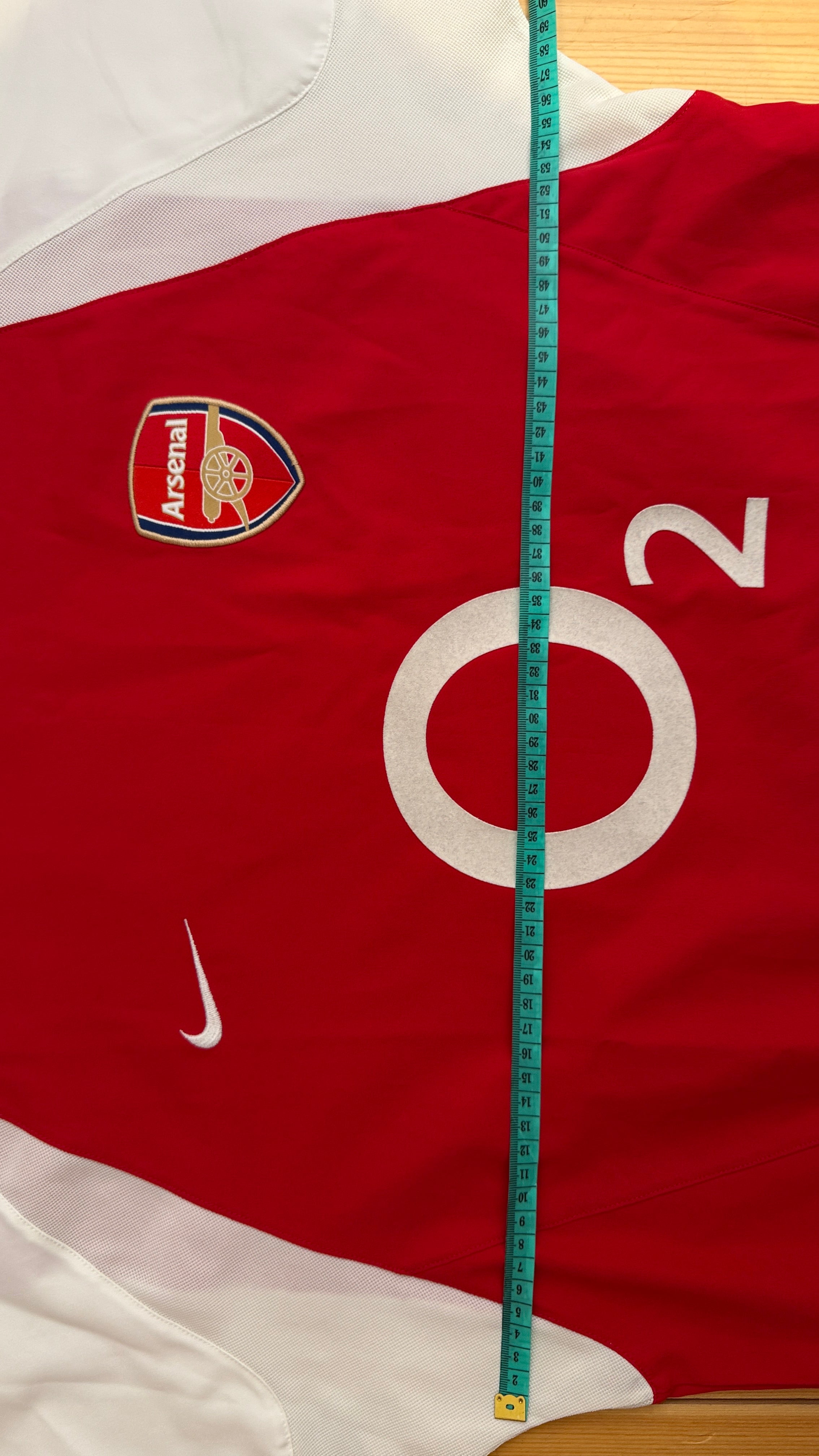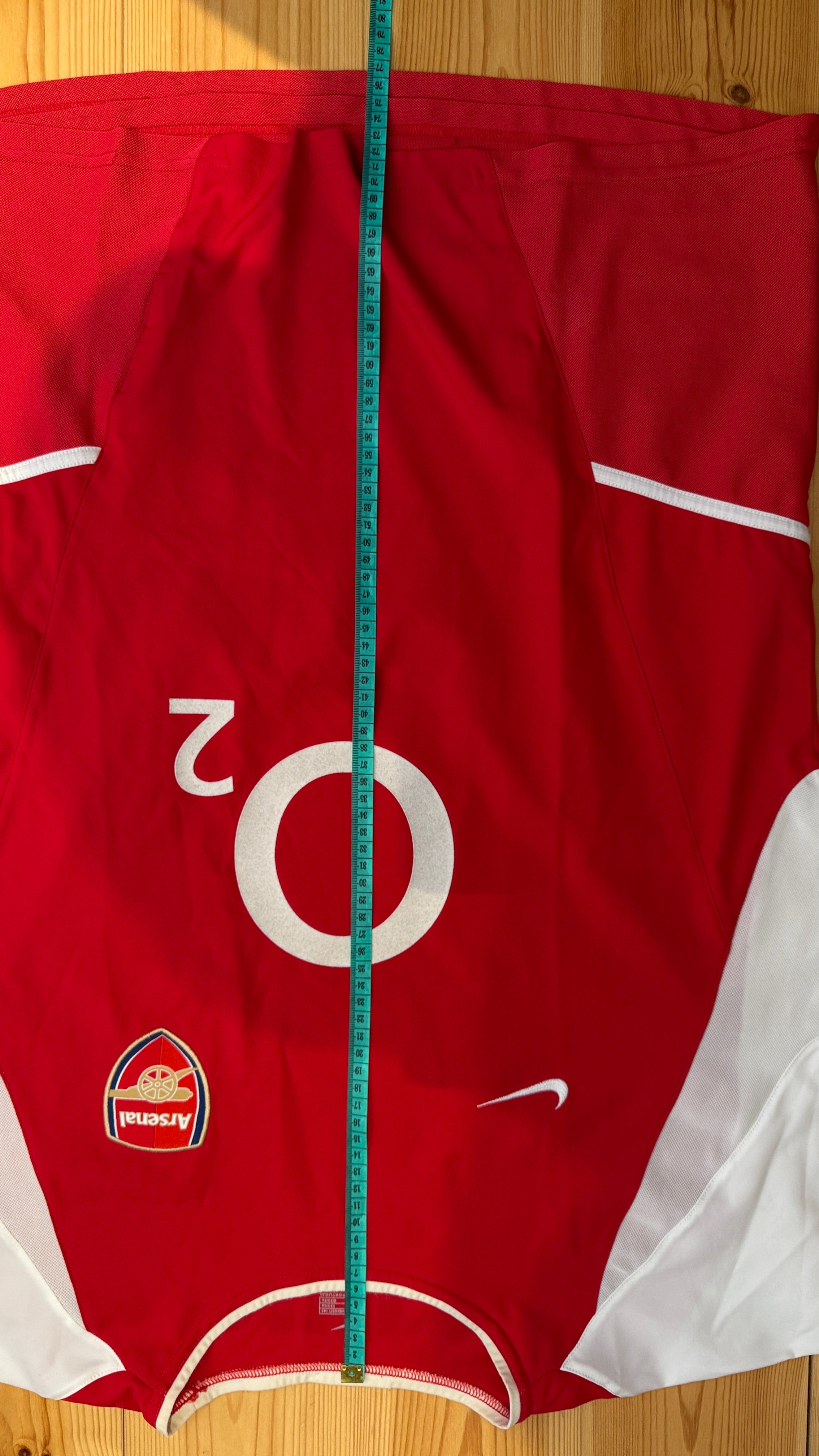 Original Arsenal-Heimtrikot aus der legendären „Invincibles“-Ära mit Beflockung von Thierry Henry (#14). Inklusive Champions League Patches – ein seltener Klassiker der frühen 2000er und extrem begehrtes Sammlerstück für Arsenal- und Henry-Fans.