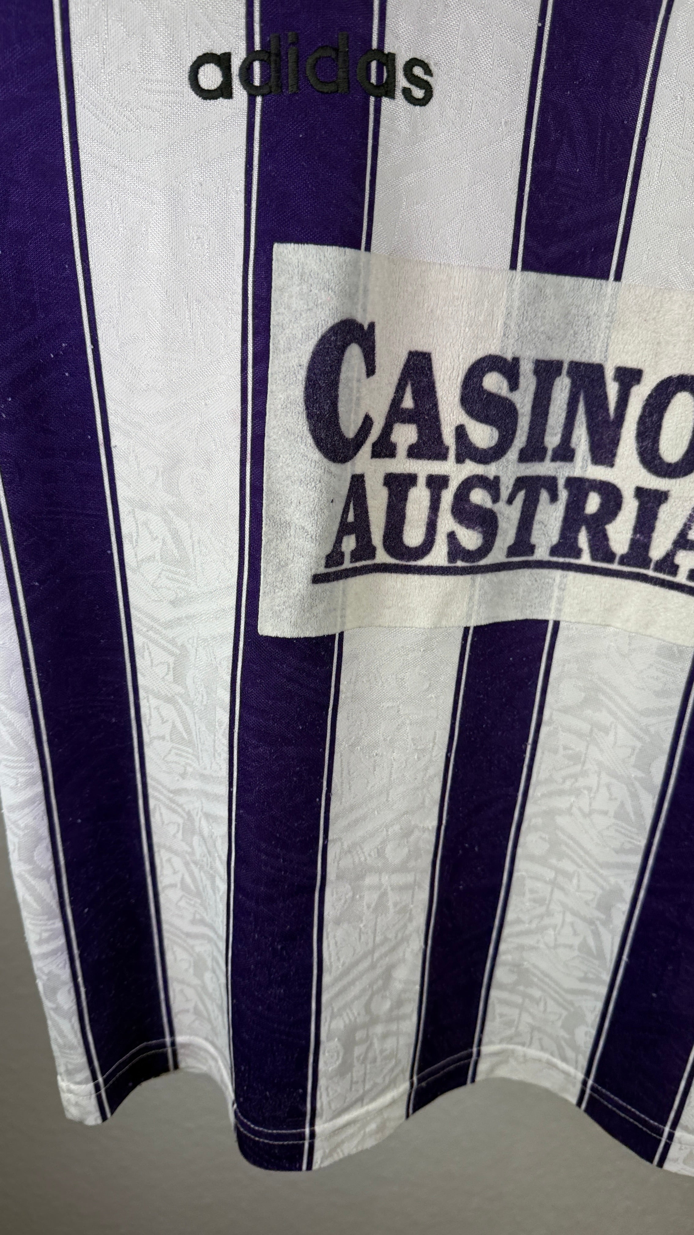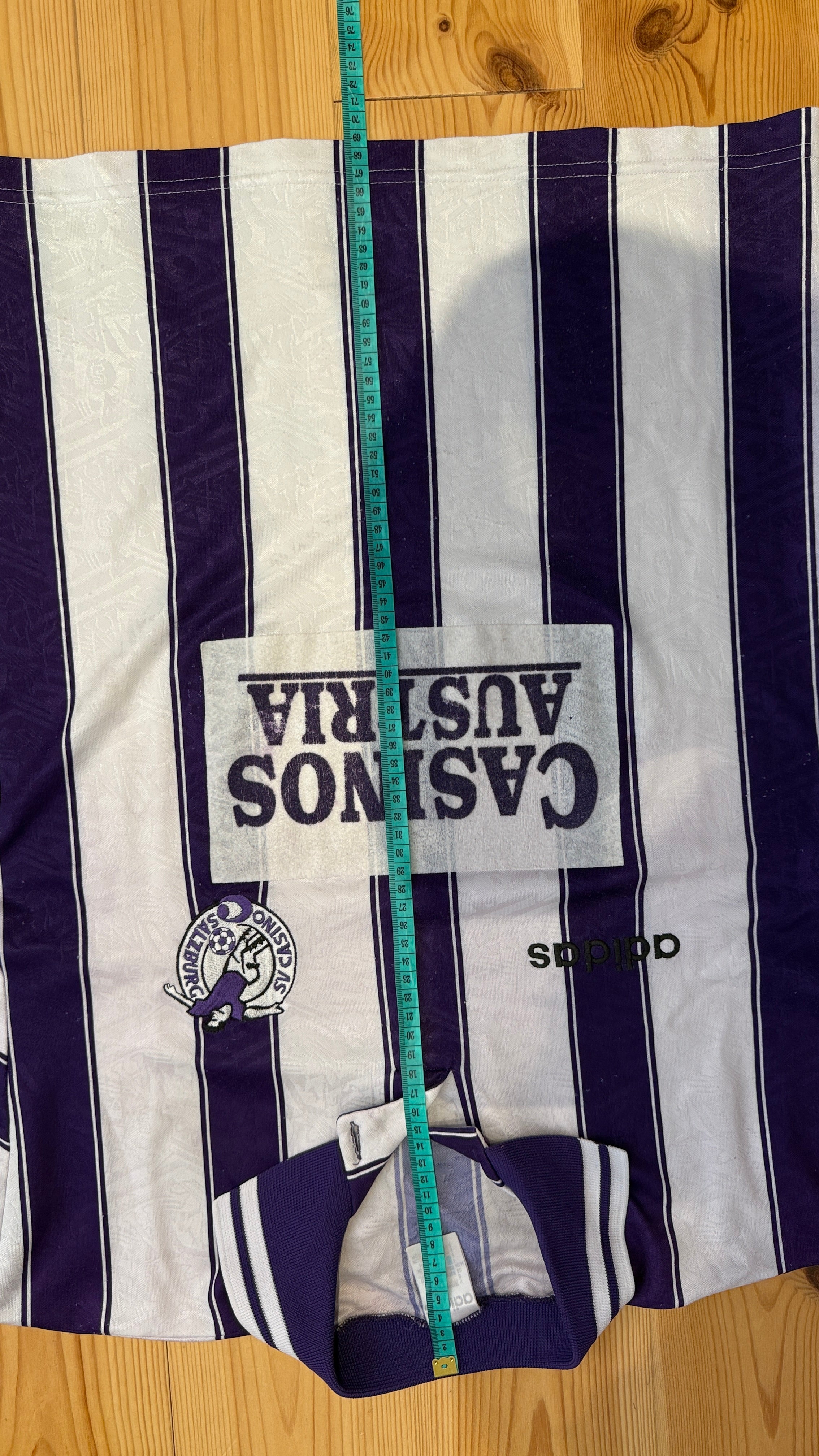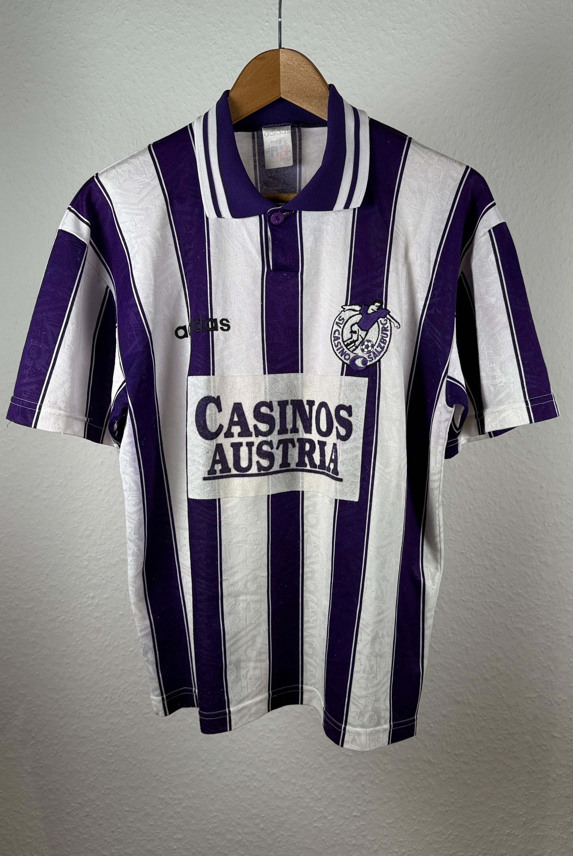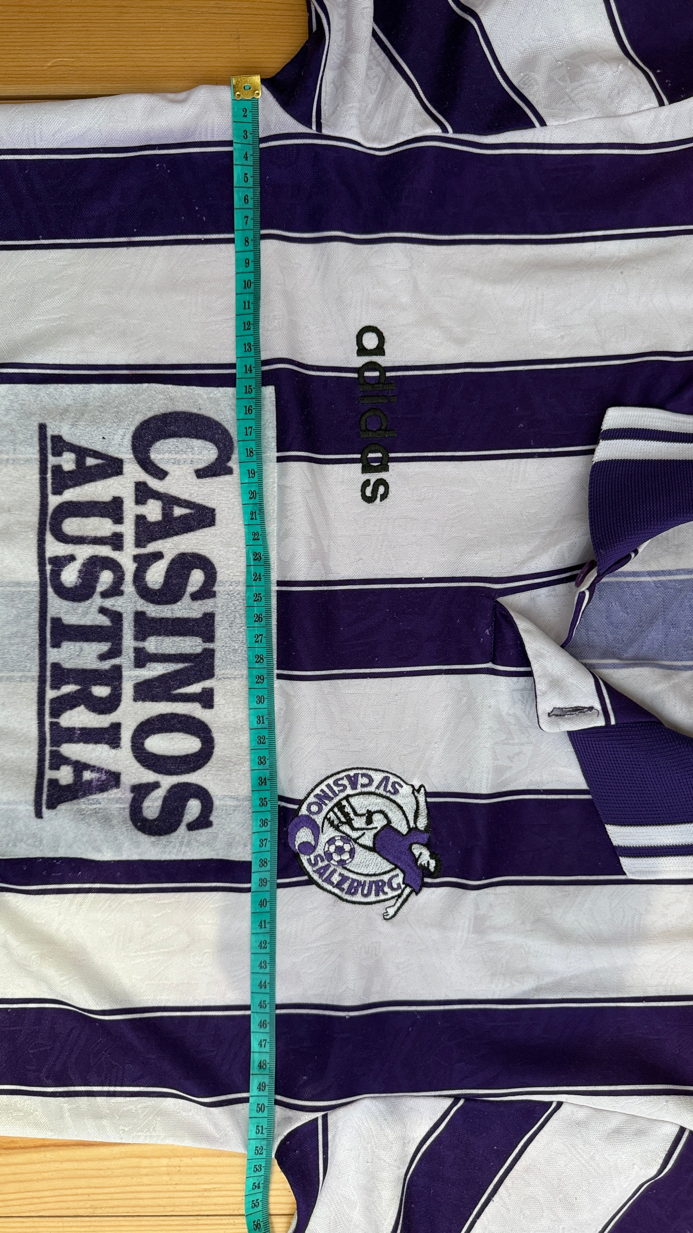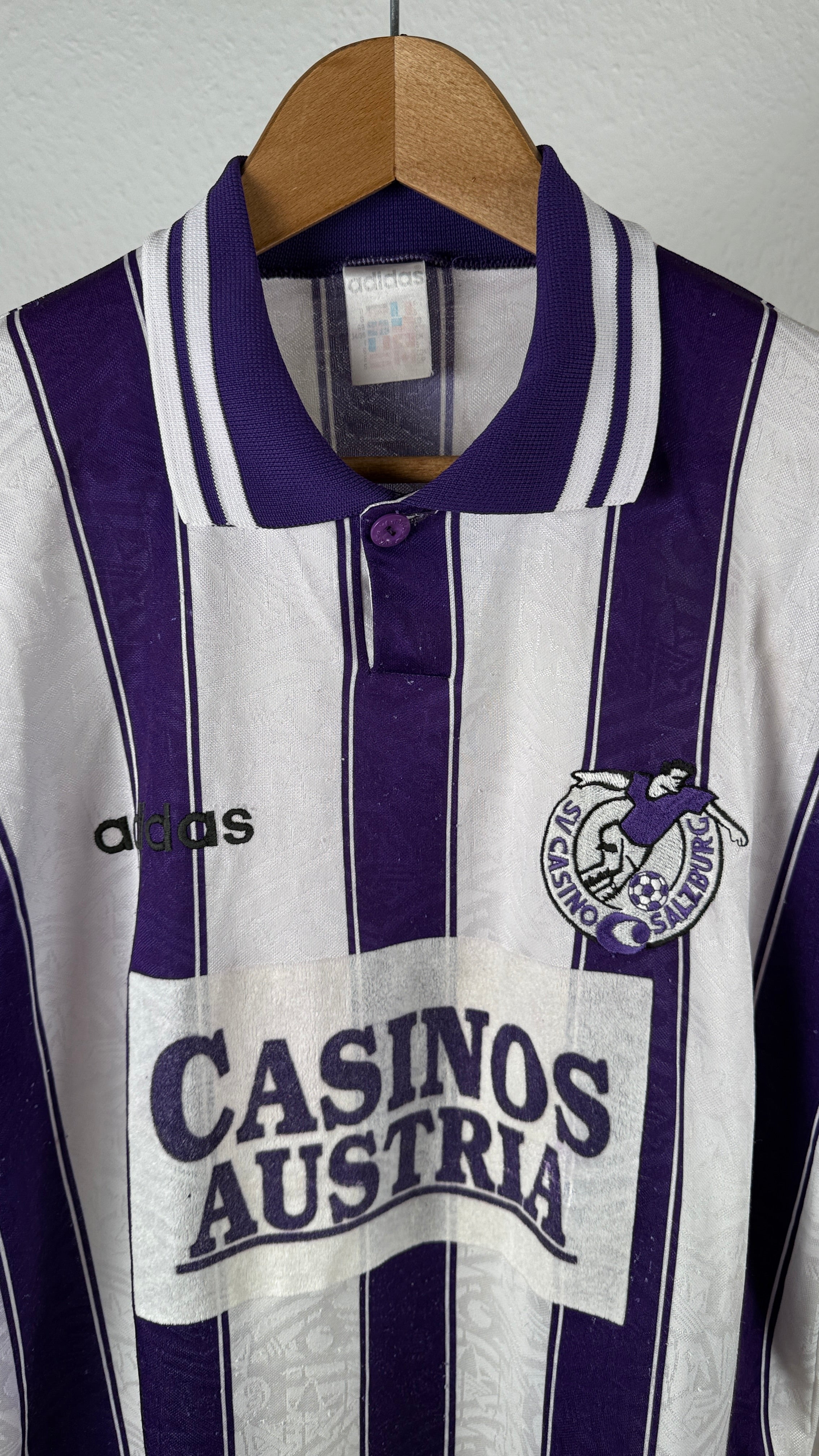 BESONDERHEITEN – Seltenes Europa-Heimtrikot von SV Casino Salzburg aus der Saison 1995/96. Adidas-Design mit Casino-Sponsor, getragen in internationalen Wettbewerben – absolutes Highlight aus der Pre-Red-Bull-Ära und sehr begehrtes Sammlerstück.