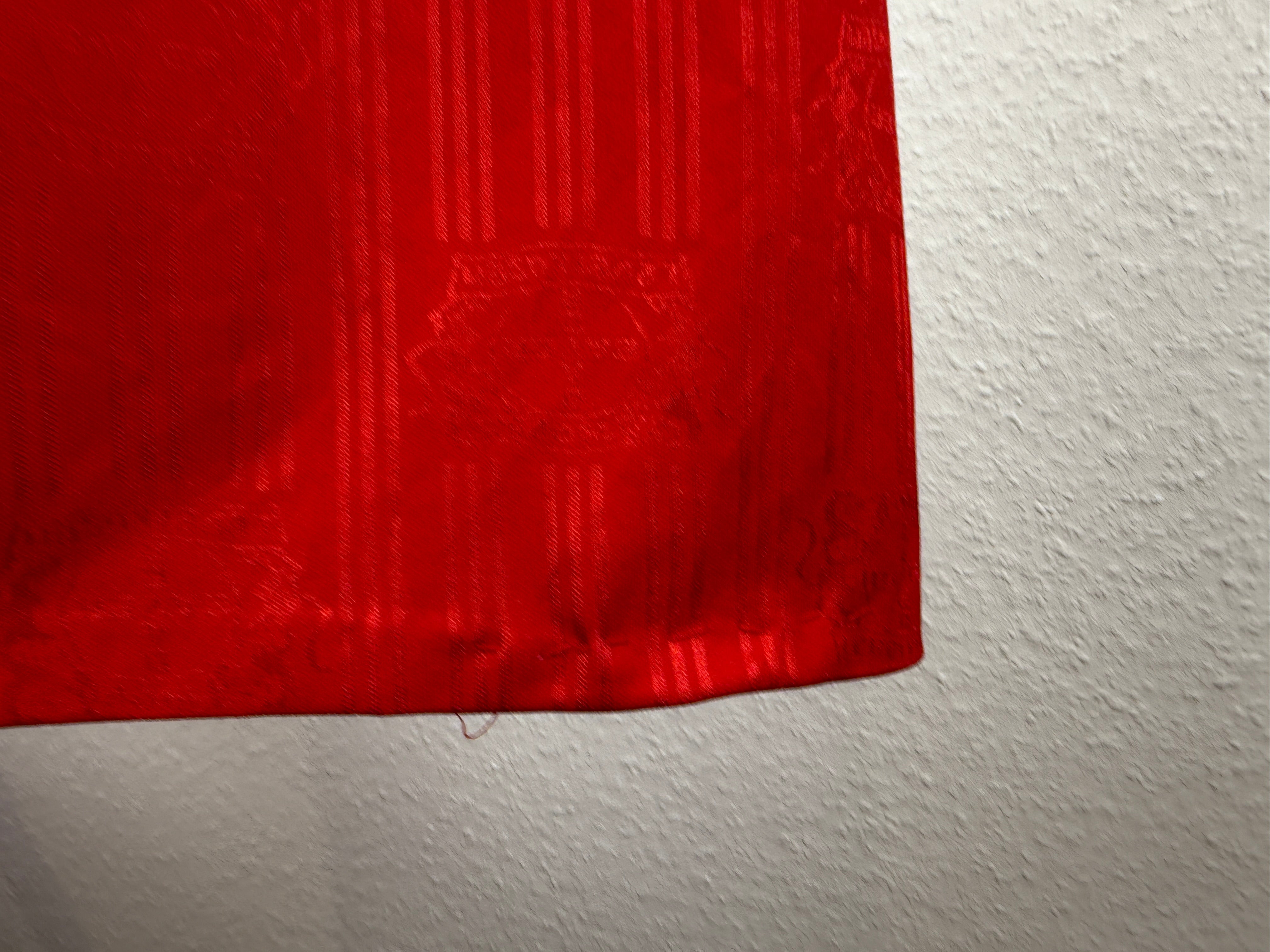 Zustand: Gut – Das Trikot befindet sich in gutem Zustand, es gibt leichte Gebrauchsspuren. Der untere Saum wurde an einigen Stellen neu genäht. Ansonsten ist das Trikot in gutem Zustand.