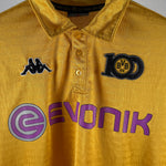 Offizielles Jubiläums-Heimtrikot von Borussia Dortmund aus der Saison 2009/10 zum Motto „100 Jahre Echte Liebe“. Klassisches Design in Gelb mit violettem Evonik-Logo und Kappa-Bündchen. Ein beliebtes Sammlerstück für BVB-Fans!