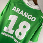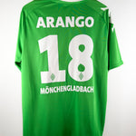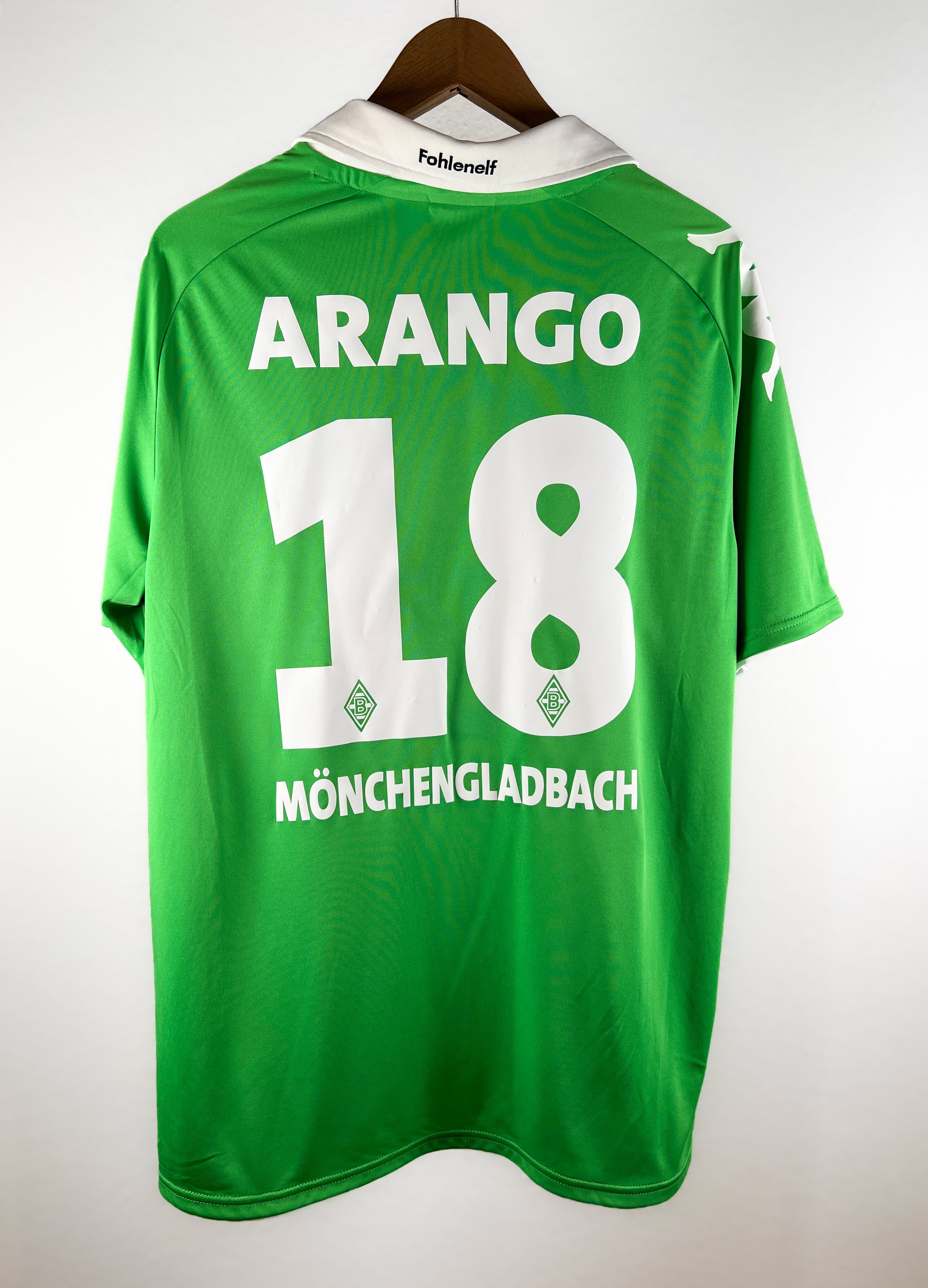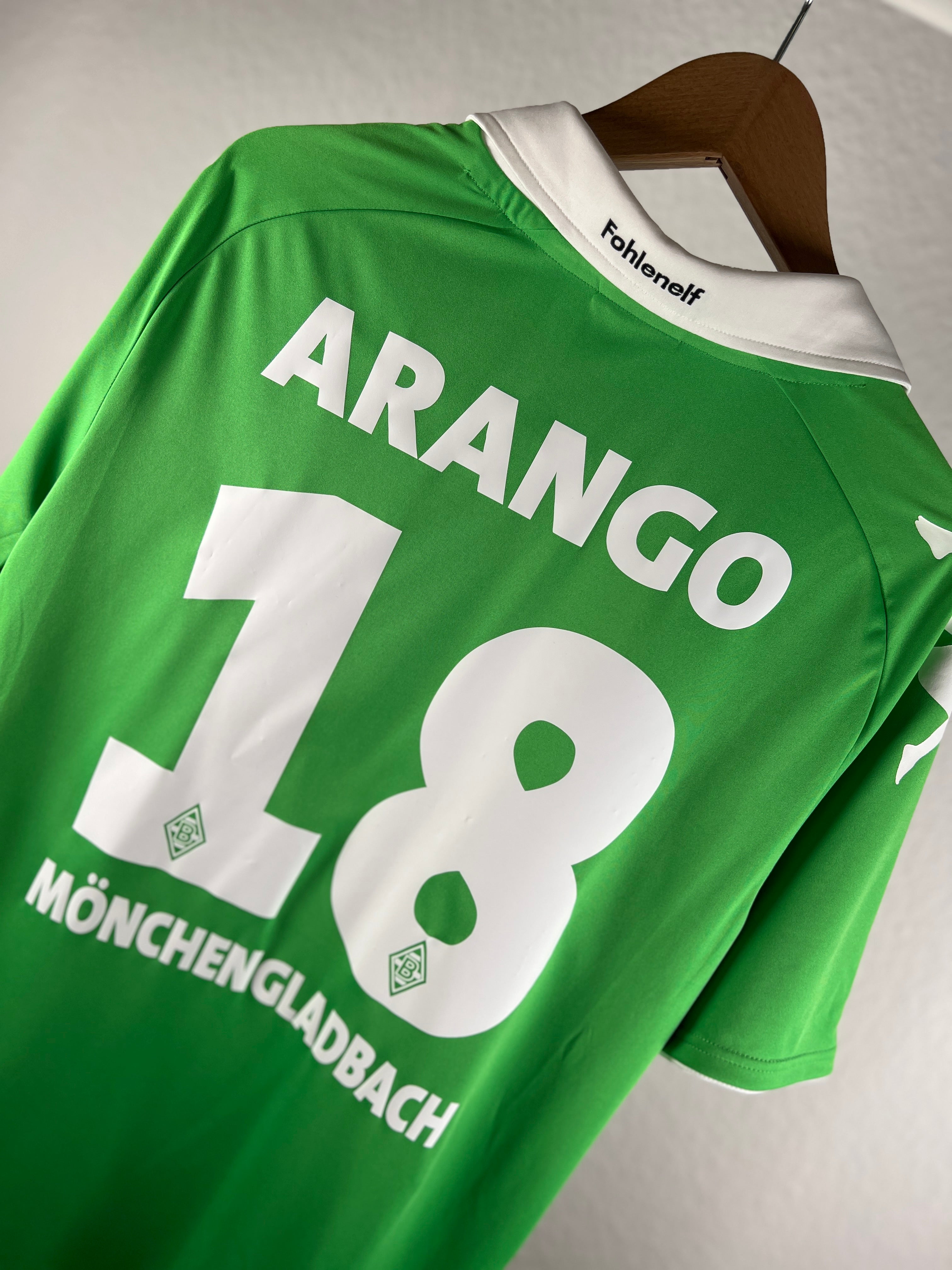 Klassisches Auswärtstrikot aus der Saison 2012/13–2013/14 mit kräftigem Grünton, weißem Kragen. Auf dem Rücken: Arango #18 – einer der prägendsten Spieler seiner Zeit bei der Fohlenelf.