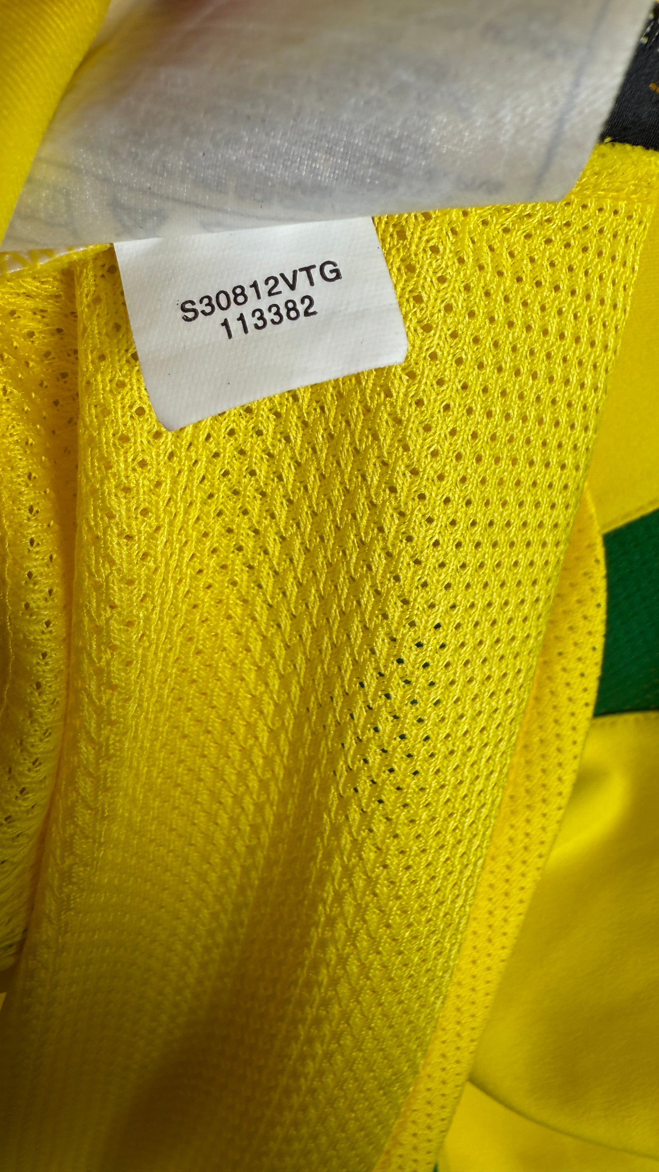BESONDERHEITEN – Legendäres Heimtrikot der brasilianischen Nationalmannschaft von der WM 2002 in Japan & Südkorea, mit originaler Beflockung von Ronaldo #9. In genau diesem Design führte Ronaldo Brasilien mit seinen Toren im Finale gegen Deutschland zum Weltmeistertitel. Ein absolutes Highlight für Sammler.