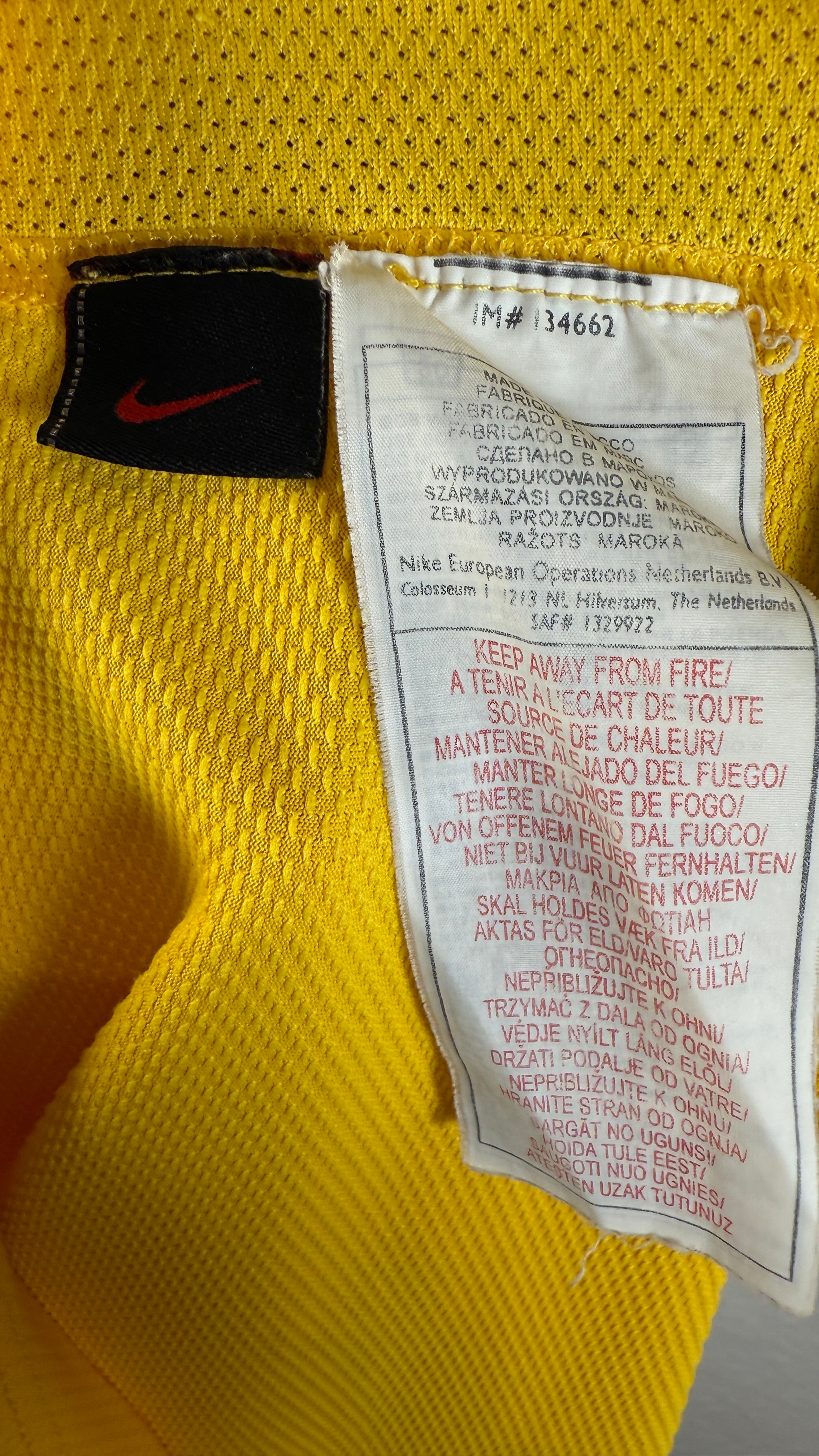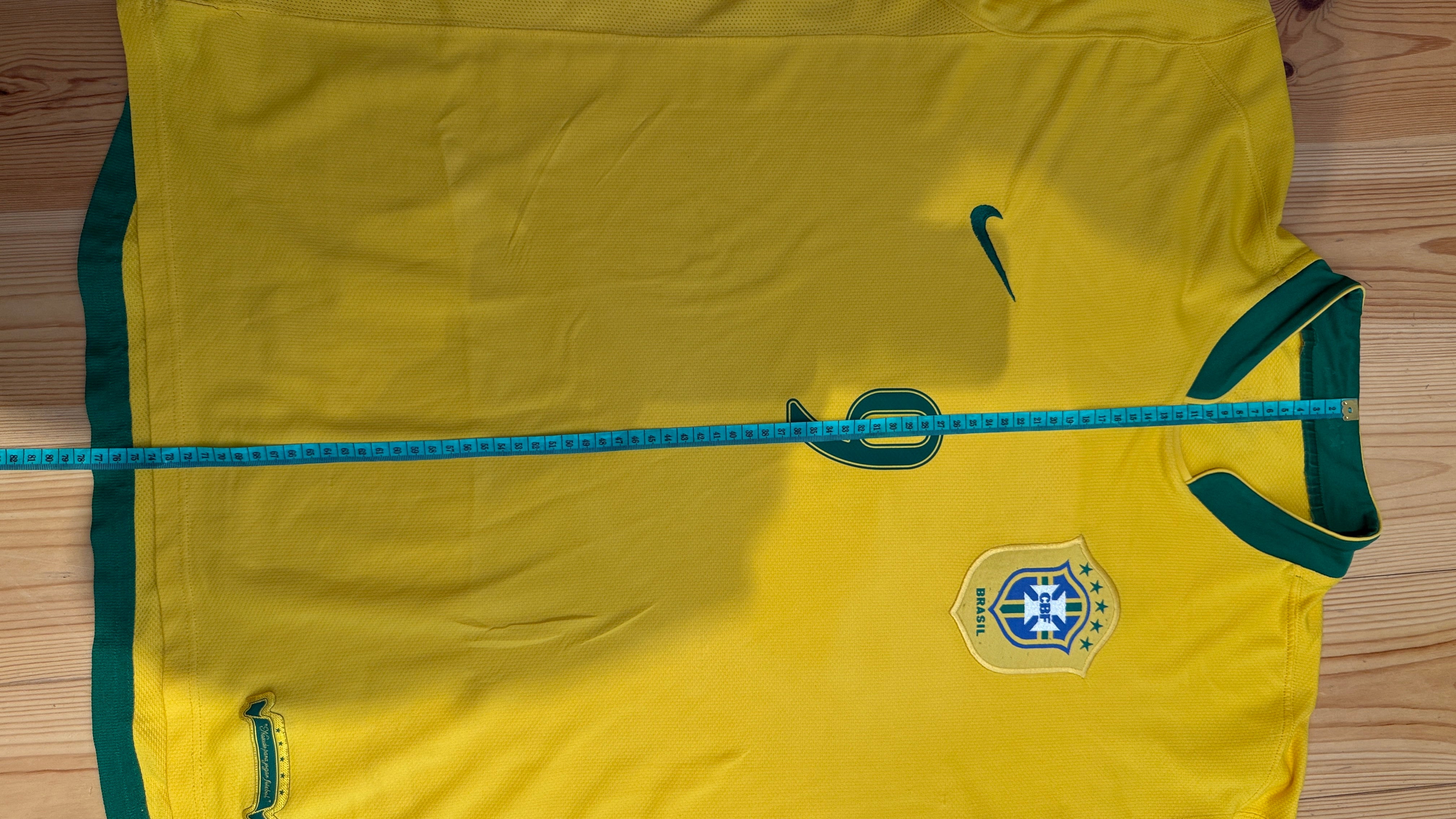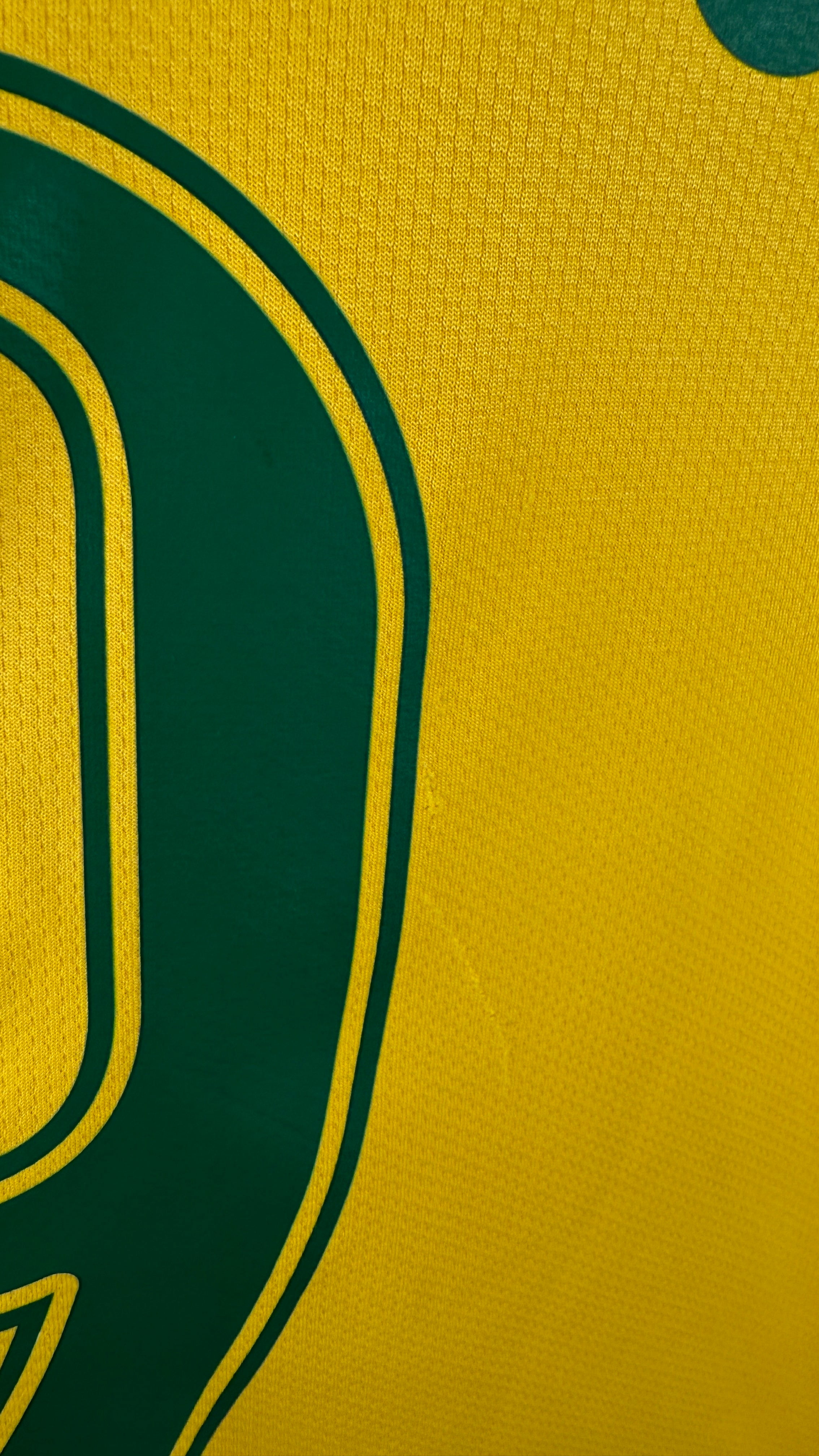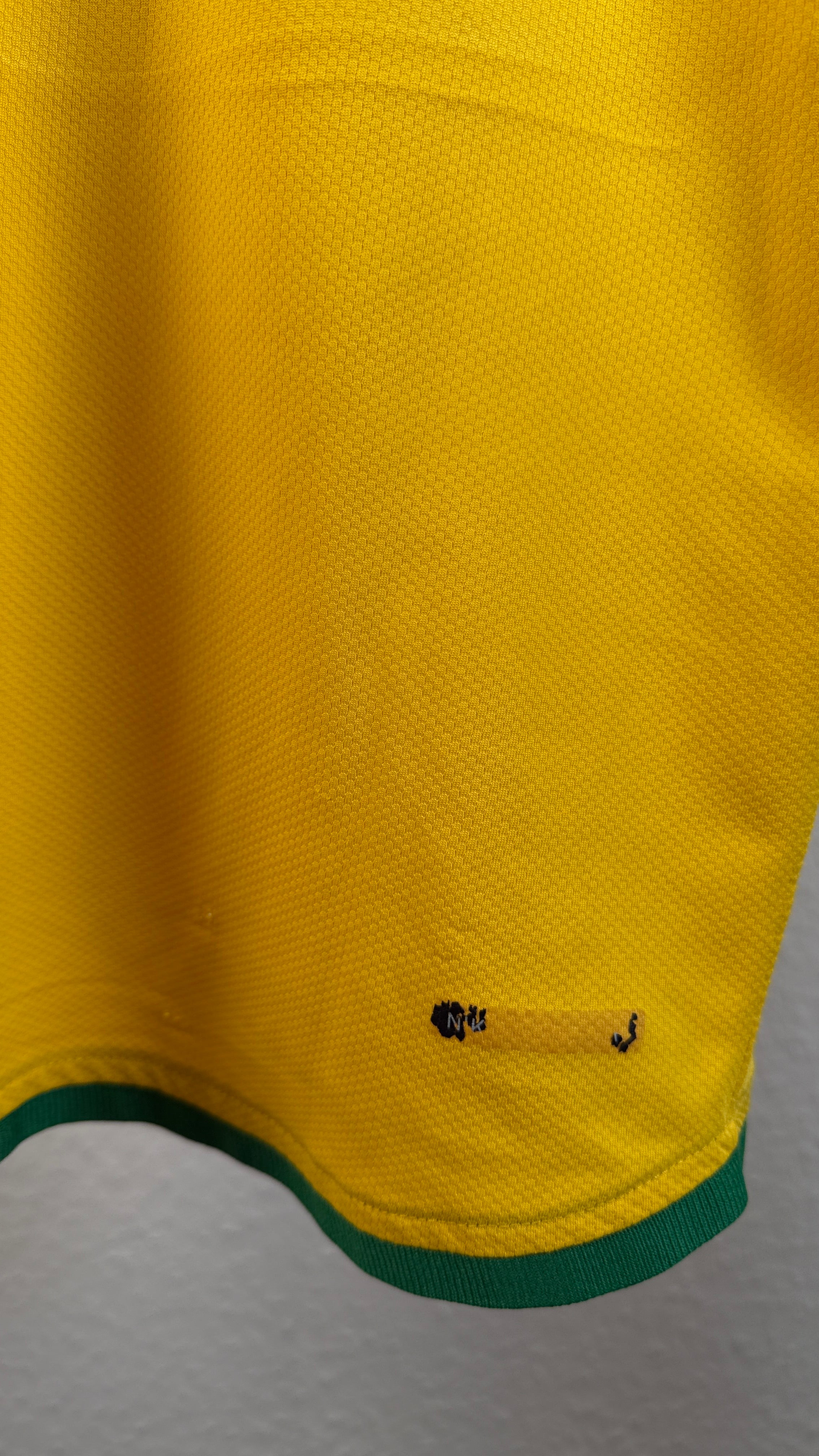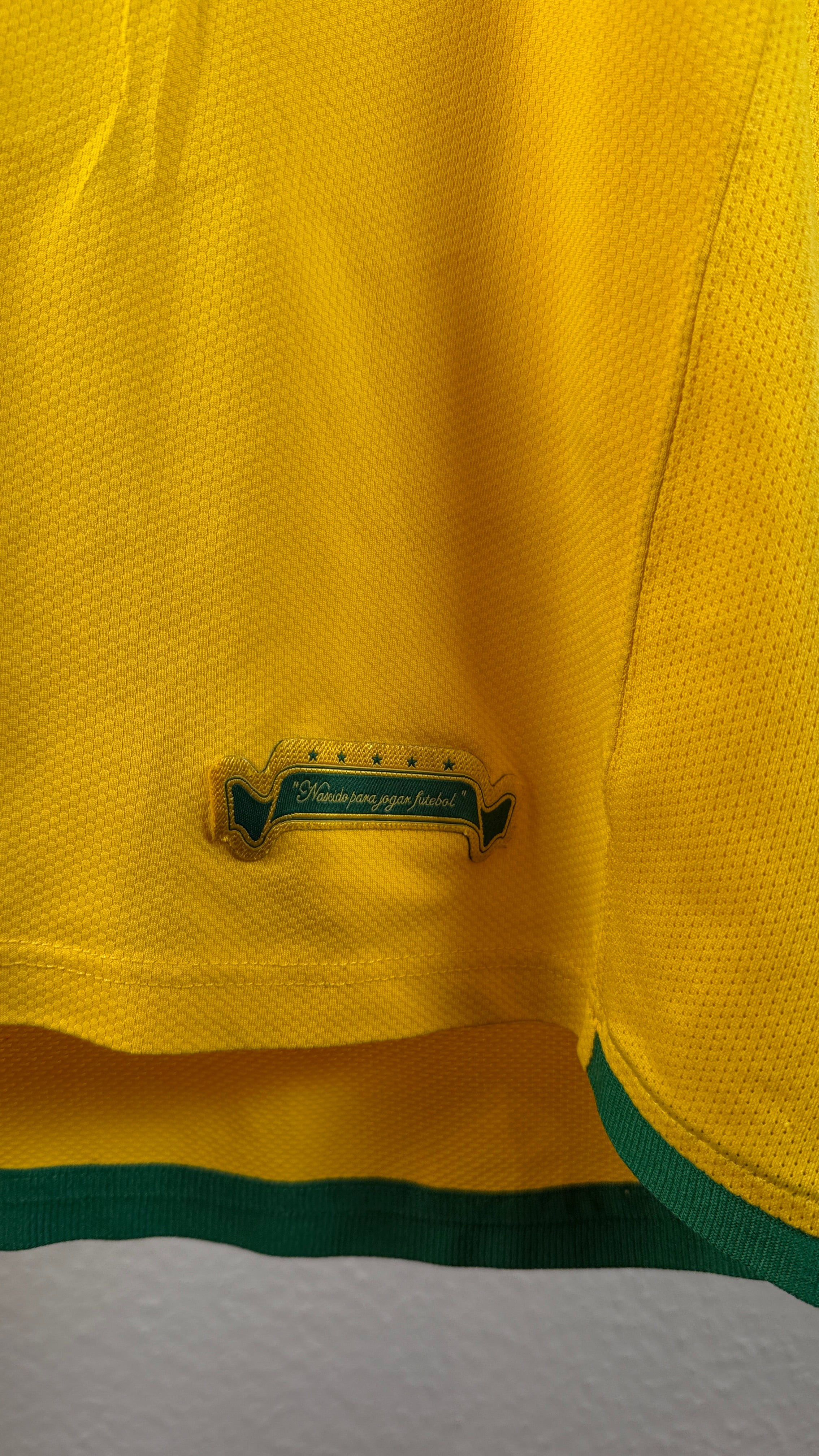 BESONDERHEITEN – Klassisches Heimtrikot der brasilianischen Nationalmannschaft von der WM 2006 in Deutschland mit Beflockung von Ronaldo #9. In diesem Turnier wurde Ronaldo mit insgesamt 15 Toren zum WM-Rekordtorschützen. Nike-Design mit ikonischem Gelb-Grün-Look – ein begehrtes Sammlerstück trotz kleiner Mängel.