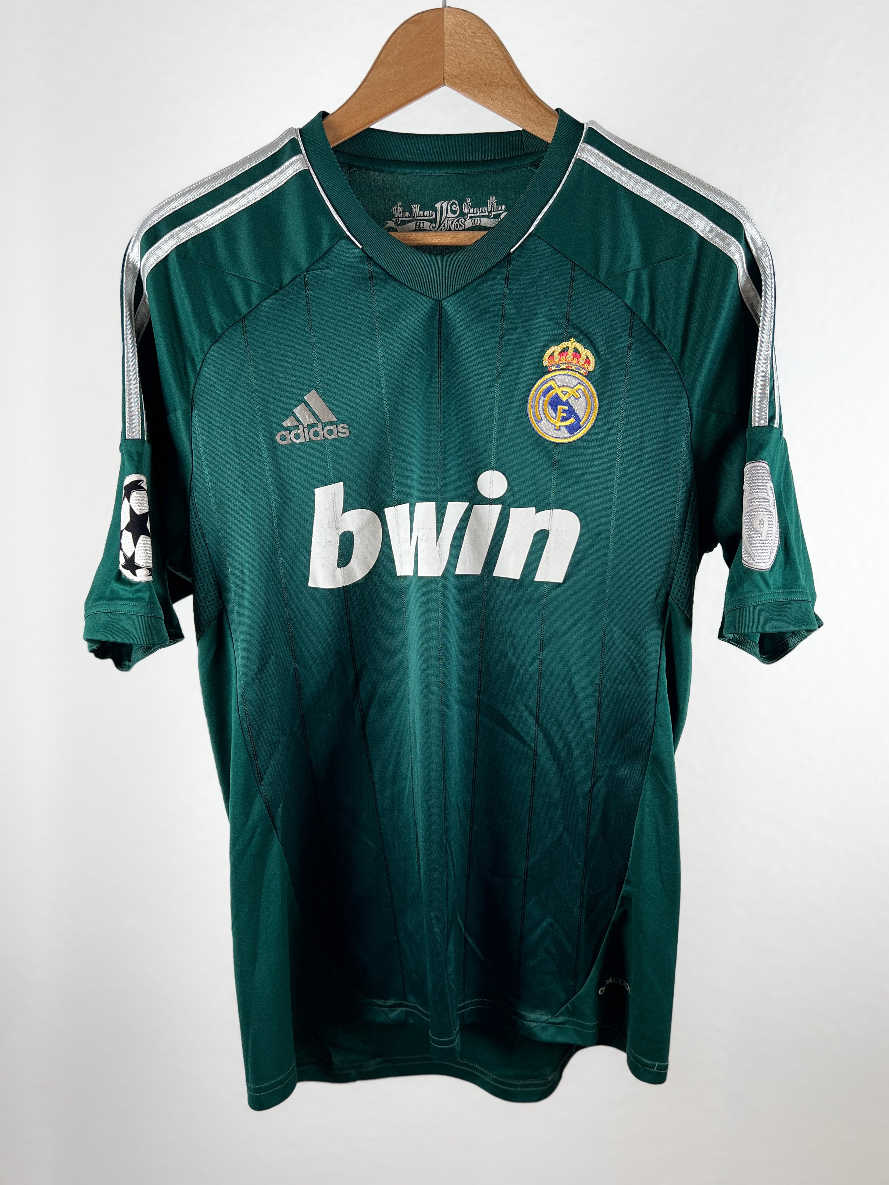 ZUSTAND – Gut – der Sponsor hat sichtbare Gebrauchsspuren, aber insgesamt in gutem Zustand (siehe Fotos). Das Trikot ist mit Champions-League-Patches ausgestattet.