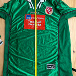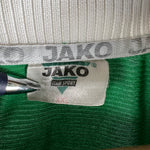 Extrem seltenes drittes Trikot von Energie Cottbus aus der Bundesliga-Saison 2001/02 – grüne Satin-Optik, langarm, klassisches JAKO-Design. Auf dem Rücken mit der Nummer 5, unter der Markus Feldhoff als Mittelstürmer für die Lausitzer auflief. Ein absolutes Sammlerstück und echtes Stück Bundesliga-Geschichte!