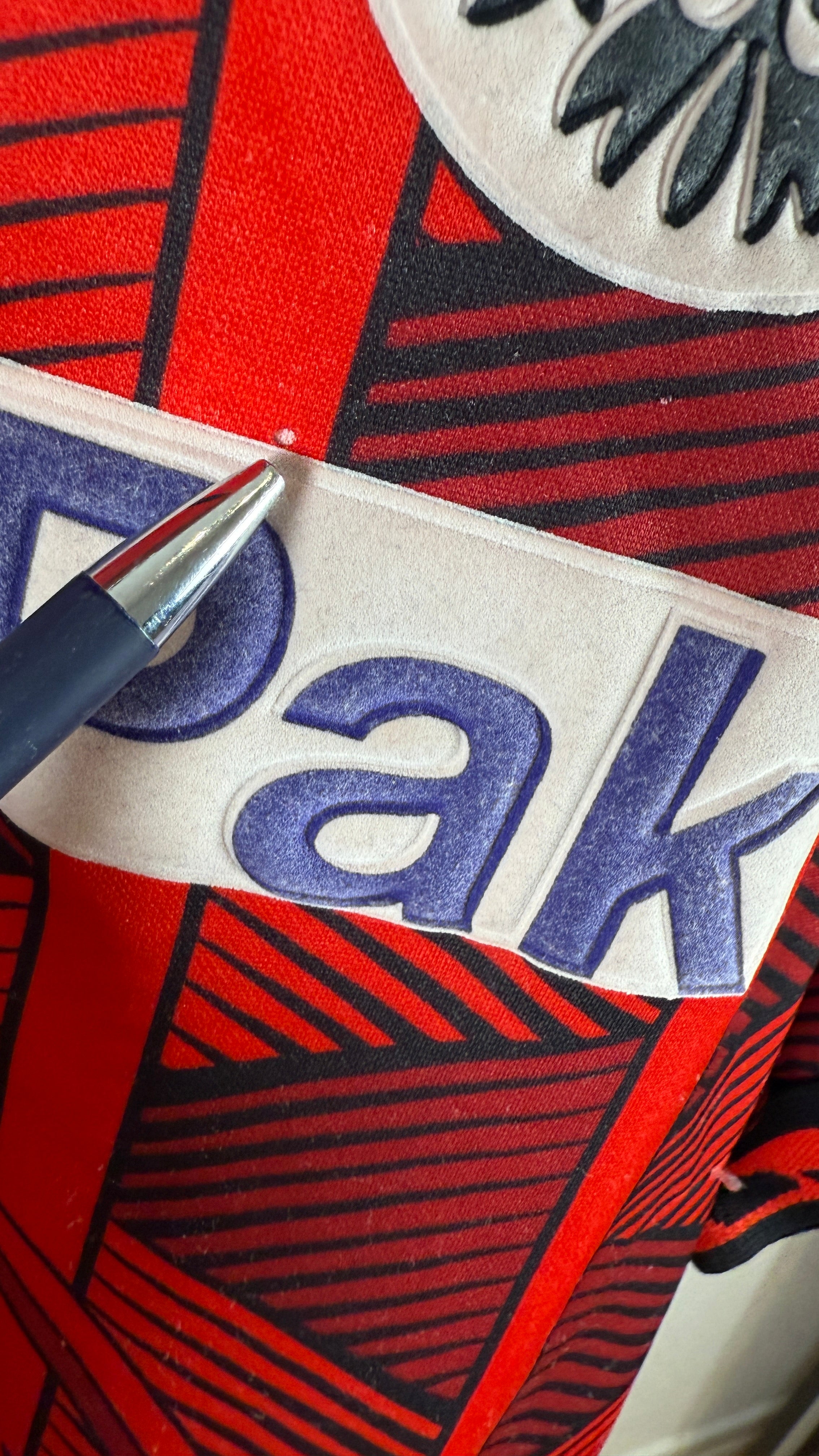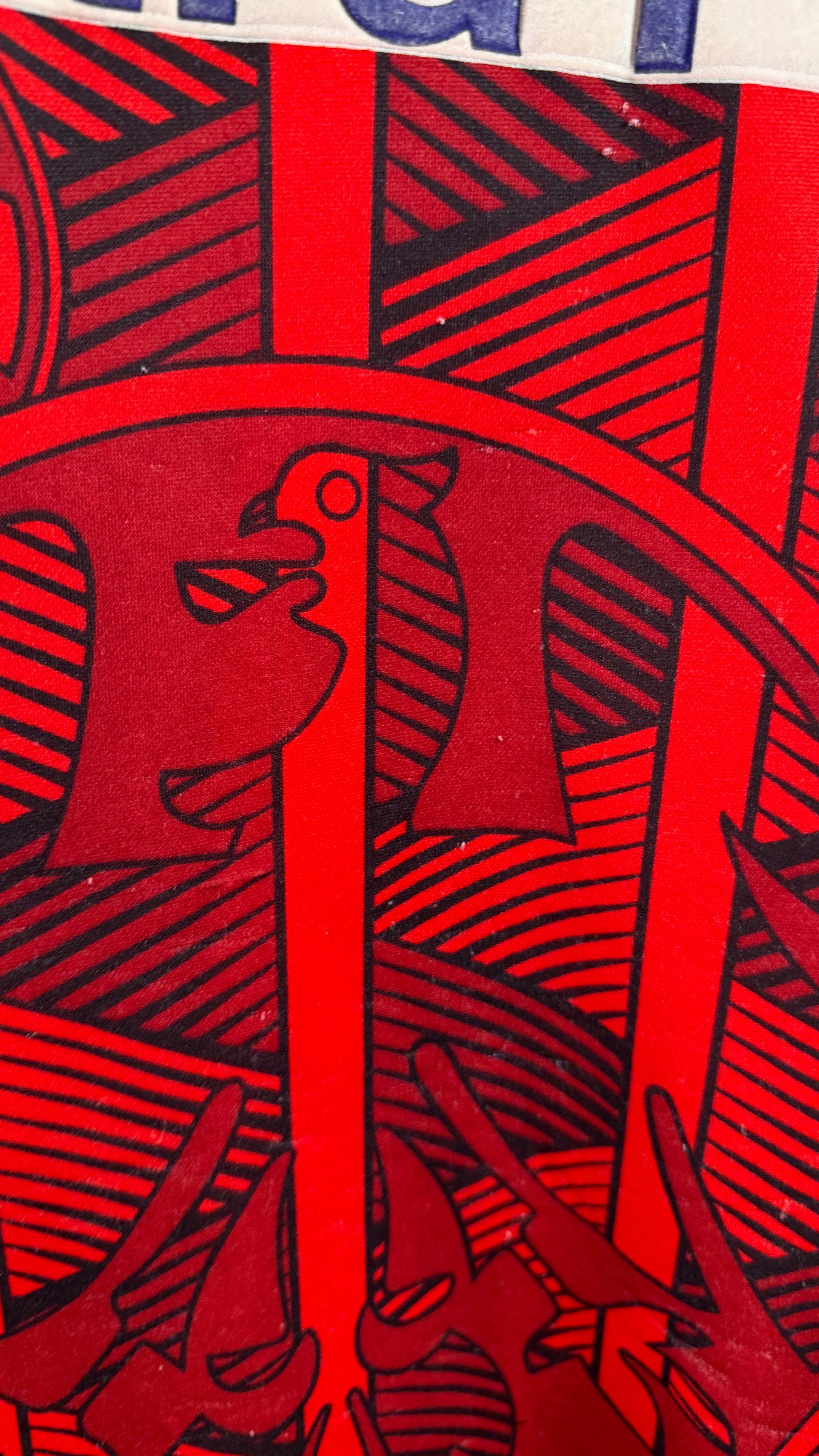 Zustand: Gut – es gibt ein winziges Loch und einige Fadenzieher, ansonsten ist das Trikot in gutem Zustand für sein Alter (siehe Bilder).