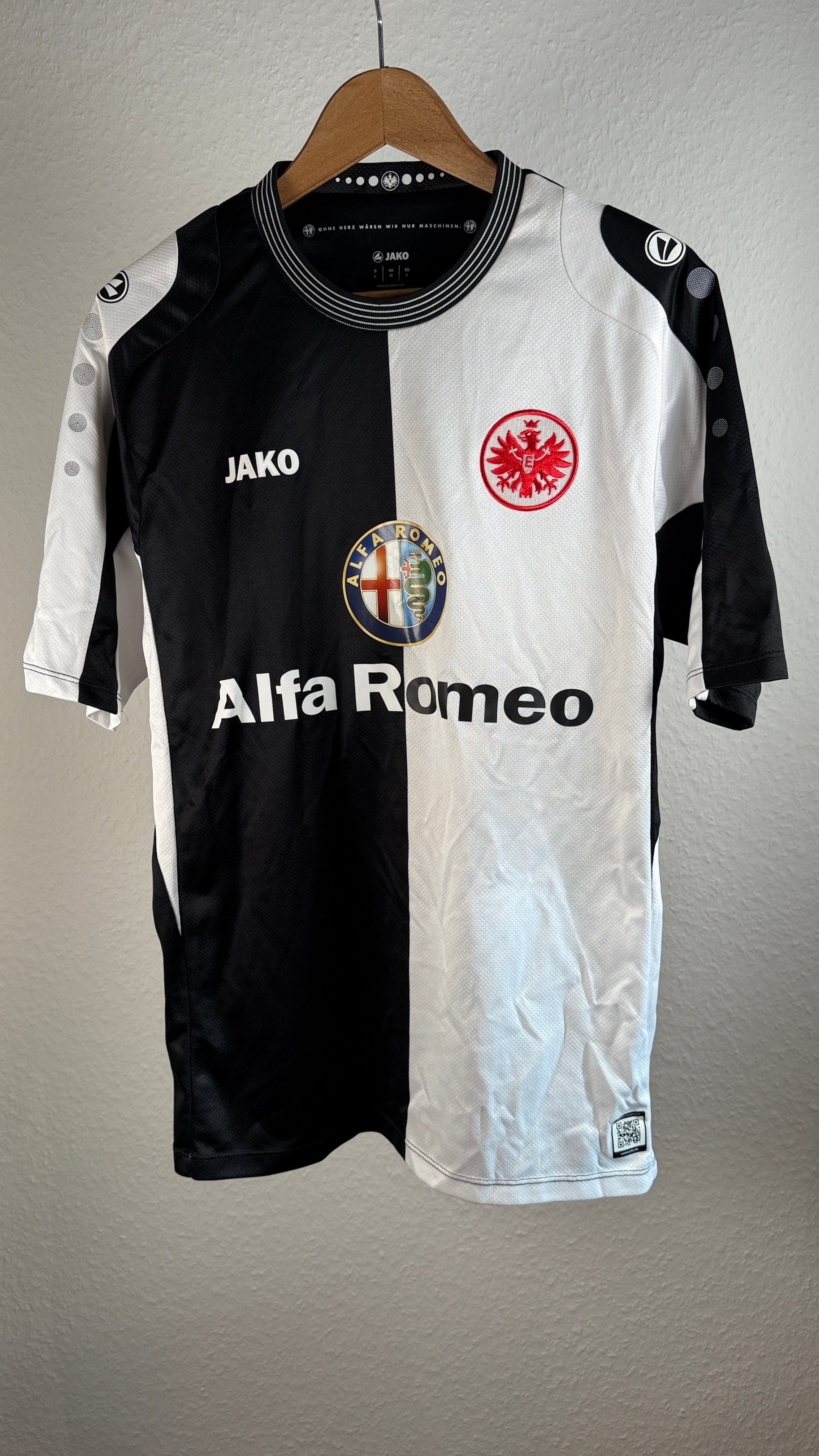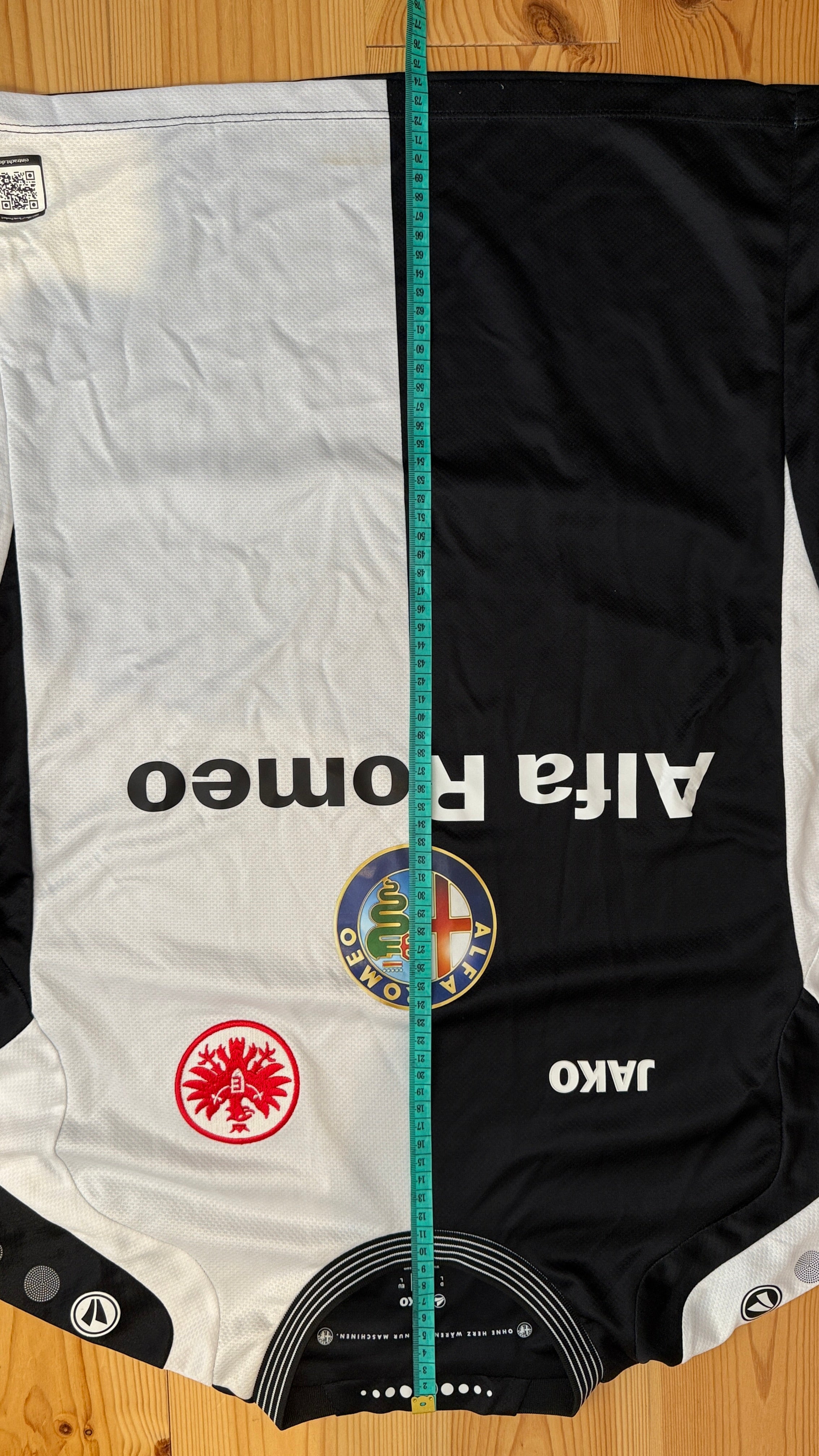 BESONDERHEITEN – Heimtrikot der Eintracht aus der Bundesliga-Saison 2013/14 mit Alfa-Romeo-Sponsor. Klassisches Jako-Design in Rot-Schwarz – ein begehrtes Sammlerstück für Frankfurt-Fans.
