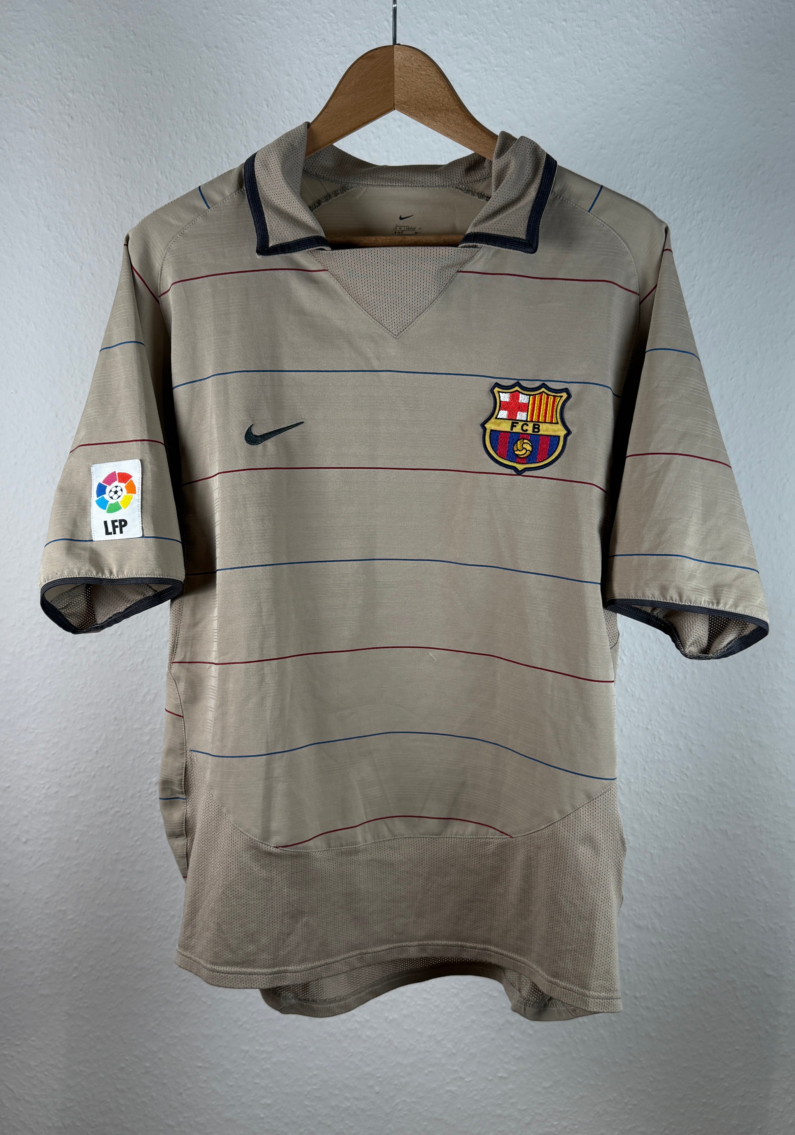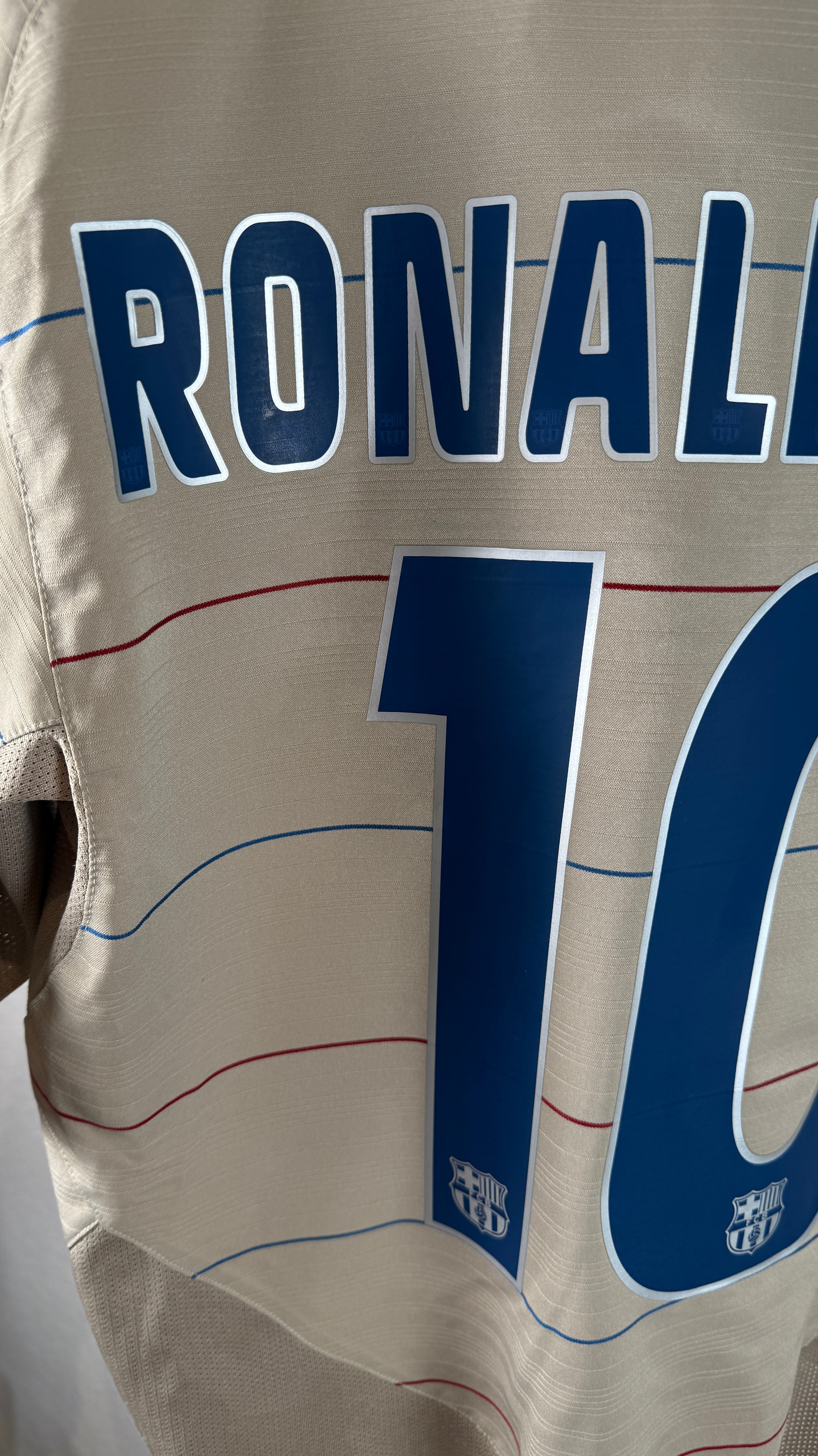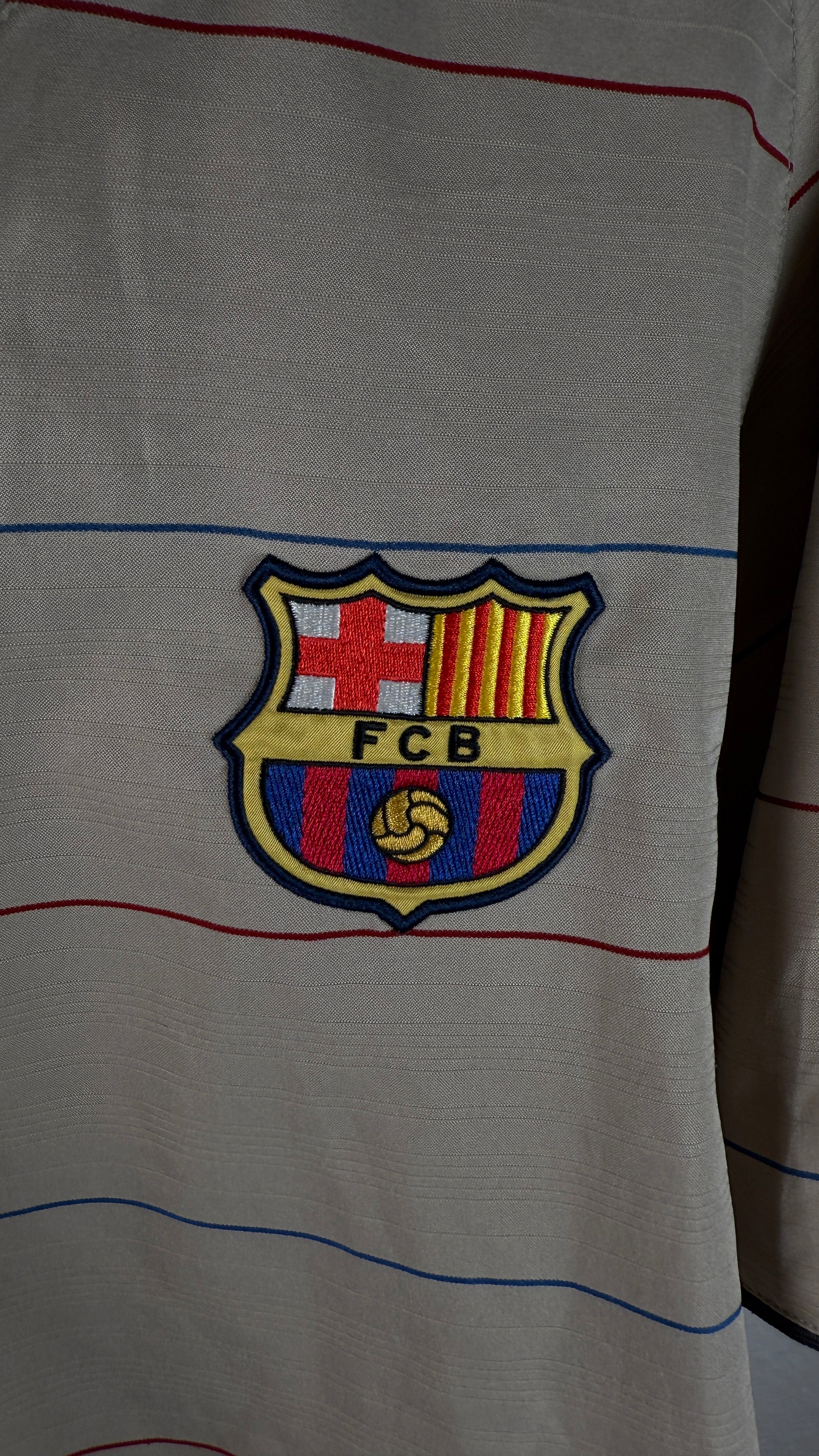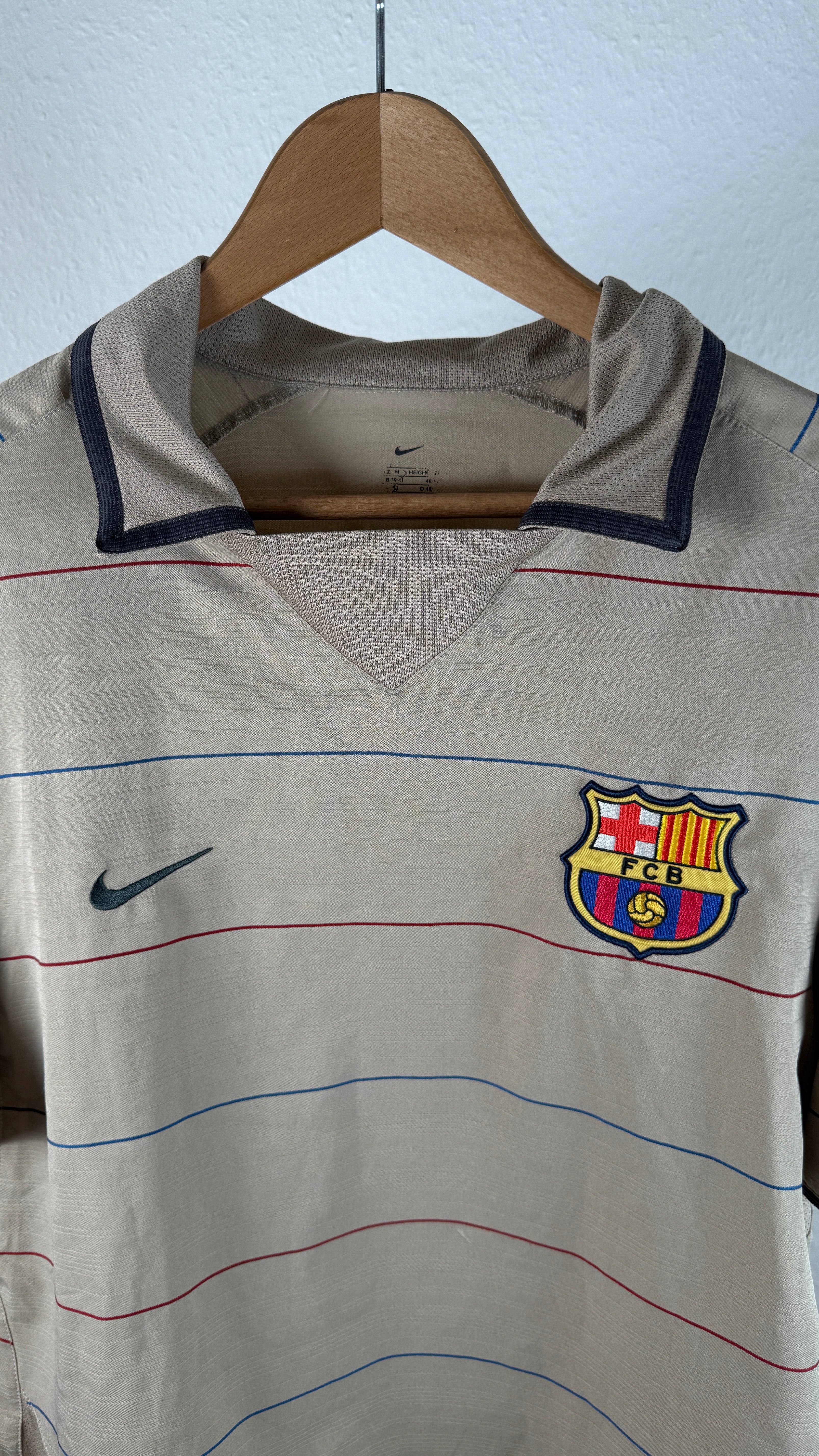 Extrem seltenes drittes Trikot des FC Barcelona aus der Saison 2004/05, getragen von Ronaldinho in seiner Glanzzeit. Mit diesem Design leitete Nike die goldene Ära des Vereins ein, die später mit dem Aufstieg von Lionel Messi geprägt wurde. Ein absolutes Sammlerstück für Barça- und Ronaldinho-Fans.