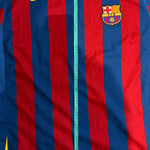 Seltenes sponsorfrei-Heimtrikot des FC Barcelona aus der Saison 2005/06 mit Bezug zu Ronaldinho, dem Weltfußballer von 2004 und 2005. Ein echtes Stück Fußballgeschichte – in dieser Saison gewann Barça mit Ronaldinho die Champions League 2006 gegen Arsenal.