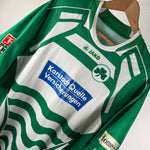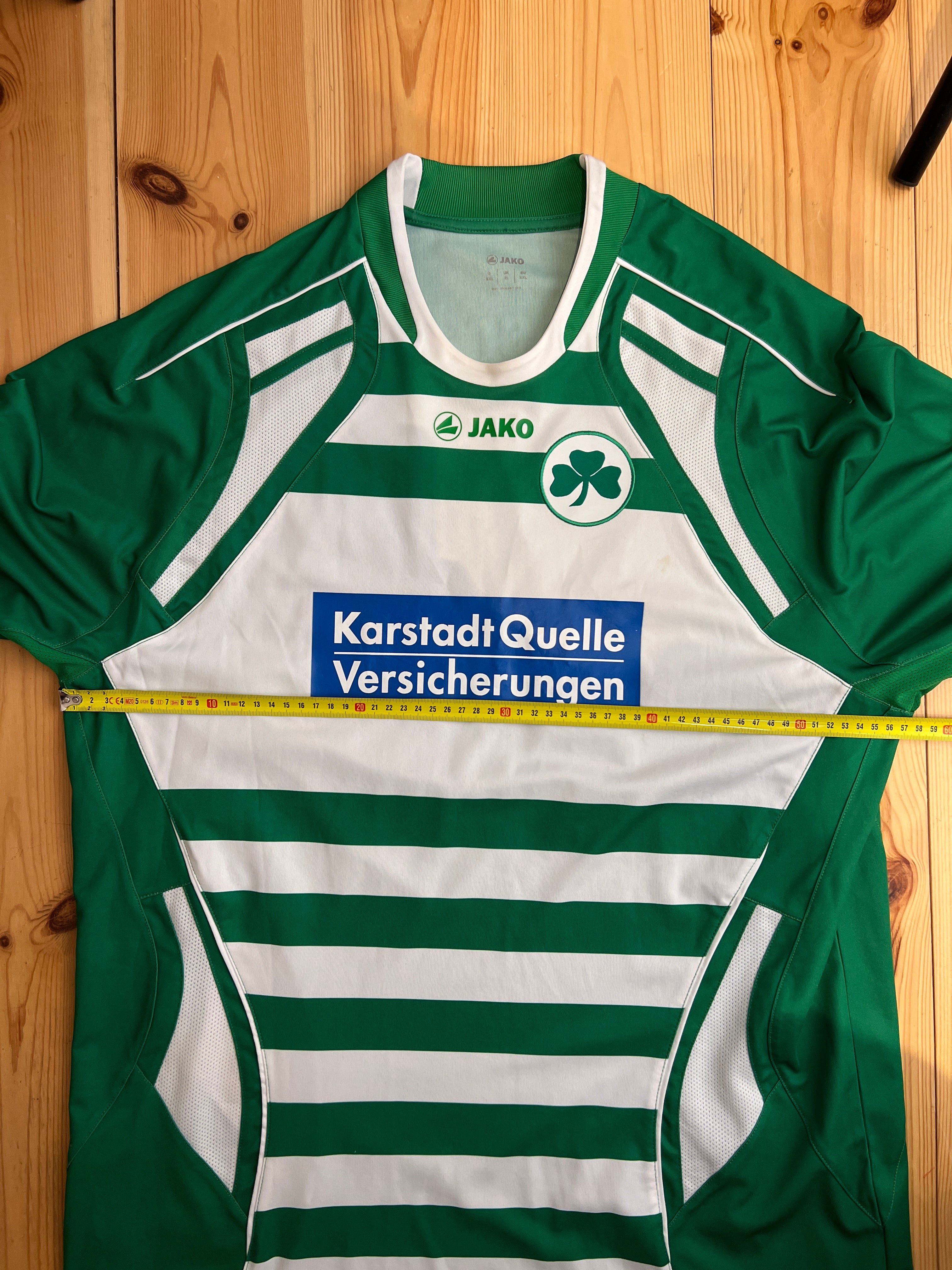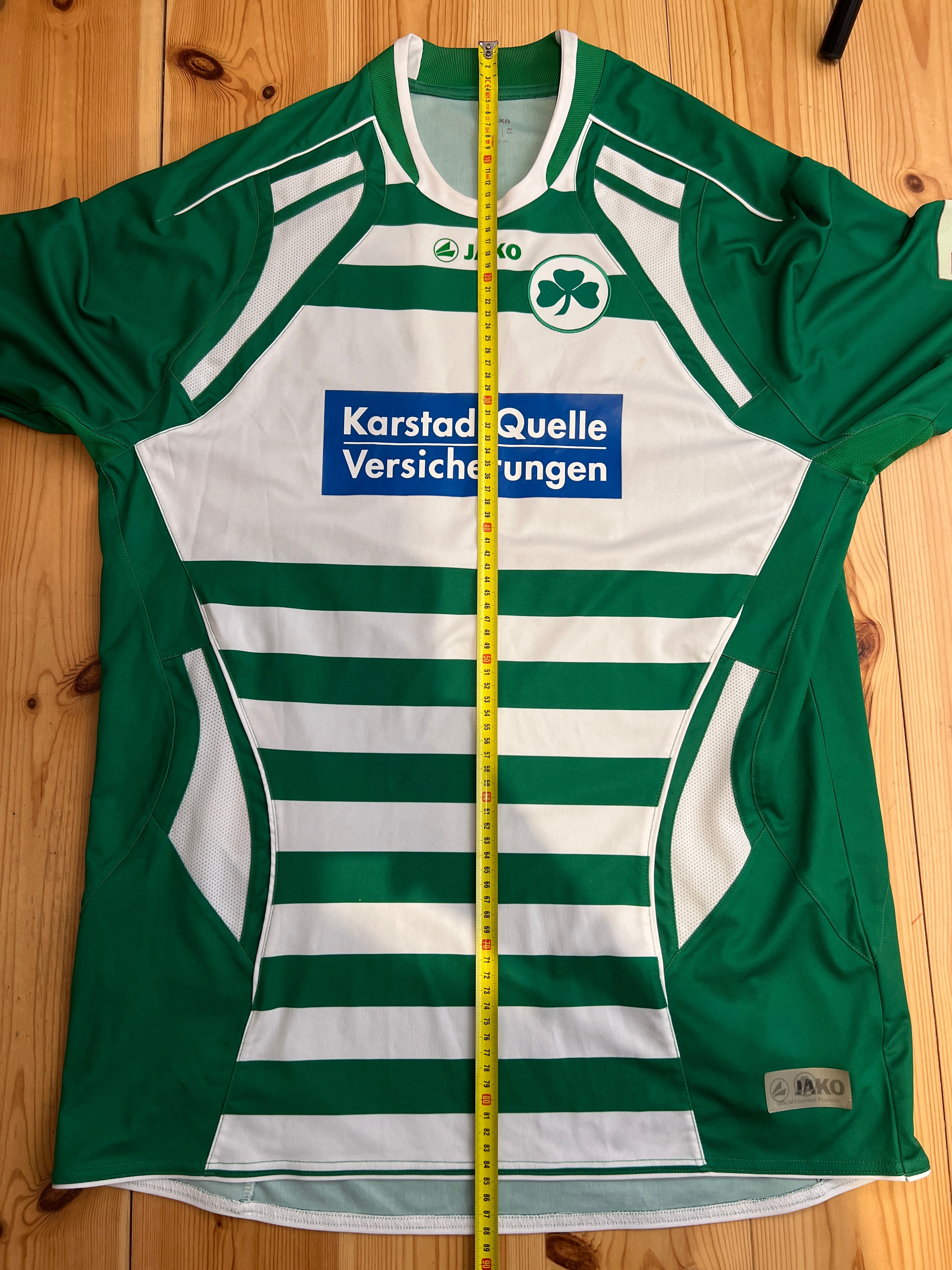 Authentische Spielerversion mit originalem Bundesliga- und Sponsorpatch. Klassisches Heimtrikot von Jako mit auffälligem grün-weißen Wellenmuster – getragenes Design aus der Saison 2009/10. Ein Must-Have für echte Fürth-Fans und Sammler!