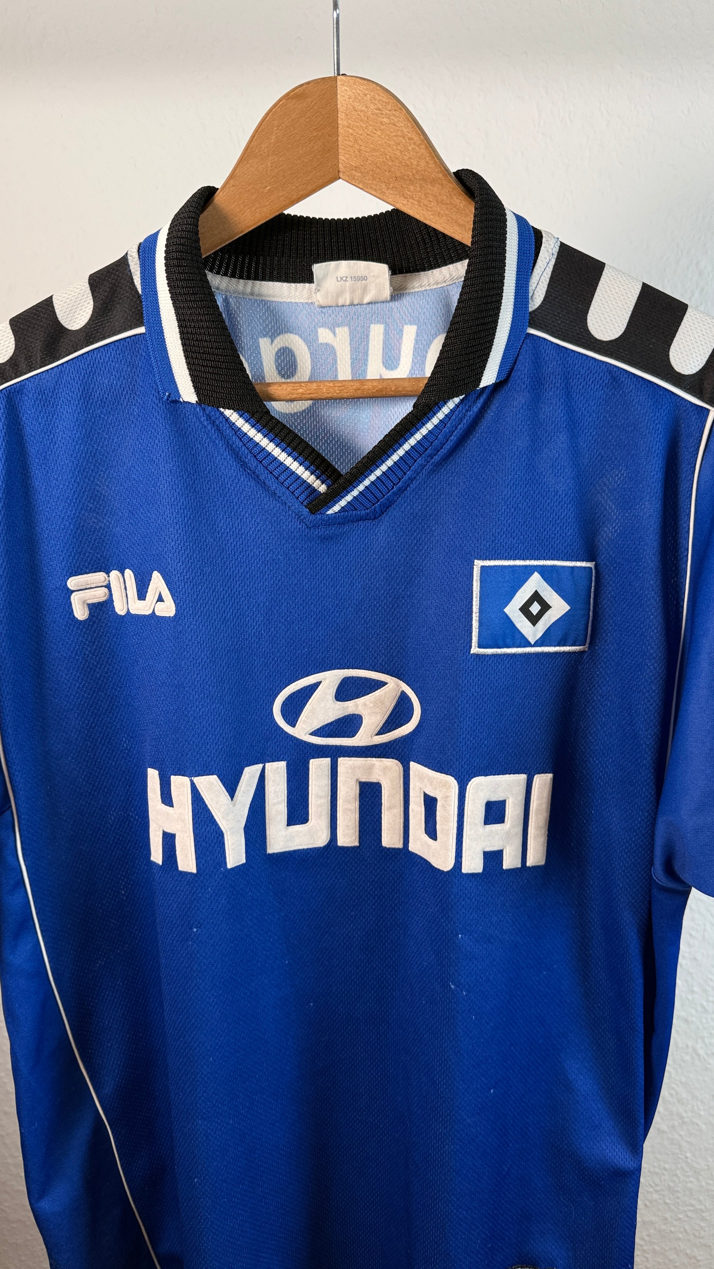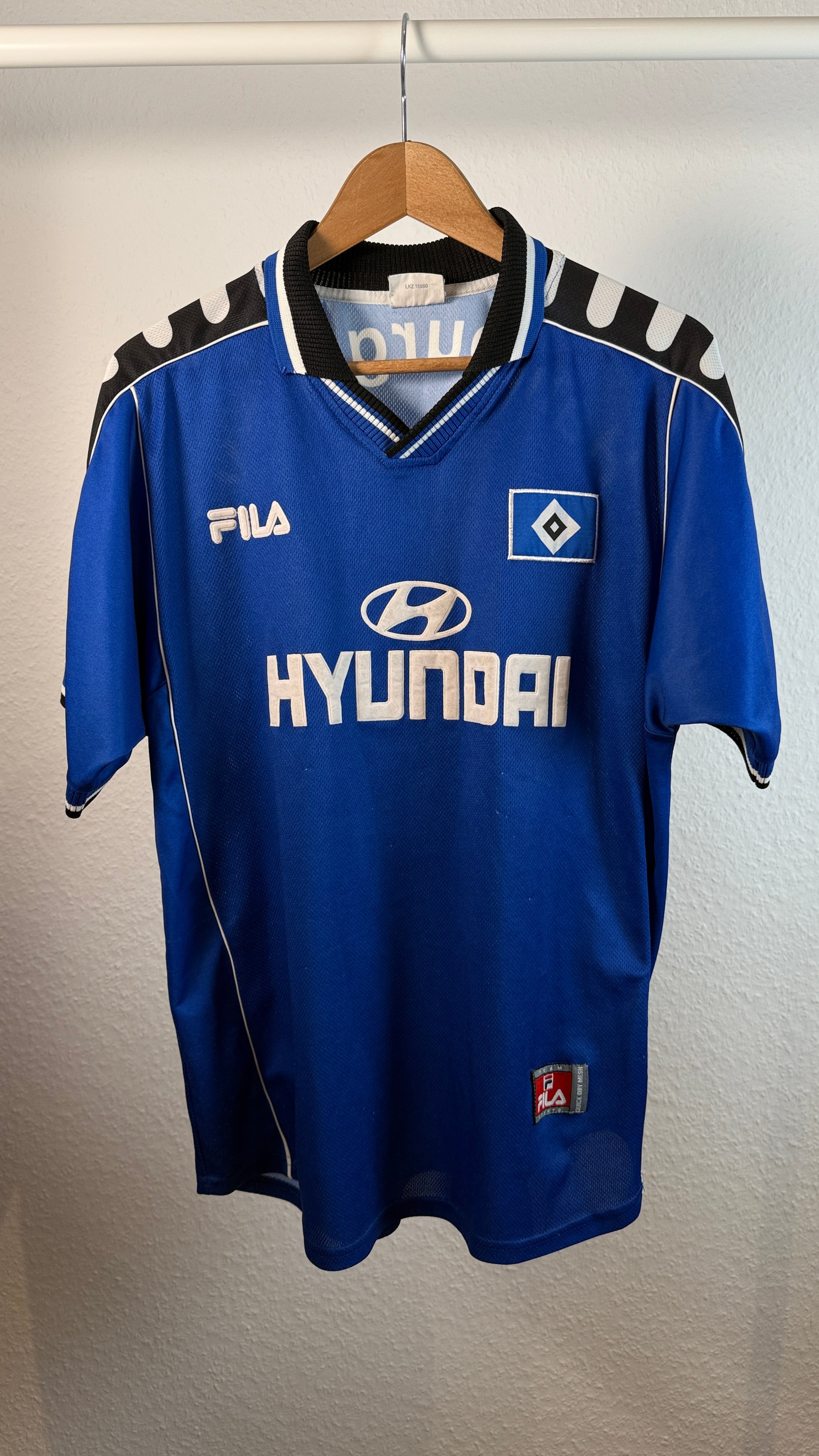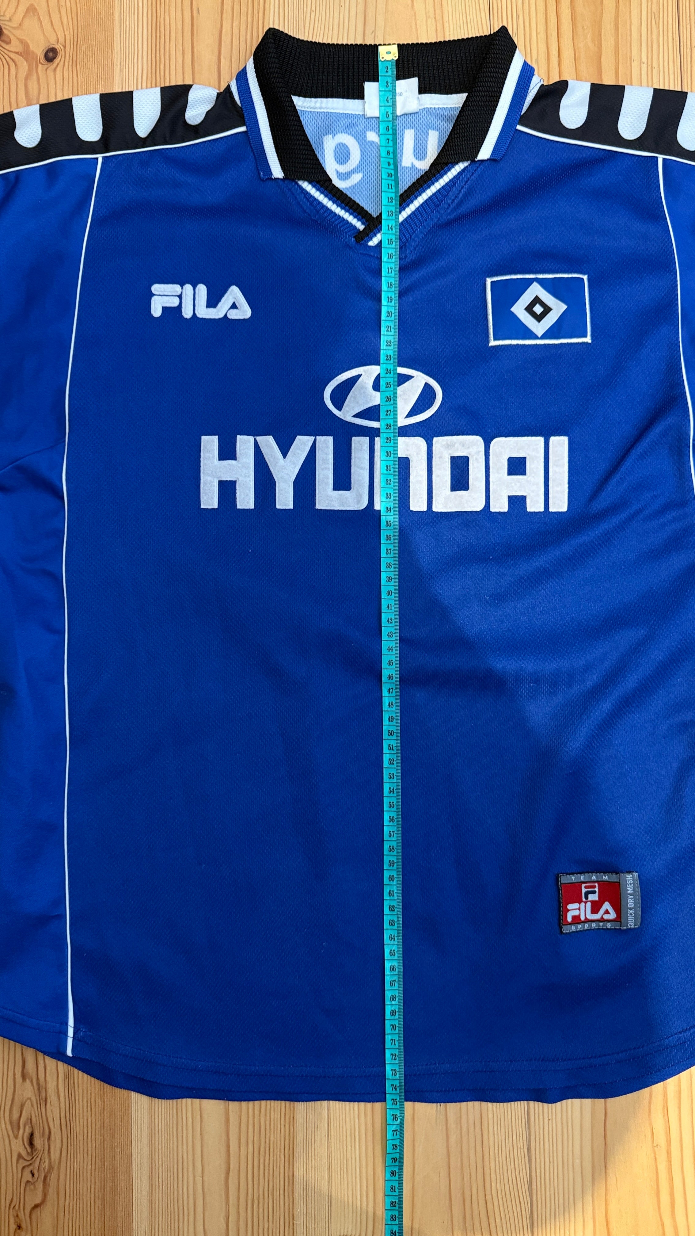 BESONDERHEITEN – Klassisches HSV-Auswärtstrikot aus der Saison 1999/2000 von Fila mit Hyundai-Sponsor. Typisches 90er-Design und seltenes Originalstück aus einer spannenden Bundesliga-Ära. Ein Highlight für Vintage-Sammler und HSV-Fans.