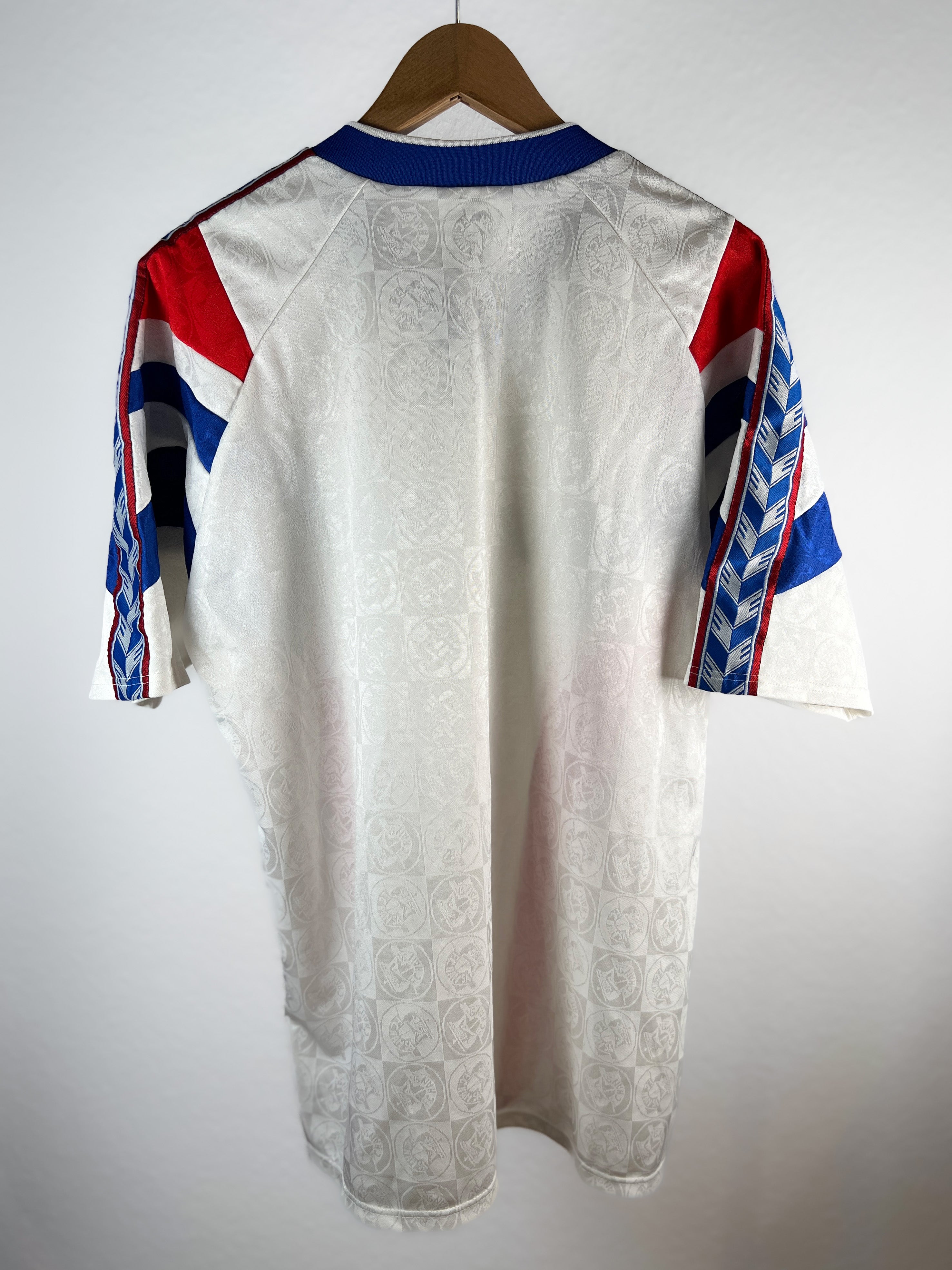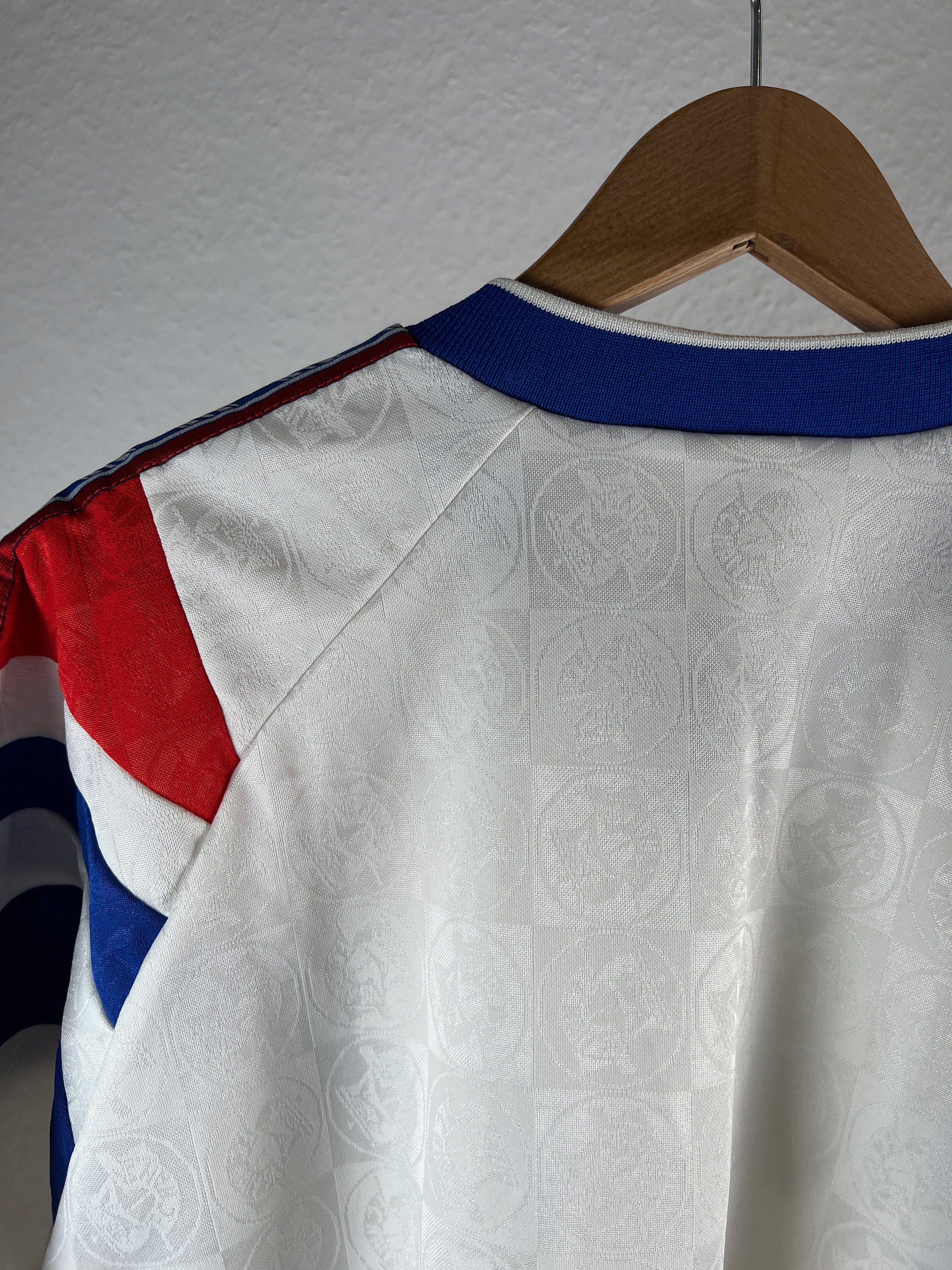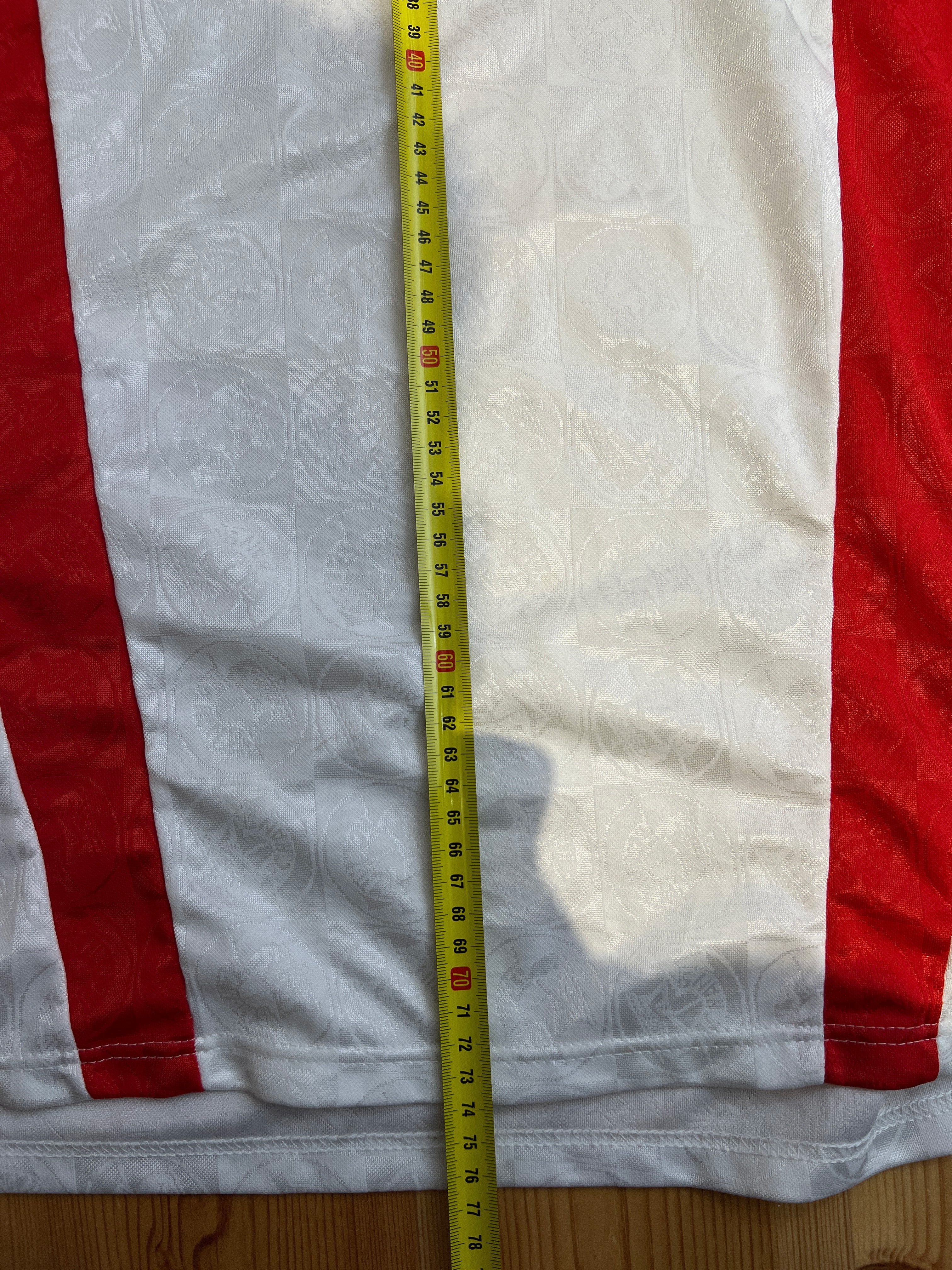 ZUSTAND – Sehr gut – Das Trikot hat minimale Gebrauchsspuren: Ein kleiner, fast unsichtbarer Riss unter dem Arm (siehe Foto) und ein feines, leichtes Fleckchen auf dem Wappen, das bei der nächsten Wäsche verschwinden sollte. Ansonsten in hervorragendem Zustand.