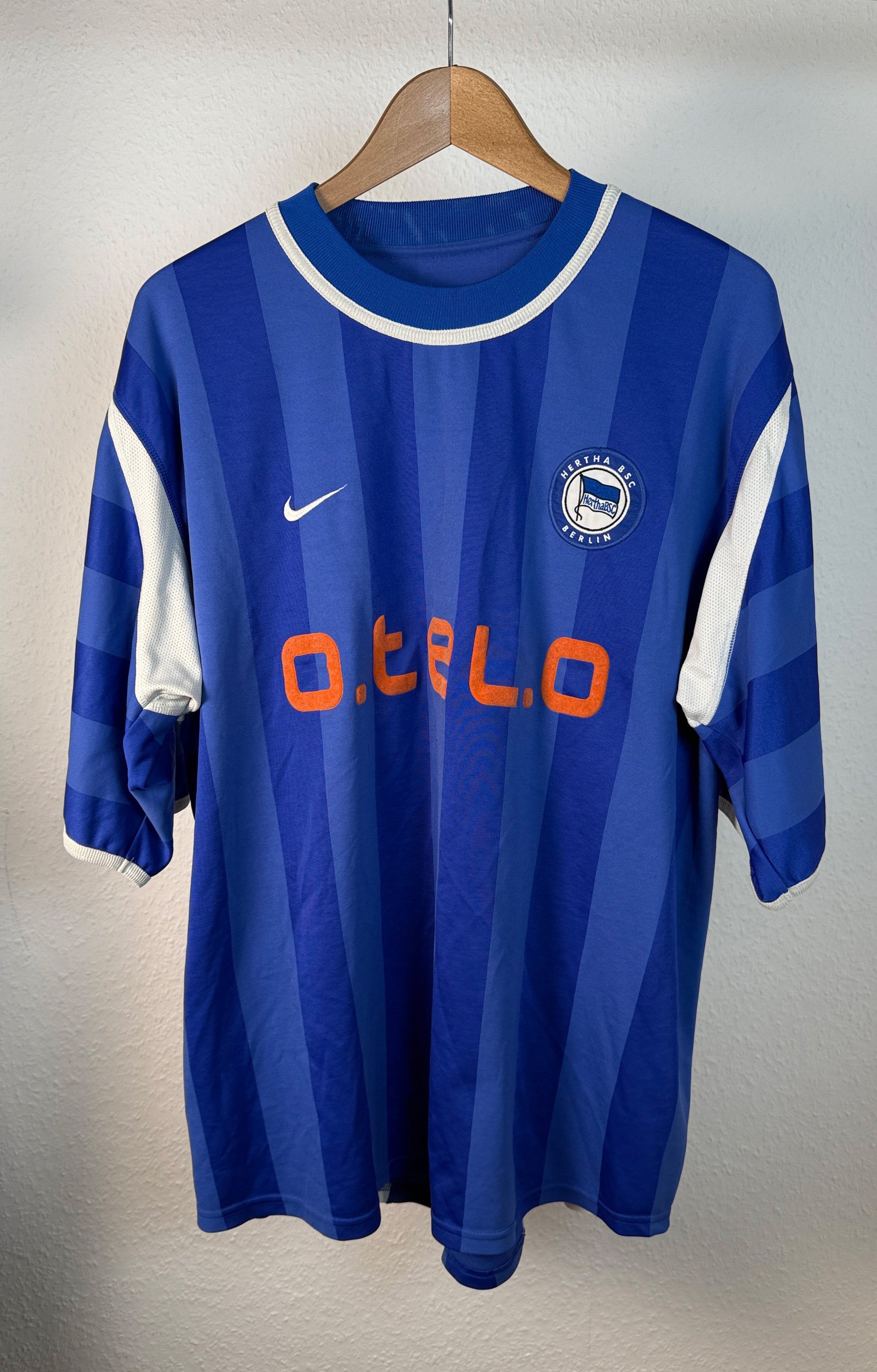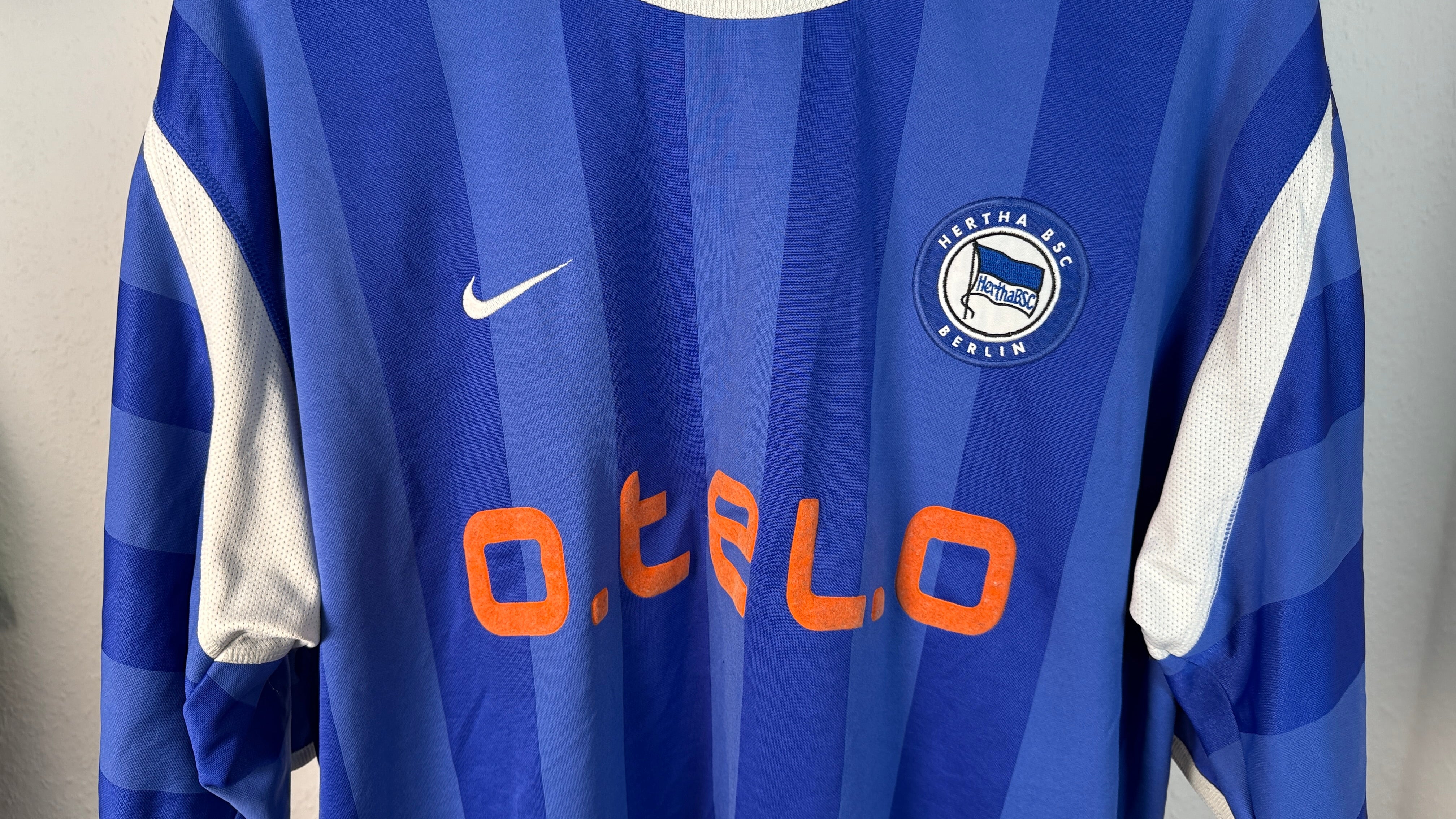 BESONDERHEITEN – Originales Heimtrikot von Hertha BSC aus der Saison 2000/01 mit Flock von Alex Alves #7, dem brasilianischen Offensivspieler, der durch sein legendäres Tor von der Mittellinie bekannt wurde. Klassisches Nike-Design mit Otelo-Sponsor – ein echtes Stück Hertha-Geschichte und ein Highlight für Sammler der frühen 2000er.
