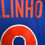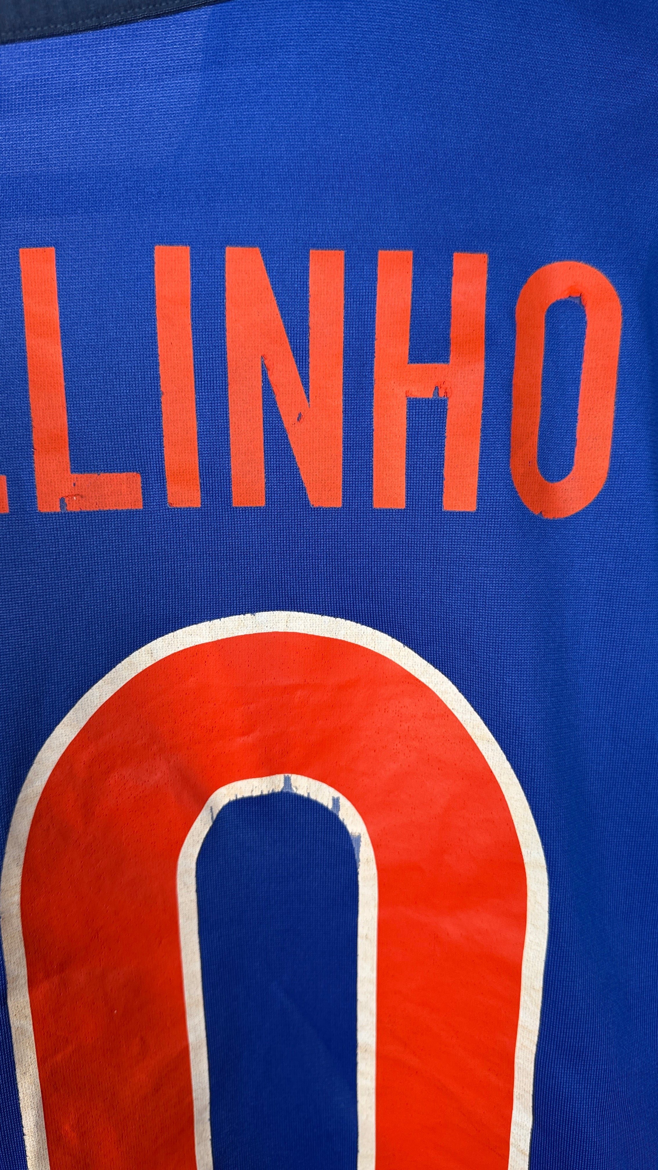 • ZUSTAND – Gut – der Marcelinho-Flock ist leicht abgelöst, ansonsten befindet sich das Trikot in gutem Zustand (siehe Fotos).