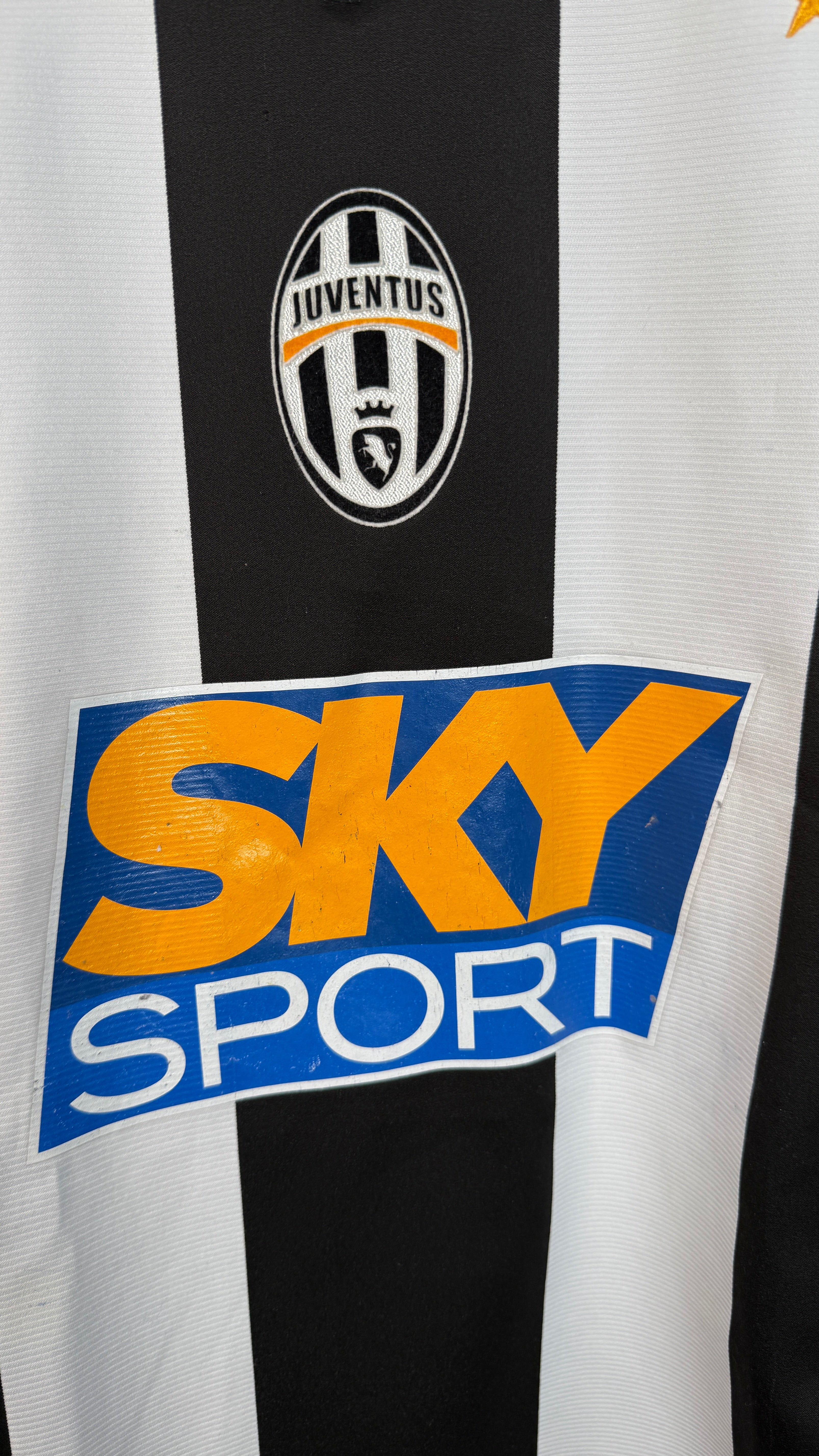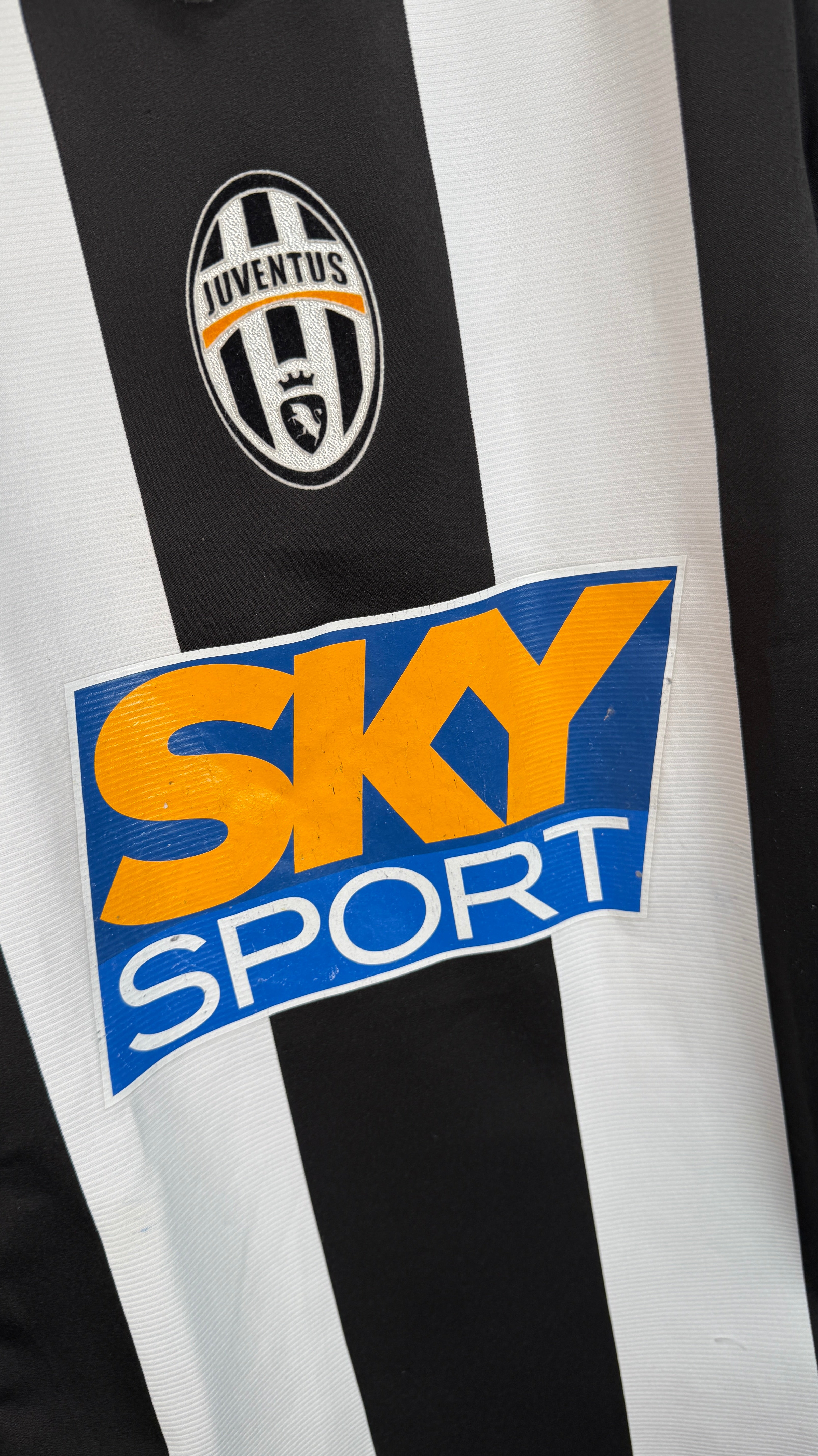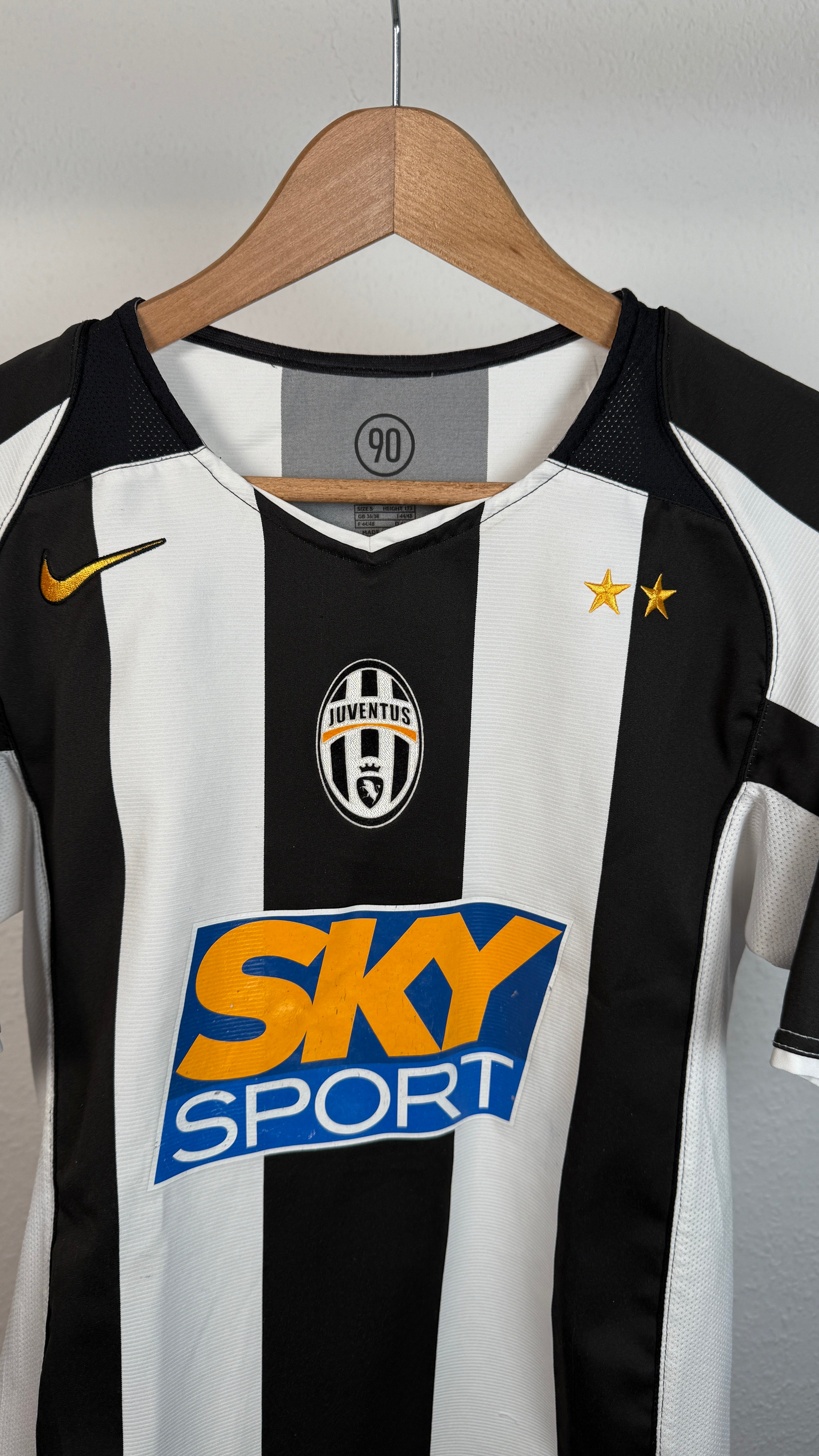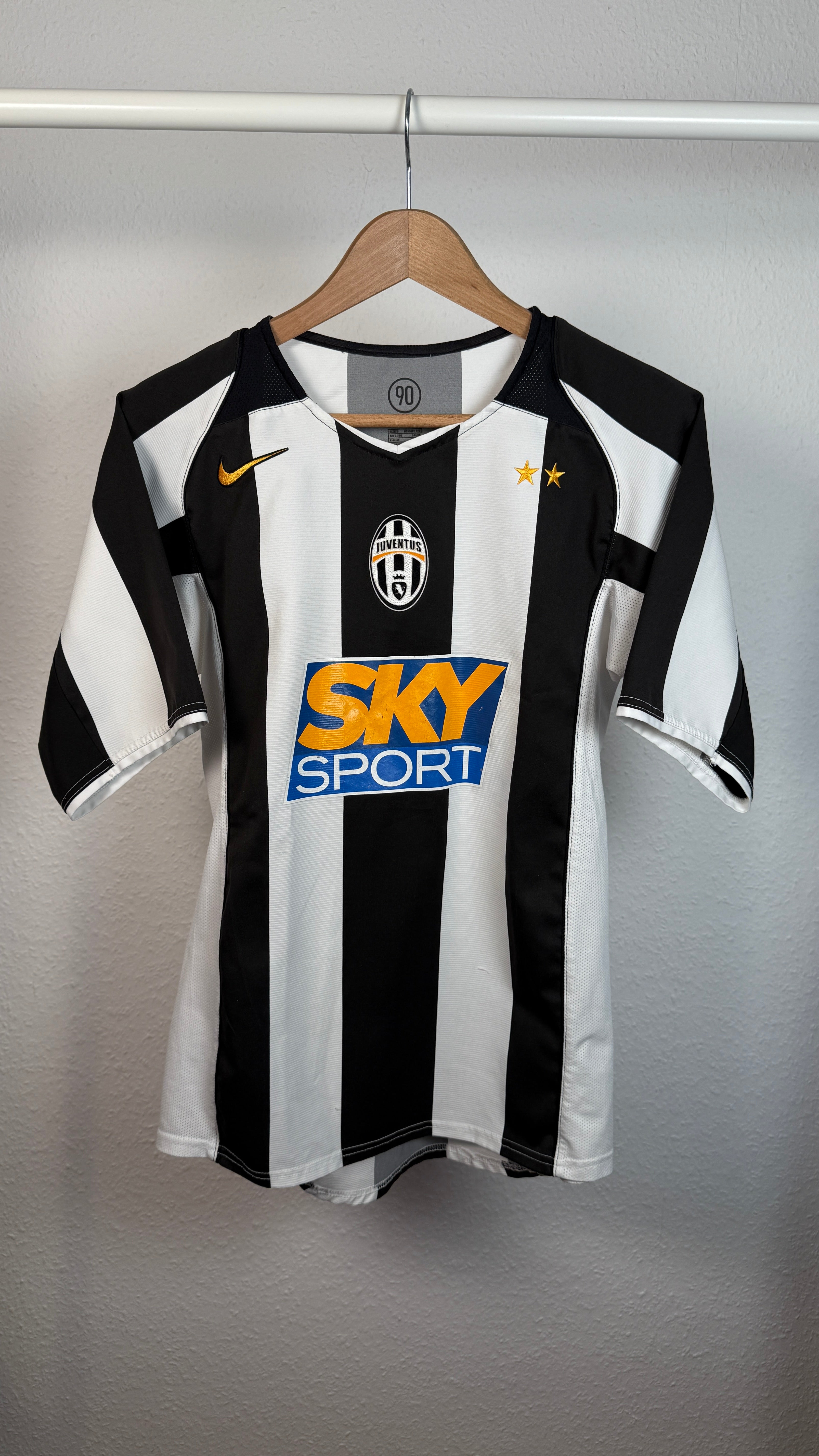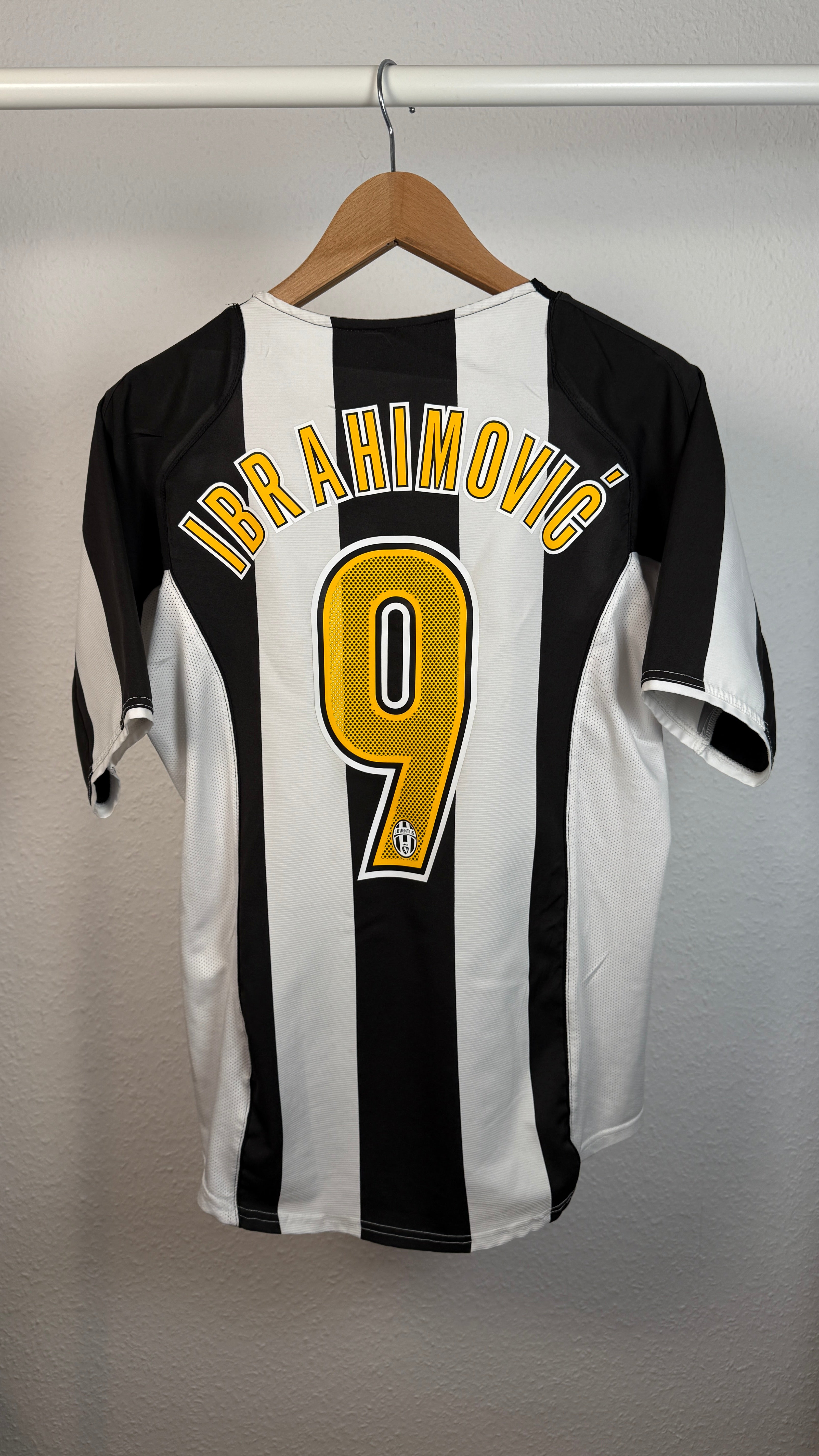 Klassisches Juventus-Heimtrikot aus der Saison 2004/05 mit originalem Zlatan-Ibrahimović-#9-Flock. Typisches Design der frühen 2000er-Jahre aus Zlatans Zeit bei Juventus. Ehrlicher Vintage-Zustand mit leichten Spuren am Sponsor – starkes Sammlerstück für Juve- und Ibrahimović-Fans.