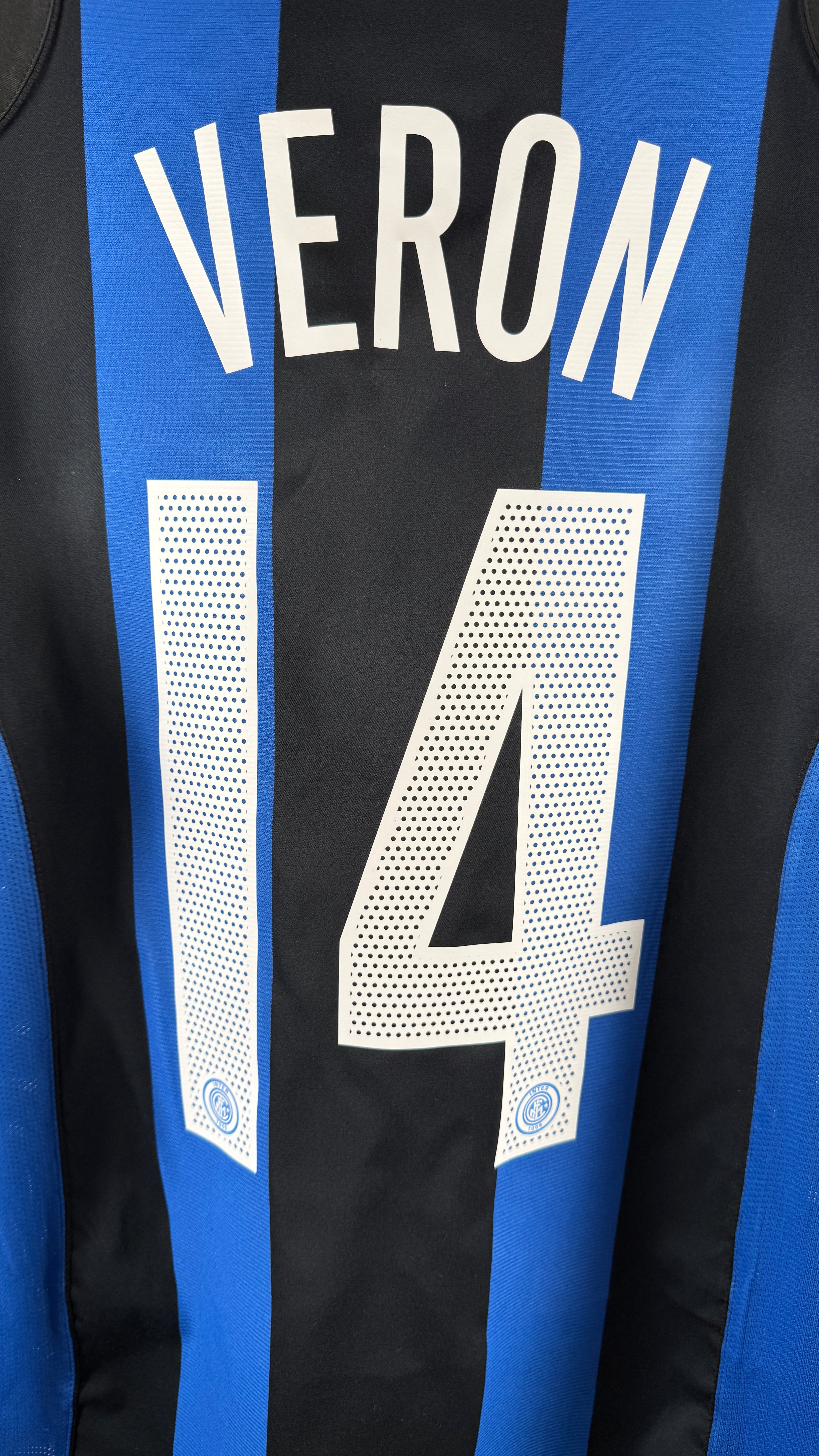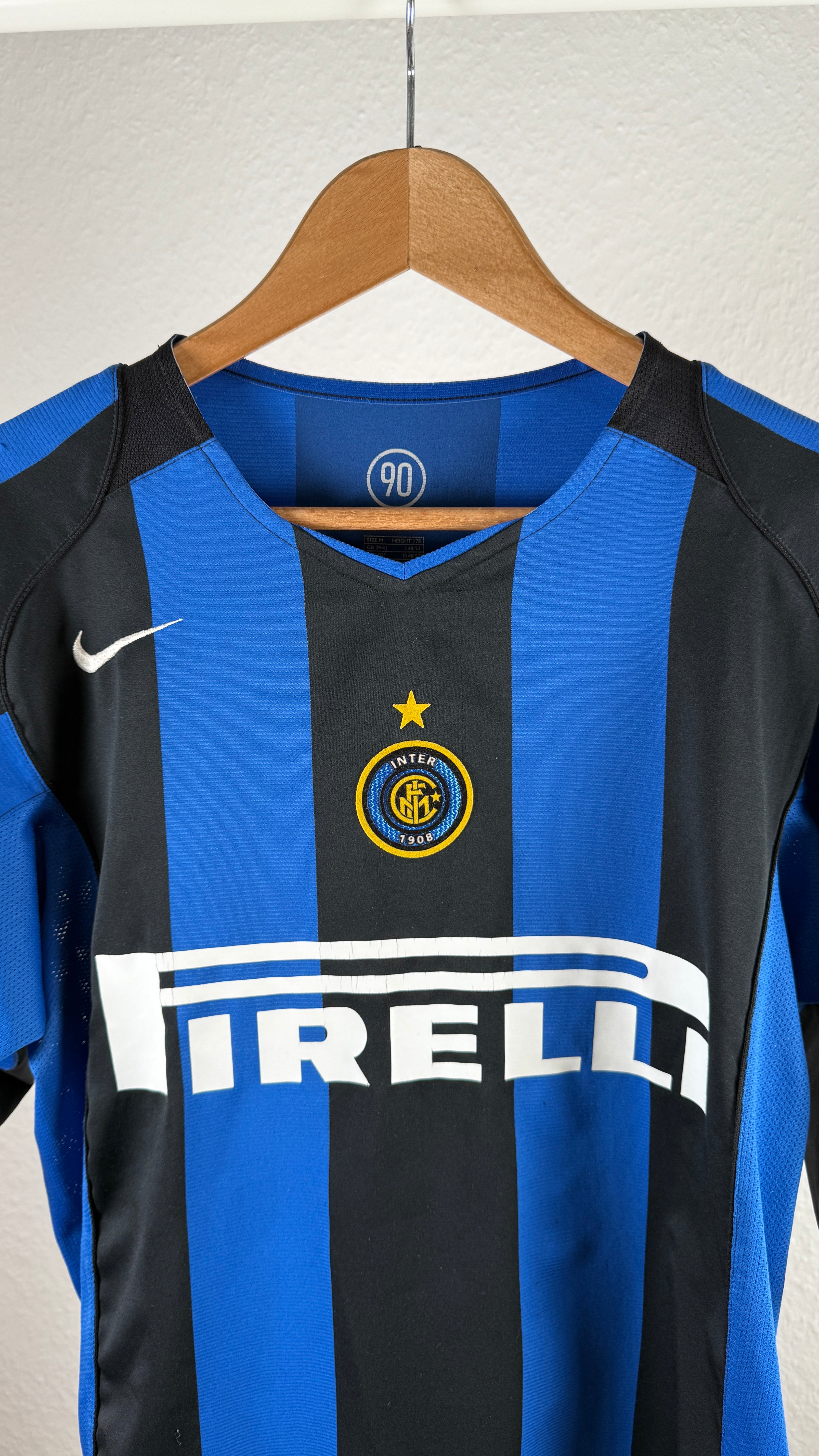 Besonderheiten: Originales Heimtrikot von Inter Mailand mit Flock Juan Sebastián Verón #14. Der argentinische Mittelfeldstar war bekannt für seine präzisen Pässe, starken Standards und Spielintelligenz. Klassisches schwarz-blaues Streifendesign, wie in der Saison Mitte der 2000er Jahre getragen.