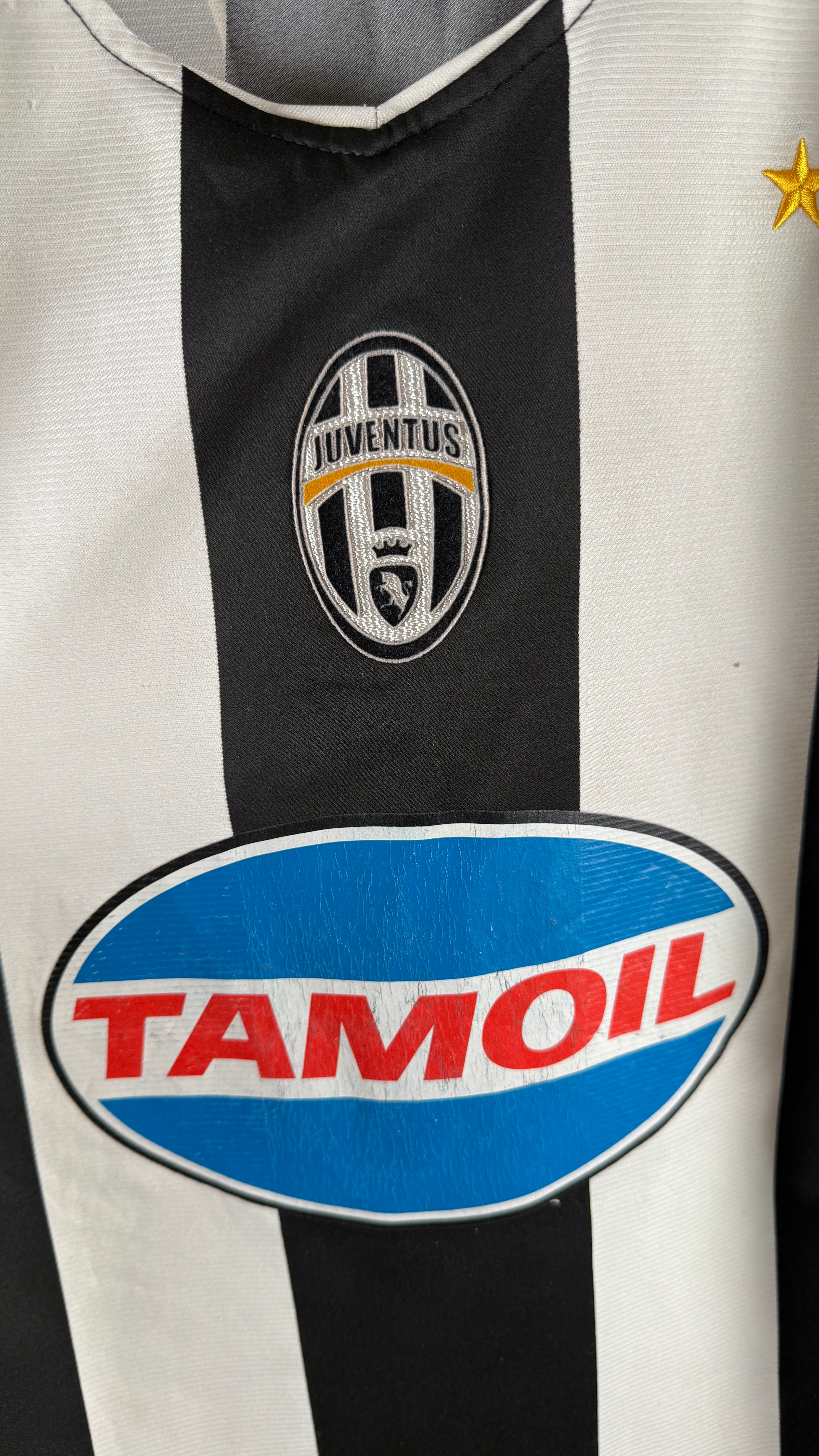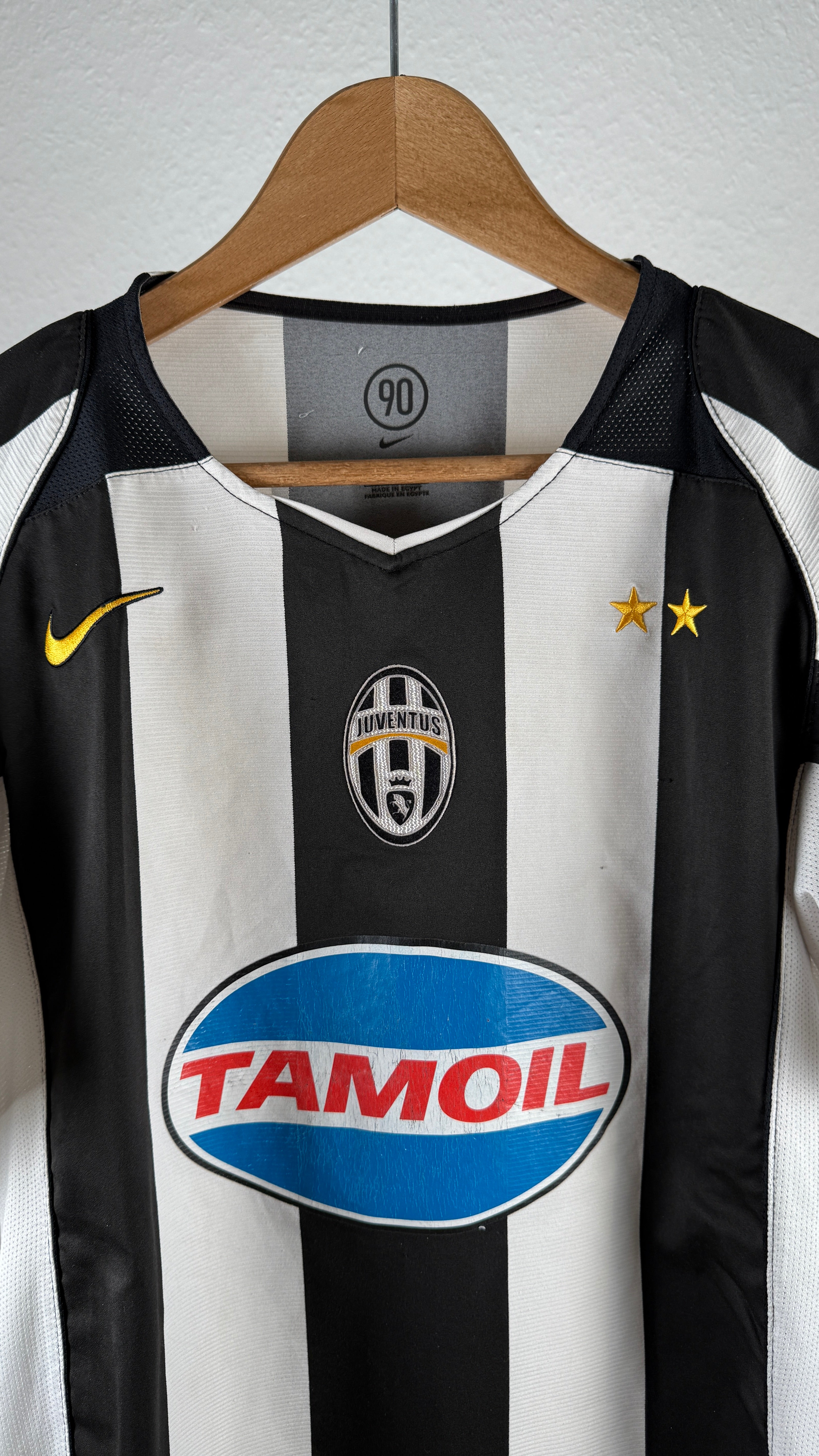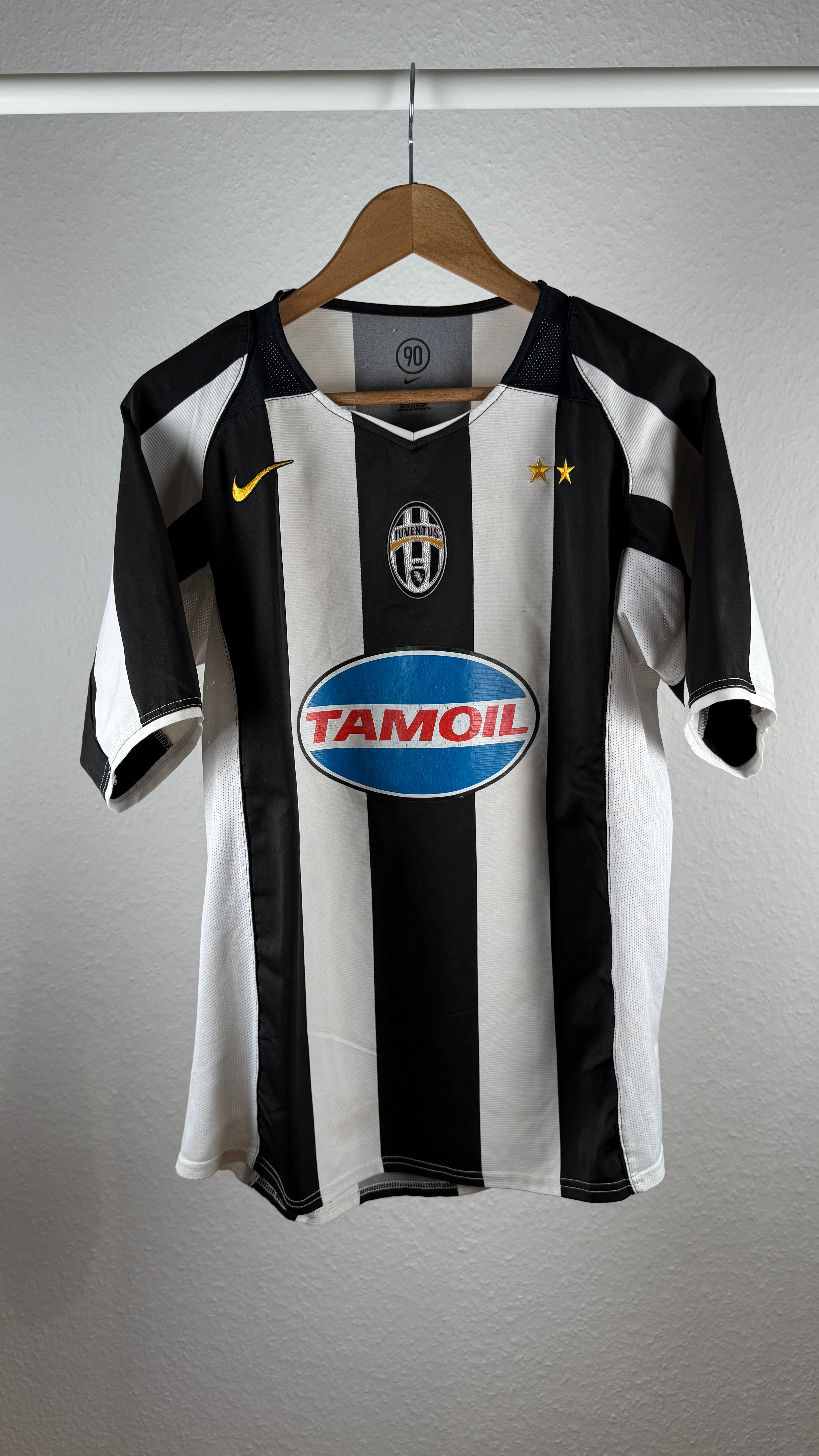 Originales Juventus Heimtrikot aus der Saison 2004/05, mit klassischem Nike-Design und dem blauen Tamoil-Sponsor. Mit Rückenflock von Zlatan Ibrahimović (#9) – aus seiner ersten Saison in Turin. Kulttrikot der frühen 2000er – ideal für Sammler & Juve-Fans!