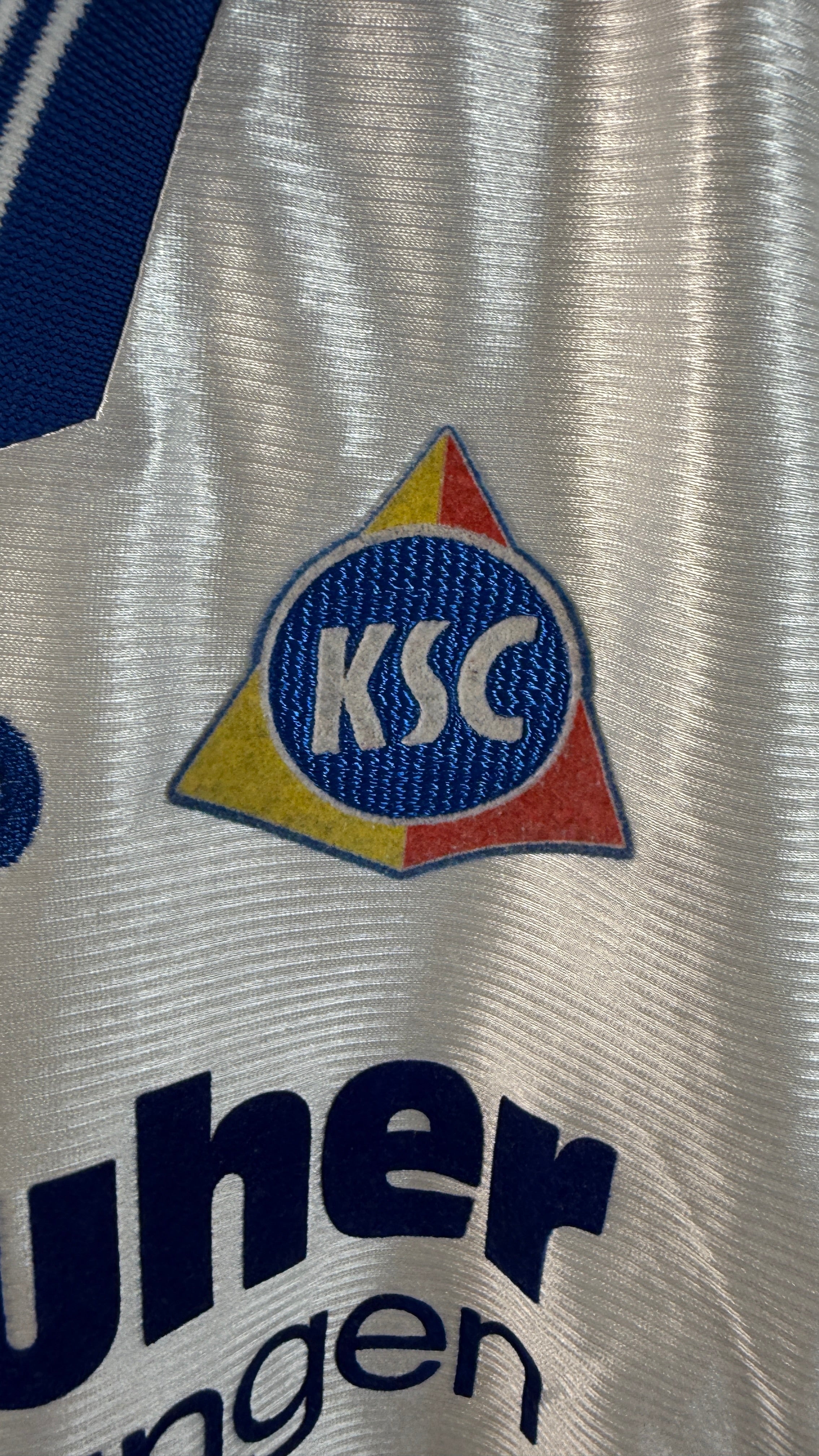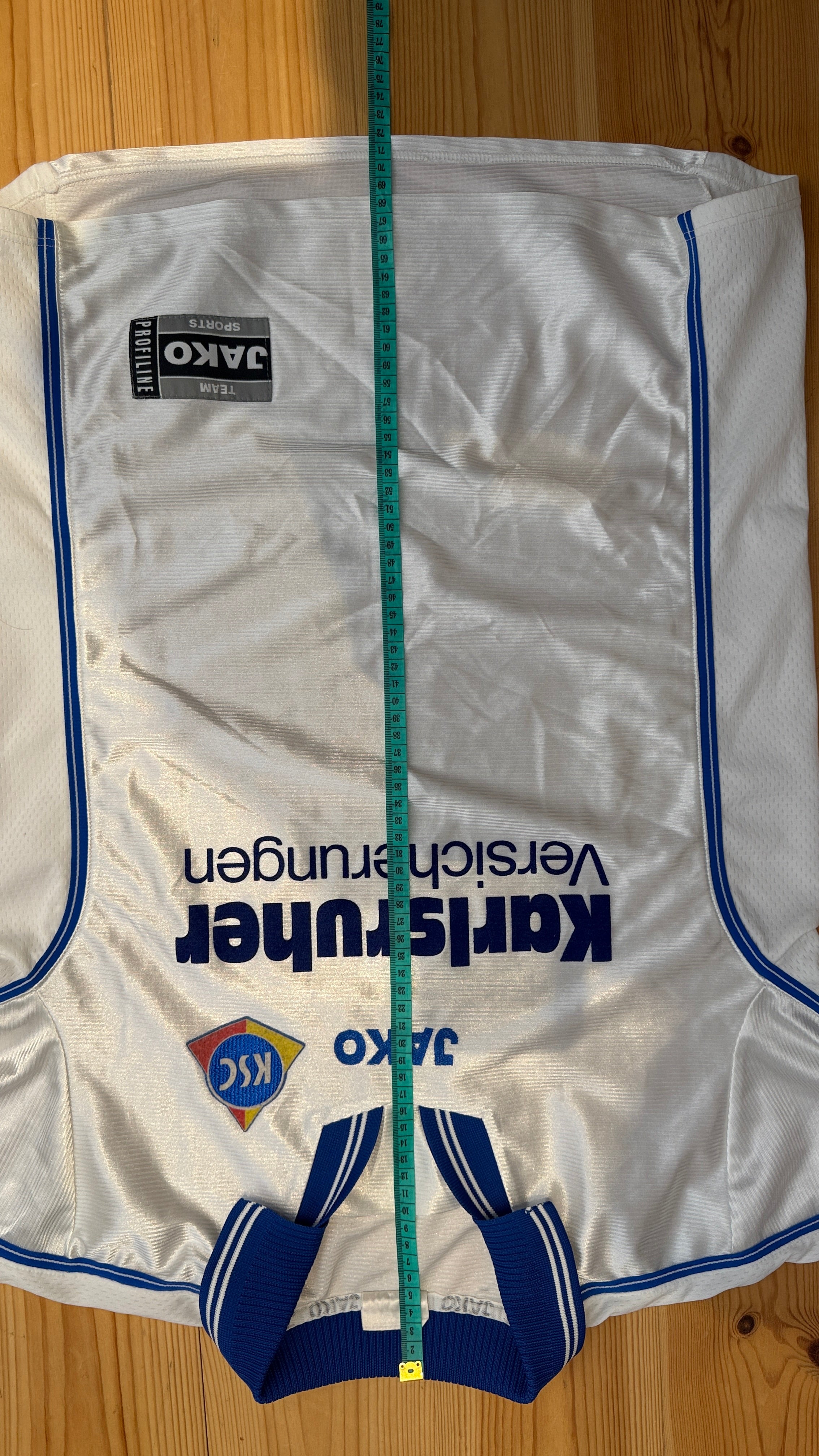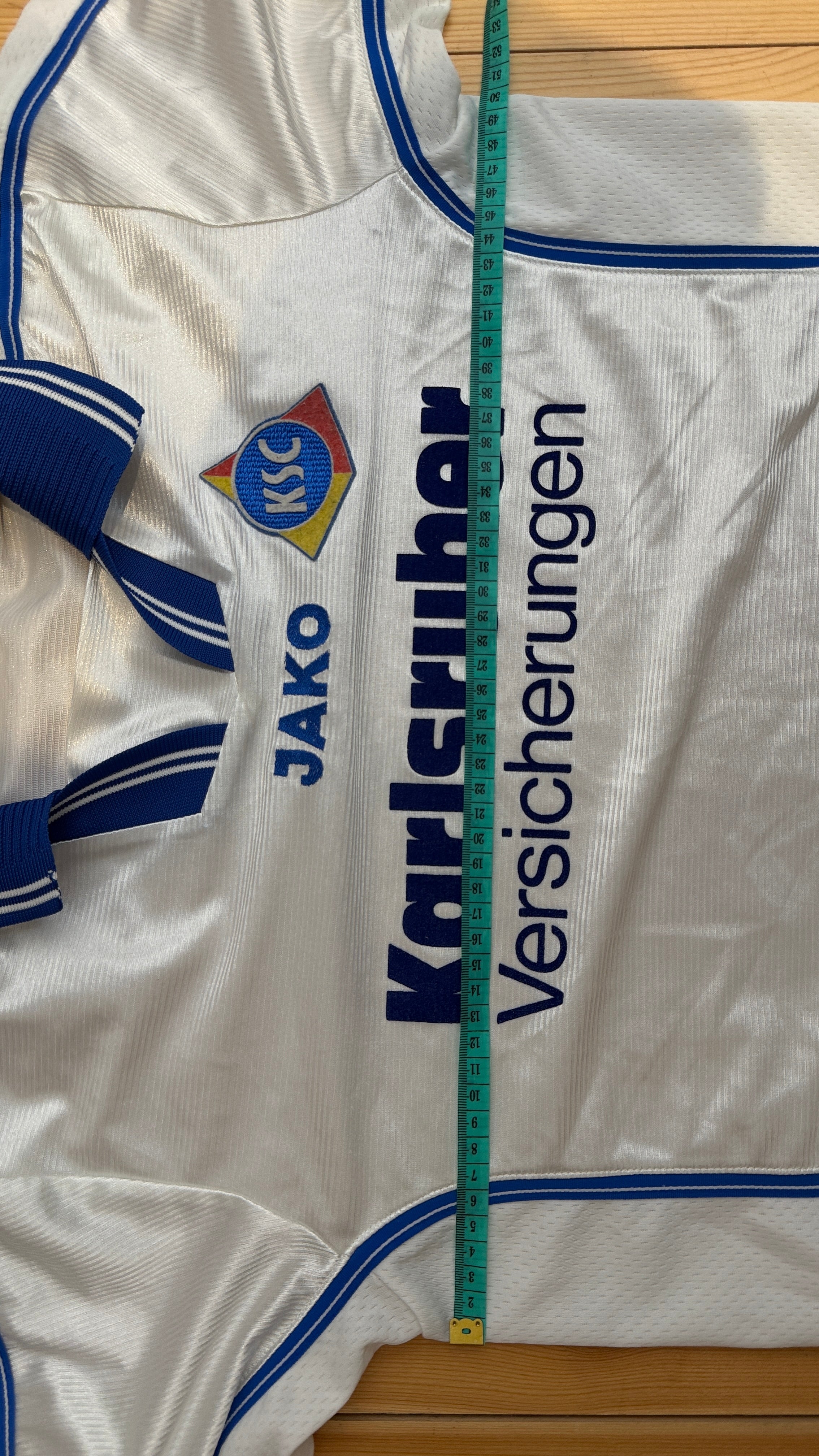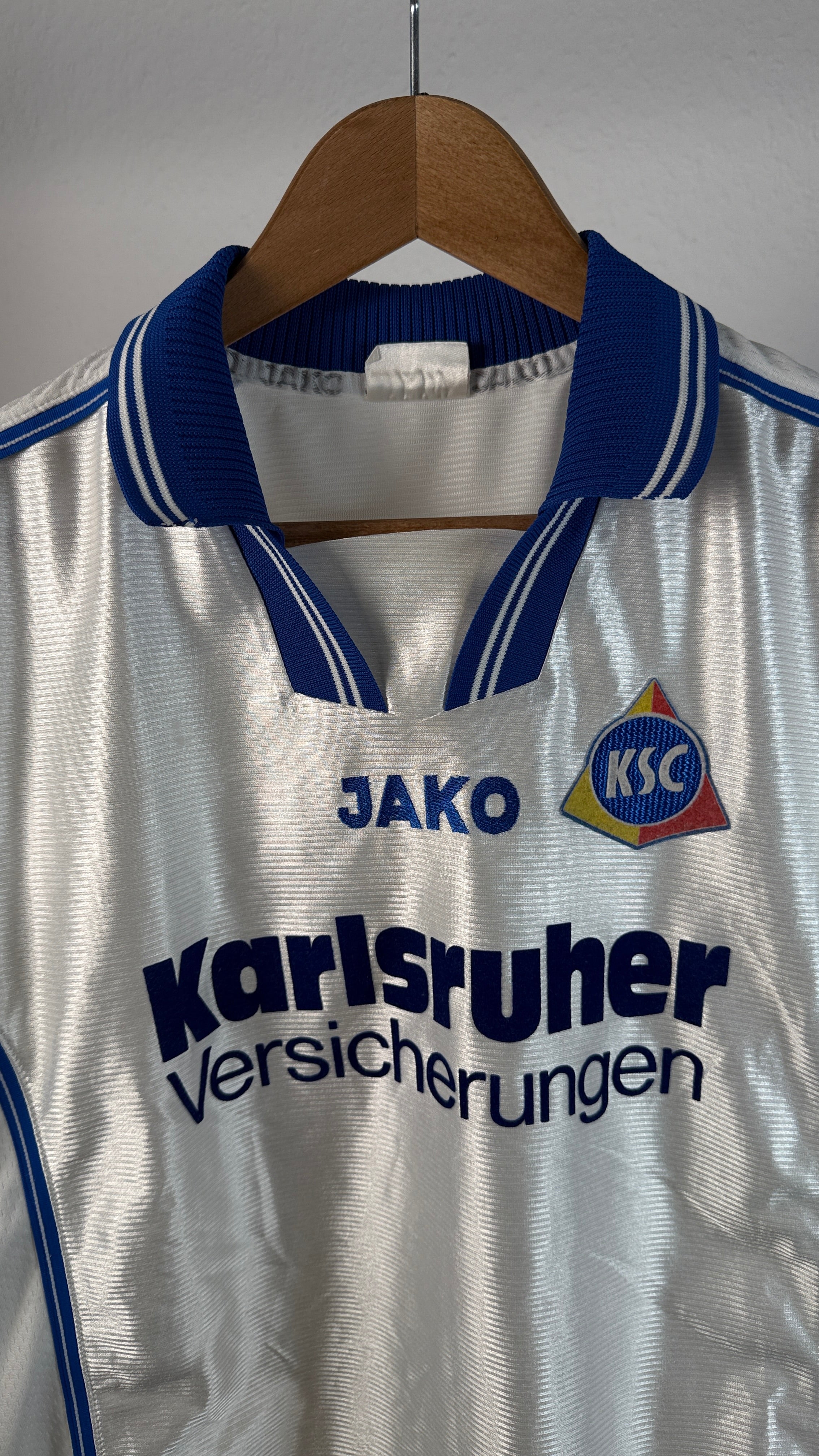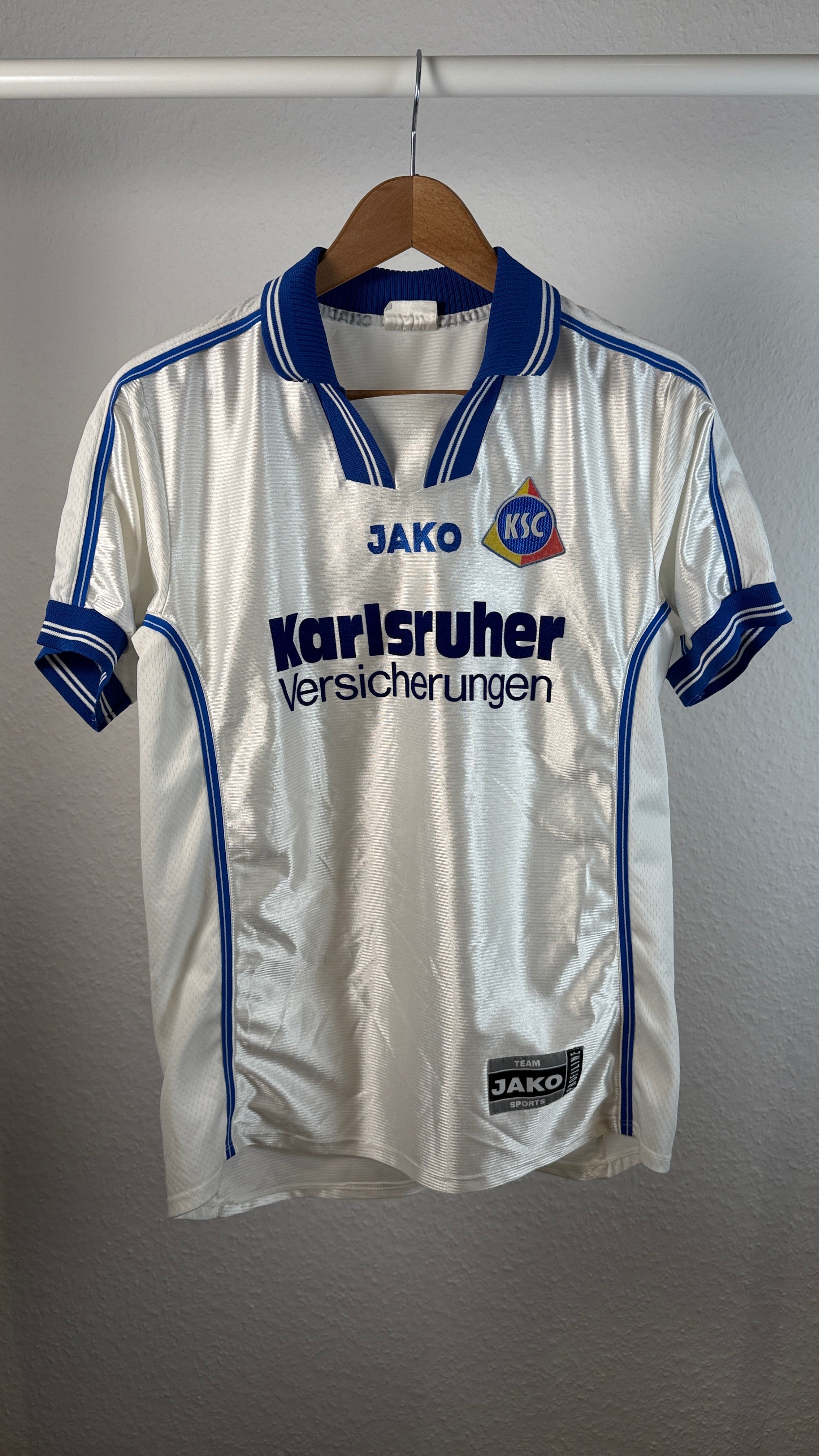 BESONDERHEITEN – Klassisches 90er-Jahre-Auswärtstrikot von Jako mit Karlsruher Versicherungen als Sponsor. Seltenes Sammlerstück in kleiner Größe und sehr gutem Erhaltungszustand.
