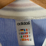 Originales KSC-Auswärtstrikot aus der Saison 1996/97 mit Flock von Keller (#17), klassischem adidas-Design der 90er, auffälligem Strukturmuster und gesticktem Vereinswappen.