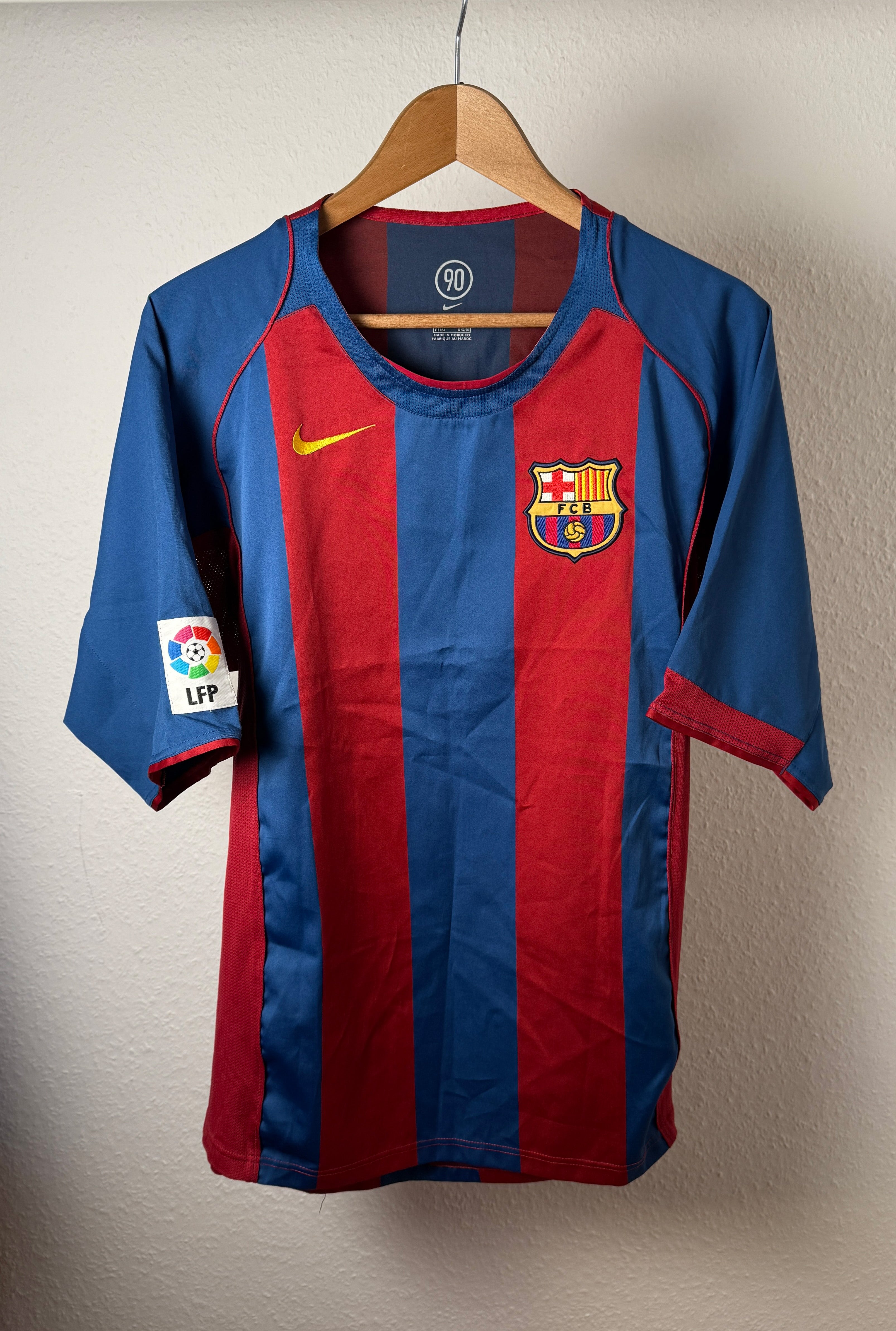 Besonderheiten: Original Heimtrikot von FC Barcelona aus der Saison 2004/05. Ein echtes Sammlerstück für Barcelona-Fans und Liebhaber von Vintage-Fußballtrikots.