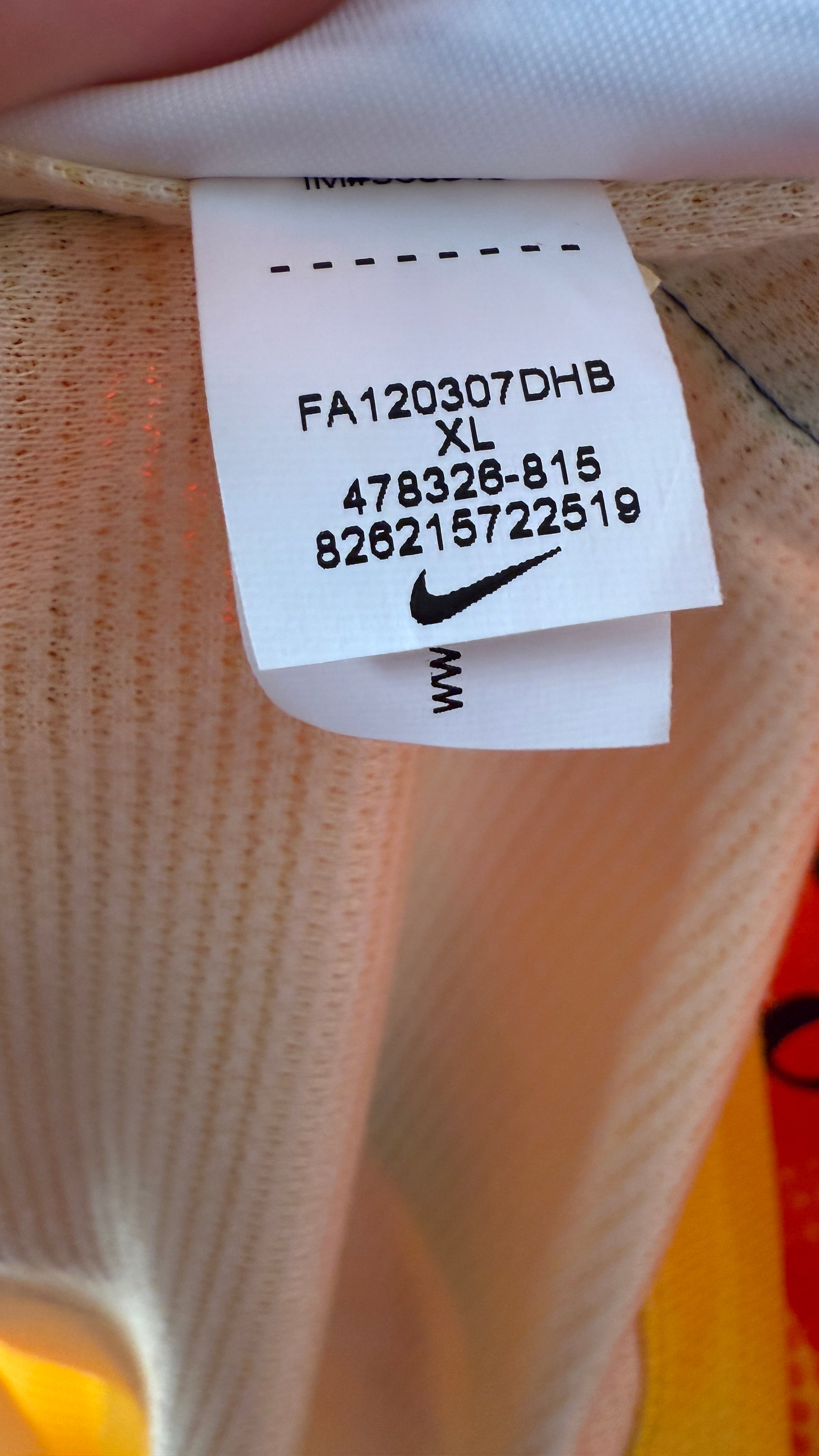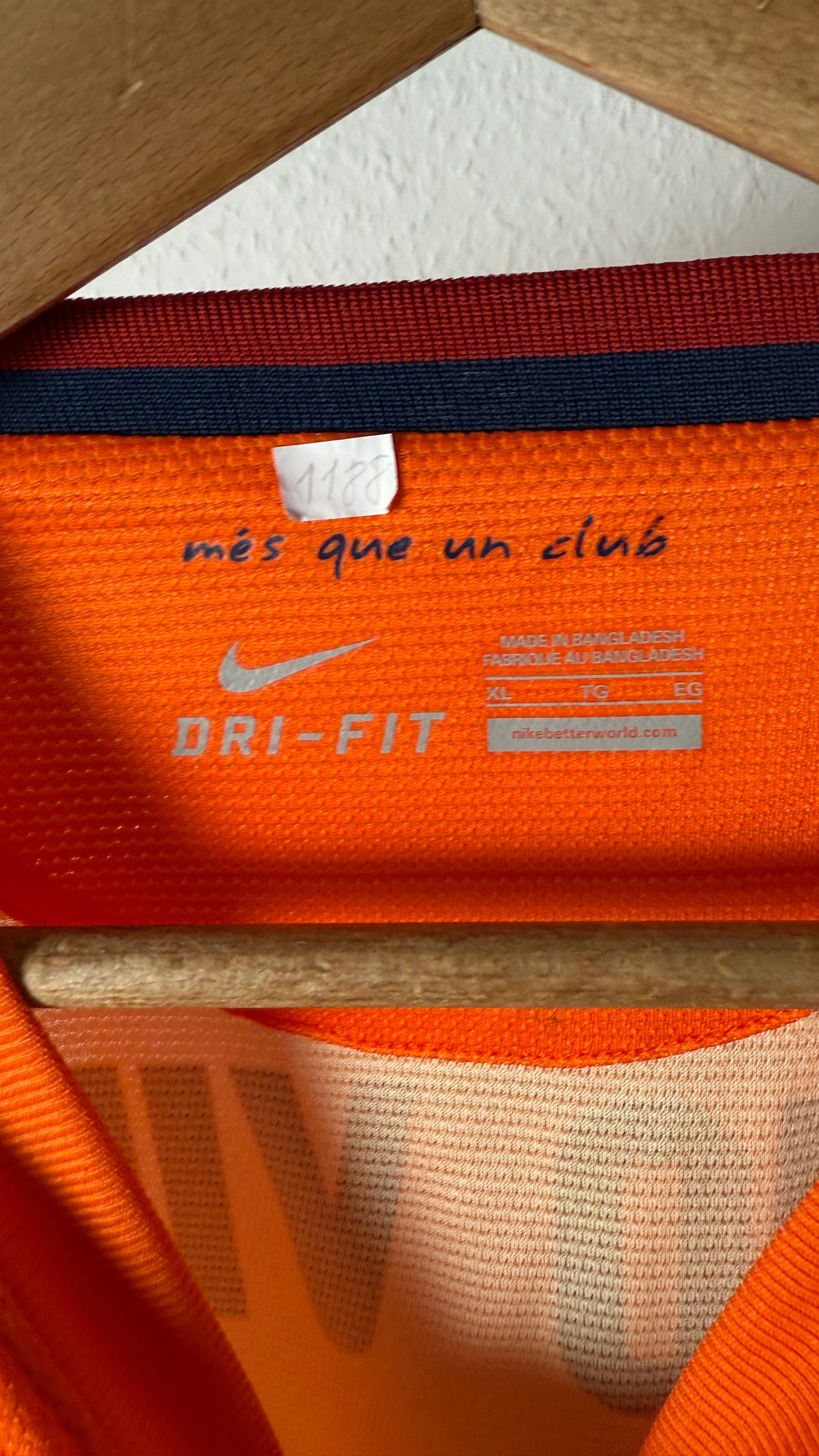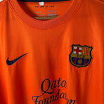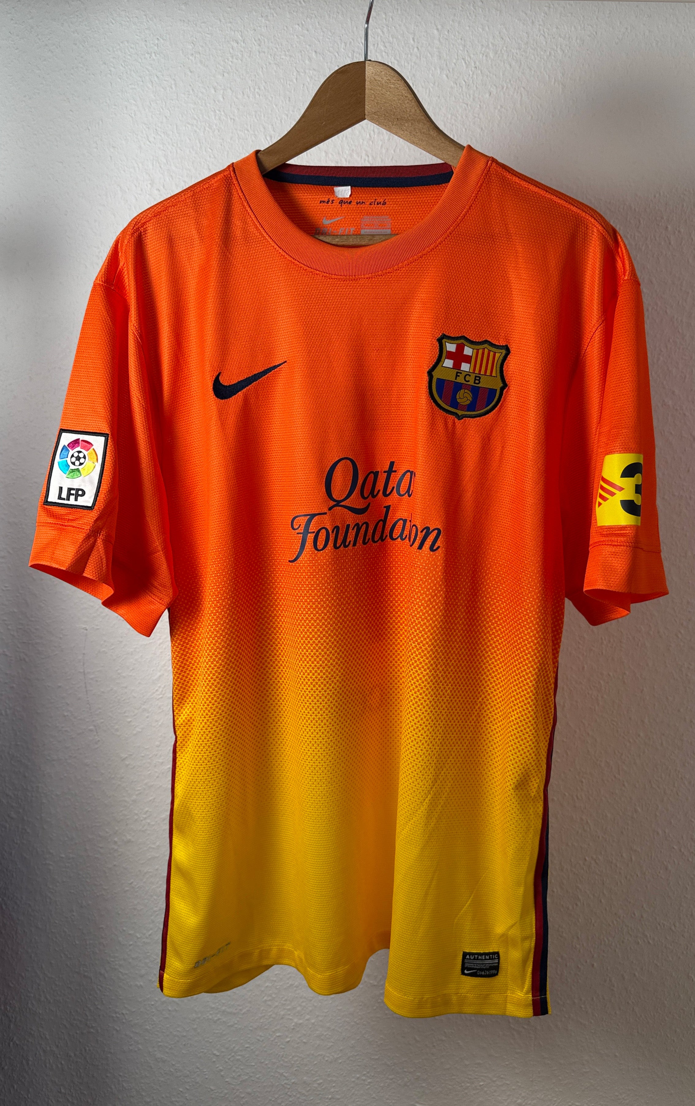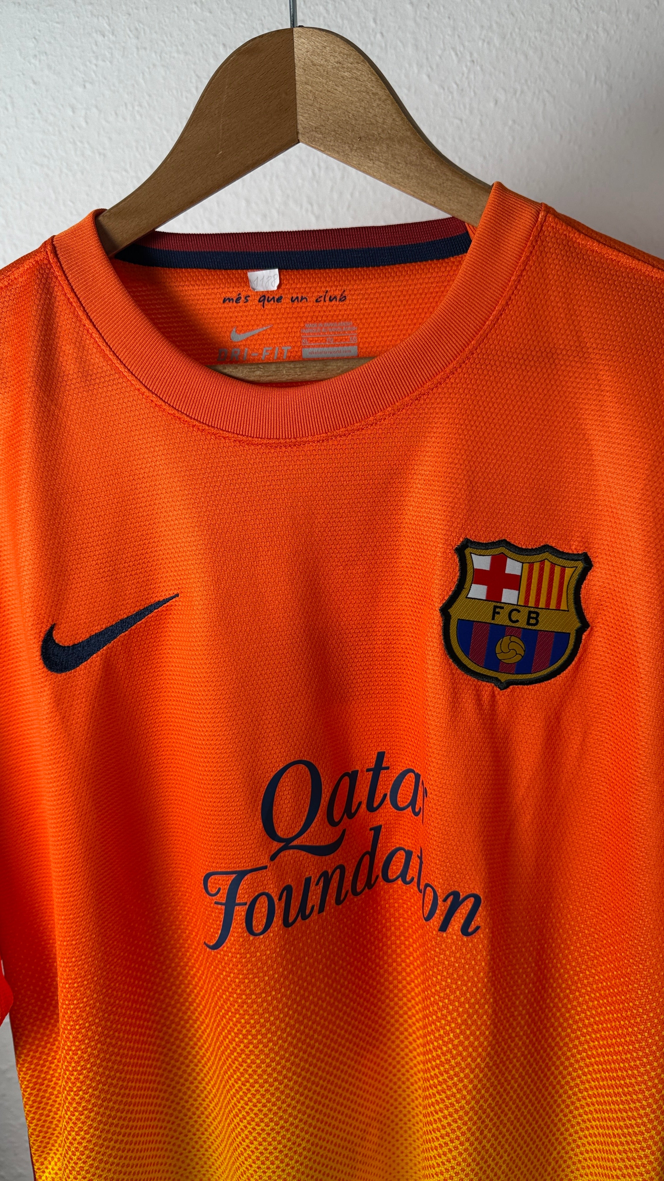 BESONDERHEITEN – Auffälliges Auswärtstrikot des FC Barcelona aus der Saison 2012/13 mit ikonischem Orange-Rot-Verlauf. Typisches Nike-Design mit Qatar Foundation-Sponsor, getragen in der goldenen Ära um Messi, Xavi und Iniesta. Ein modernes Sammlerstück und echtes Highlight für Barça-Fans.