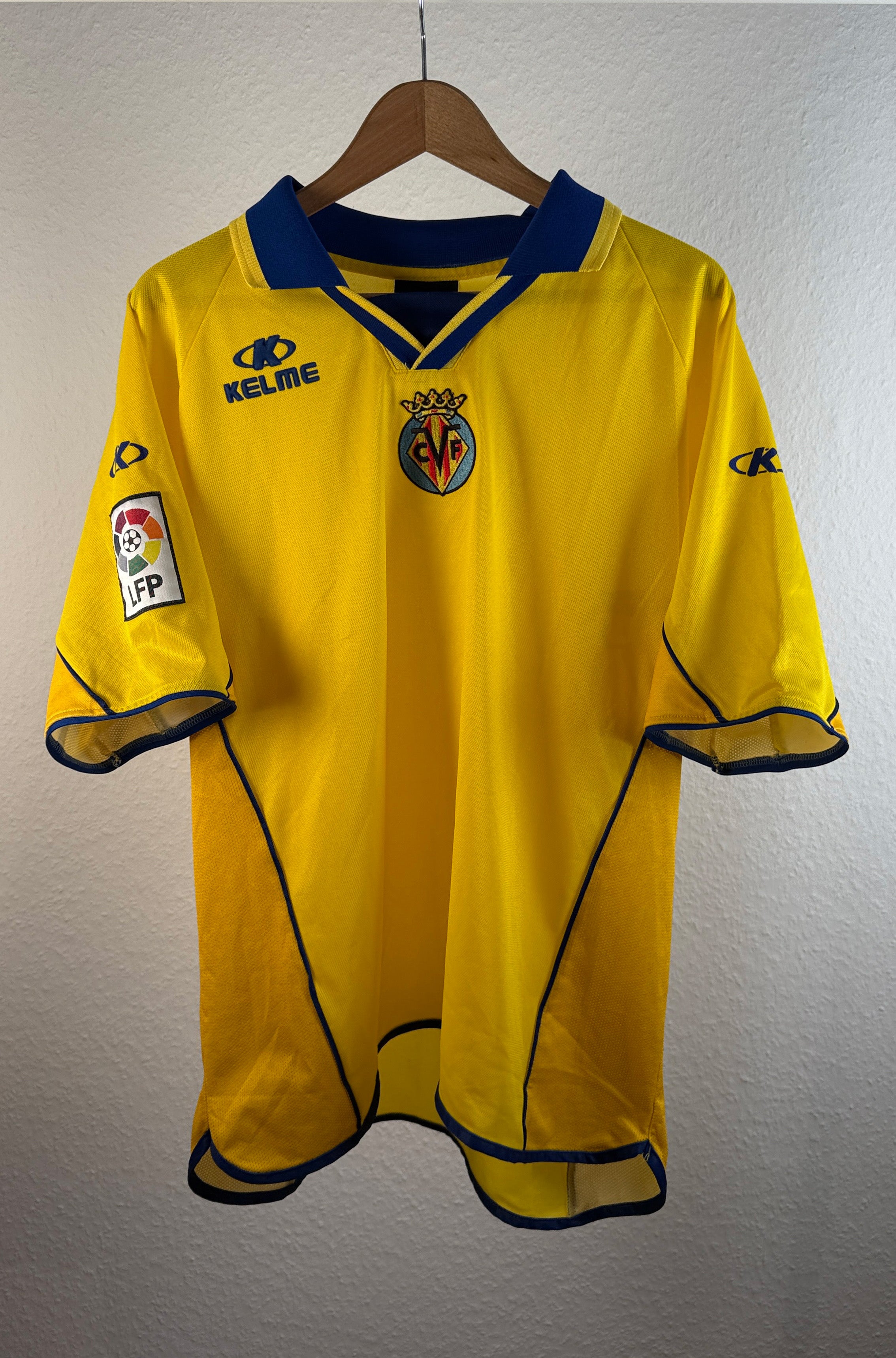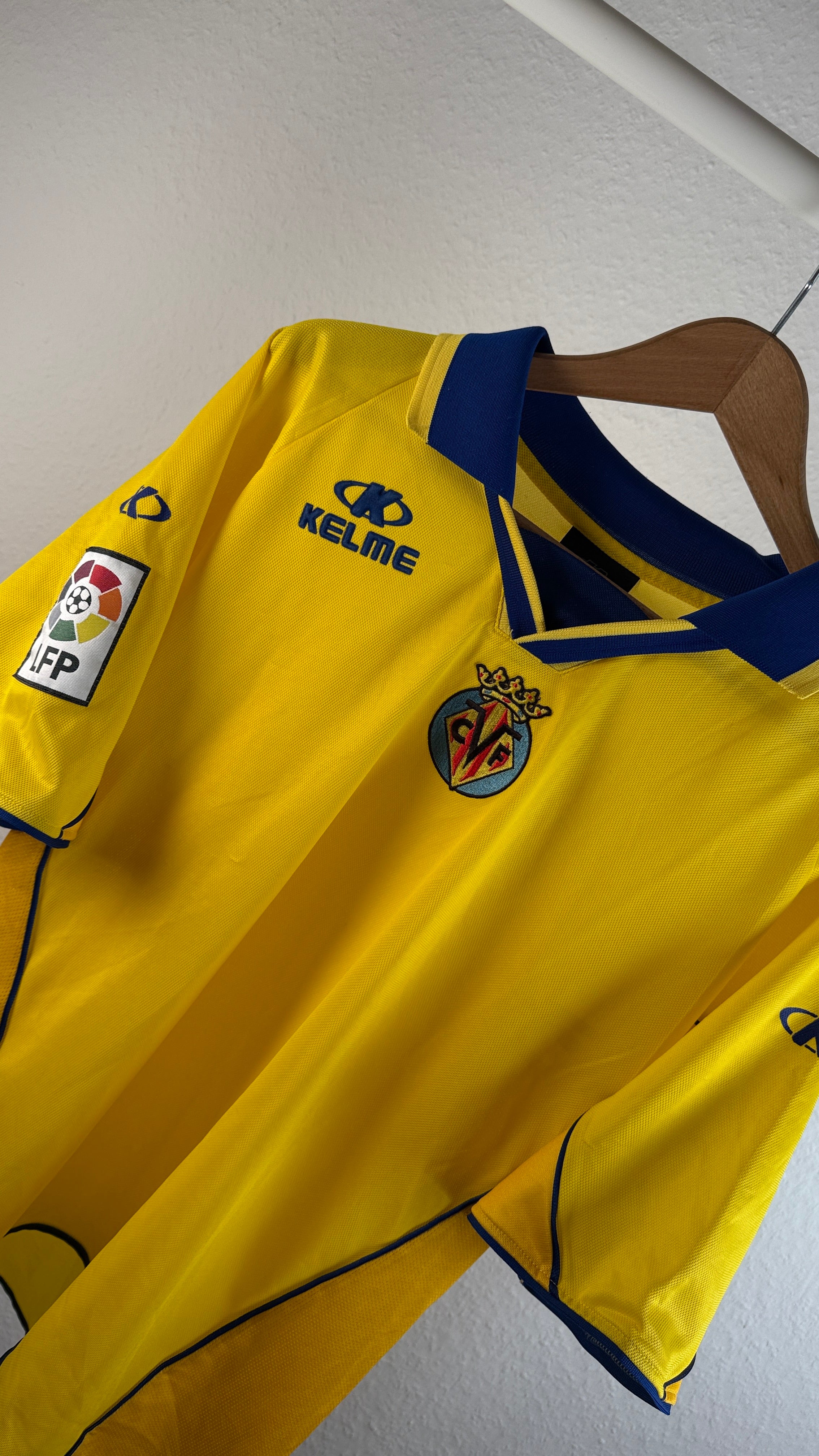 BESONDERHEITEN – Seltenes Heimtrikot des Villarreal CF aus der Saison 2002/03, noch ohne Sponsor auf der Brust. Klassisches Kelme-Design mit feinen Details – ein besonderes Sammlerstück aus den frühen 2000ern, kurz vor der Etablierung des „Submarino Amarillo“ in Europa.