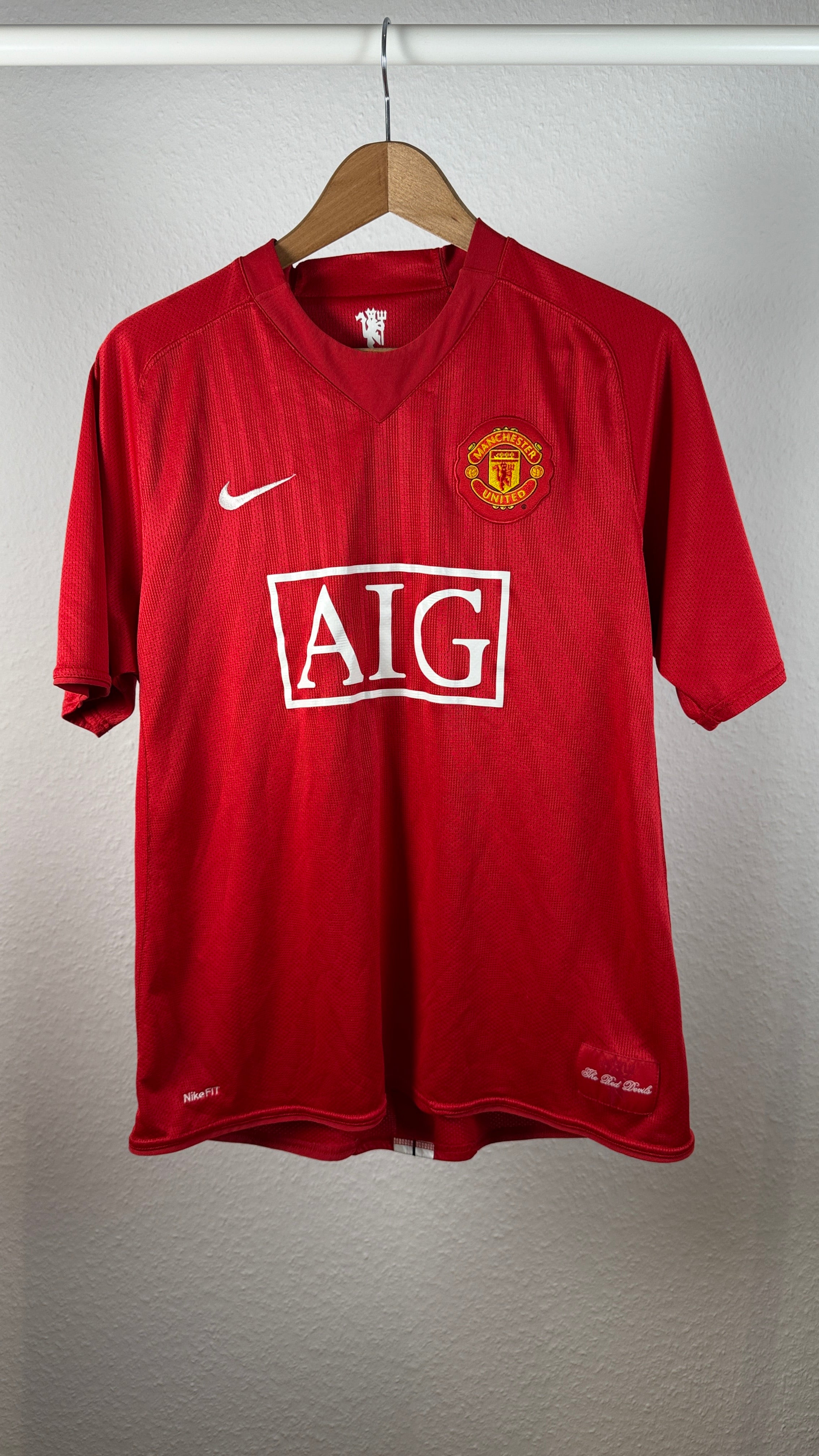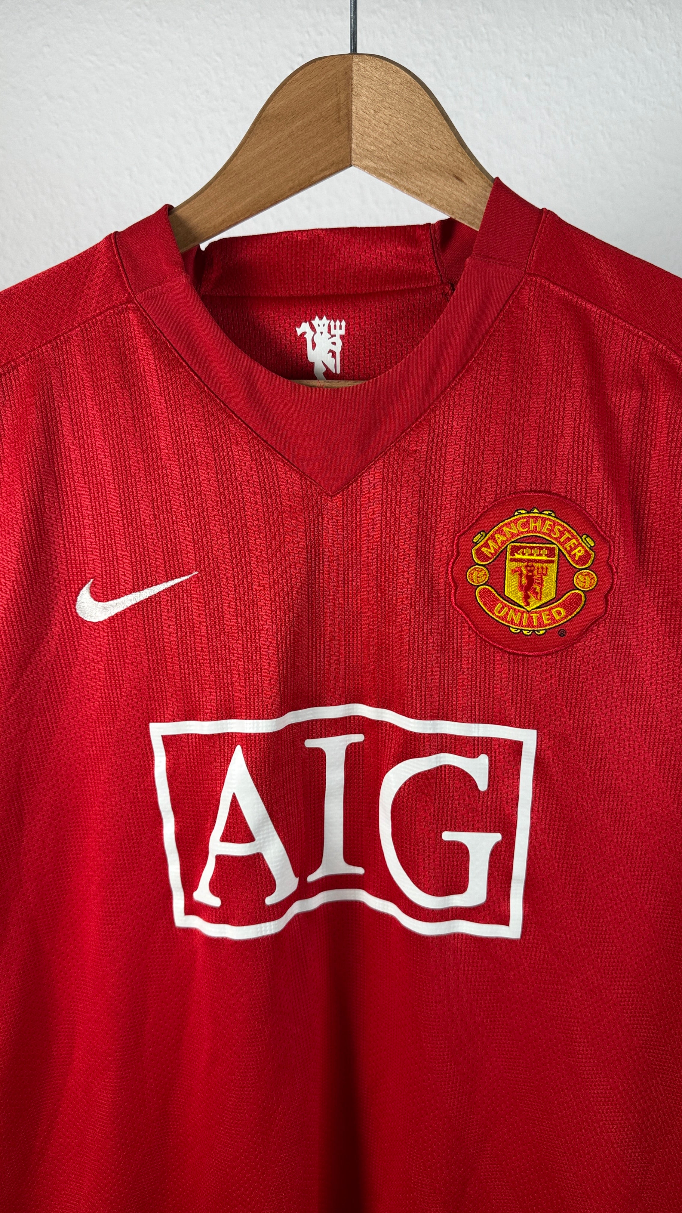 BESONDERHEITEN – Kultiges Manchester United-Heimtrikot aus der Saison 2007/08 mit originalem Cristiano Ronaldo-Flock (#7). Klassisches Nike-Design mit AIG-Sponsor aus der legendären Saison, in der United die Champions League gewann. Sehr begehrtes Sammlerstück.