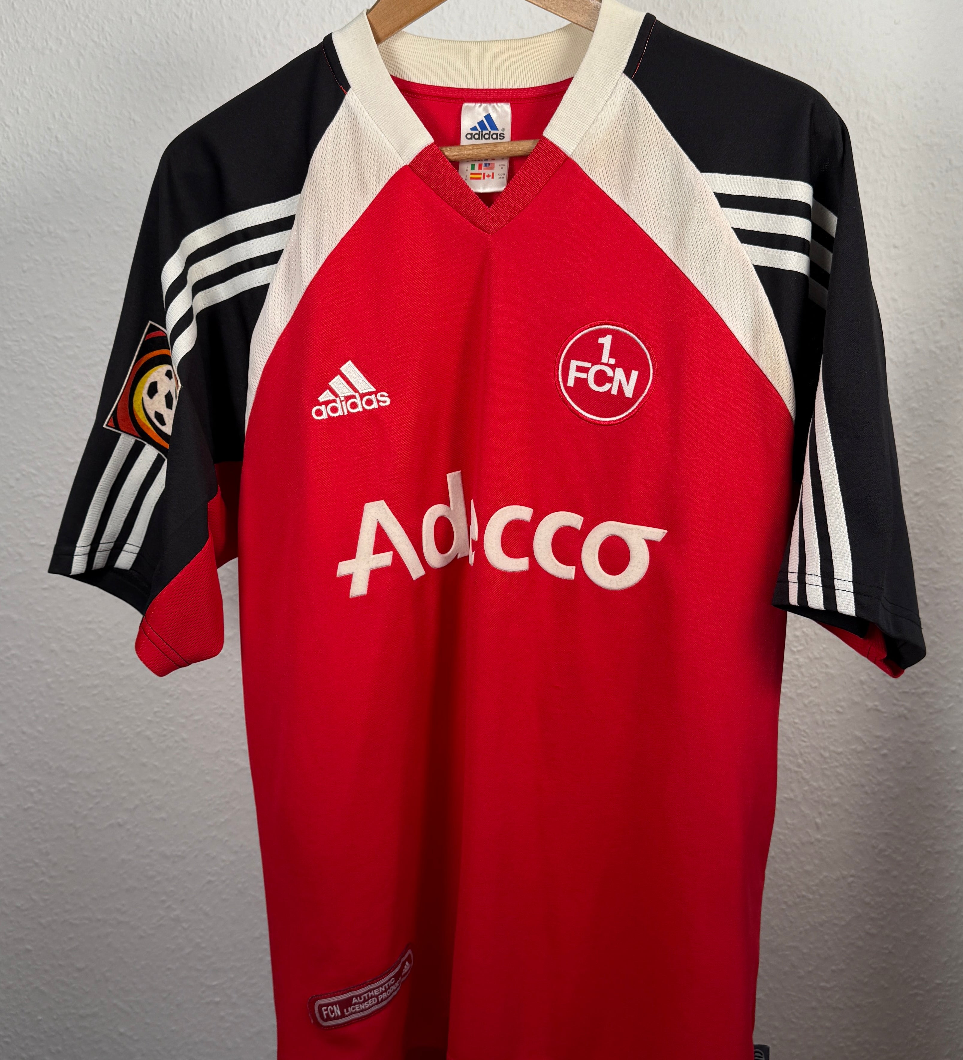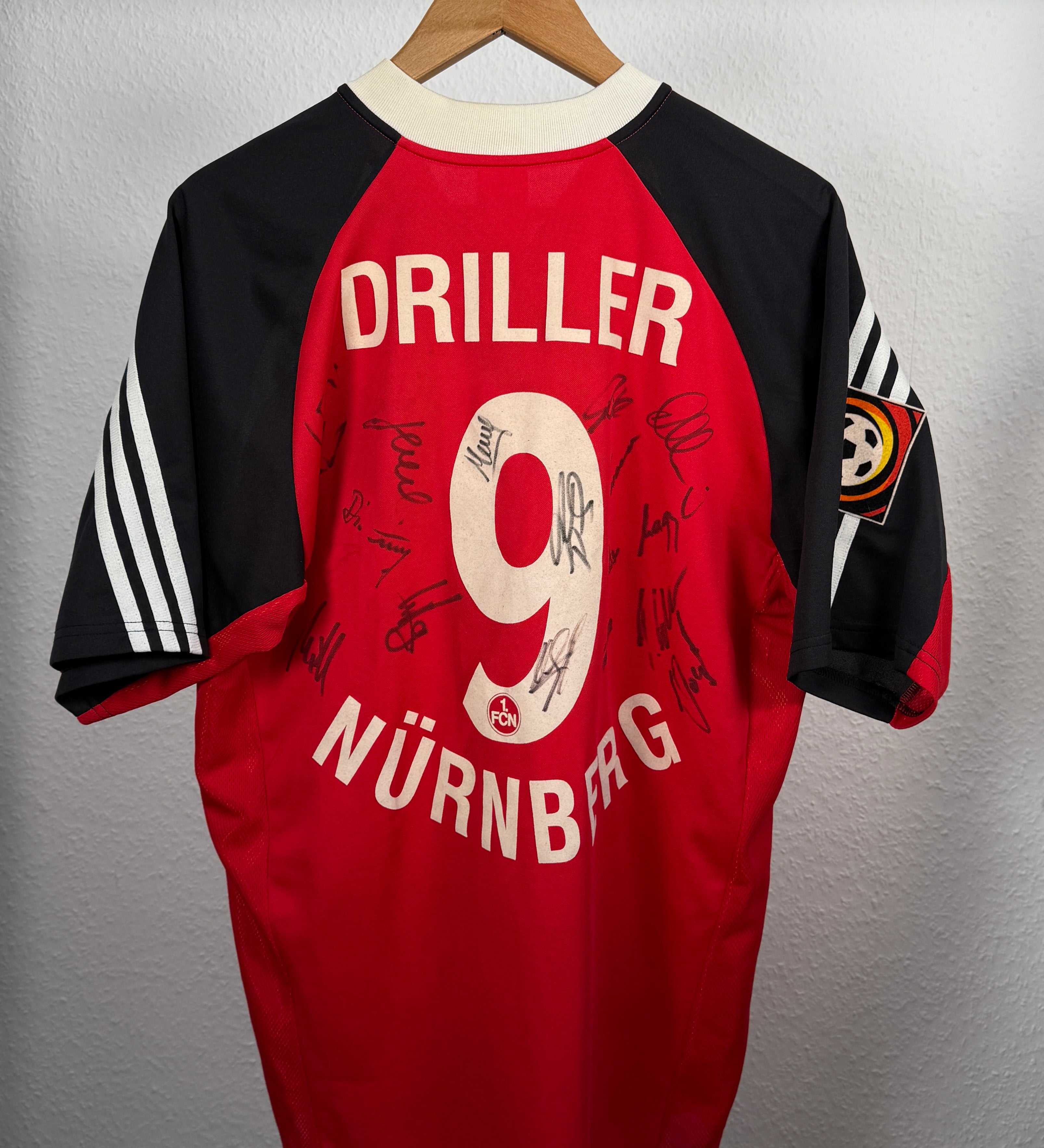 1. FC Nürnberg 2001/02 Heimtrikot – Driller – mit Kader-Unterschriften & Bundesliga-Patch (M)