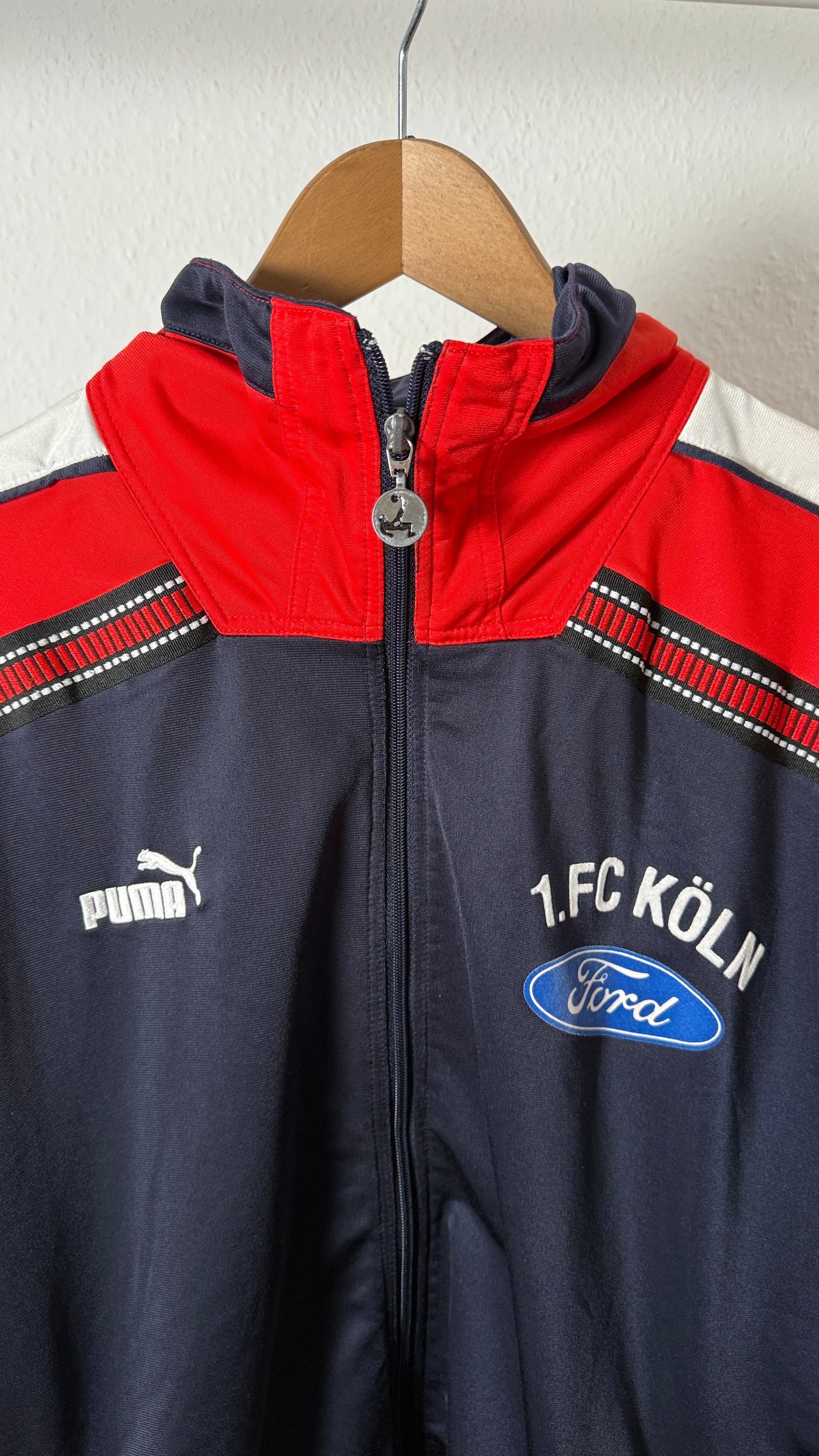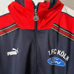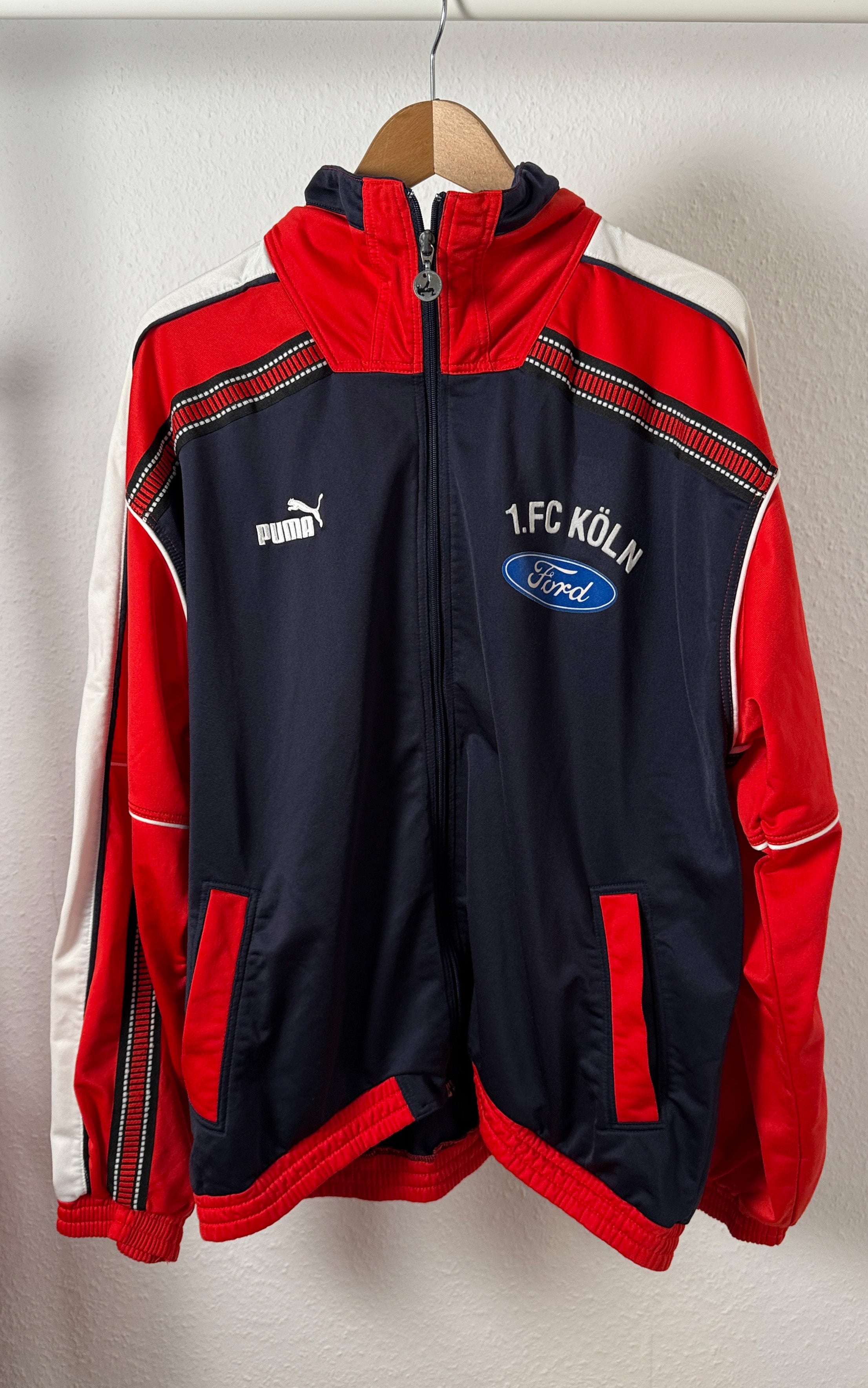 Seltene Puma CUP-Serie Trainingsjacke des 1. FC Köln aus den 90ern. Typisches Retro-Design, klassischer Ford-Sponsor und heute ein begehrtes Sammlerstück für Vintage- und Effzeh-Fans.