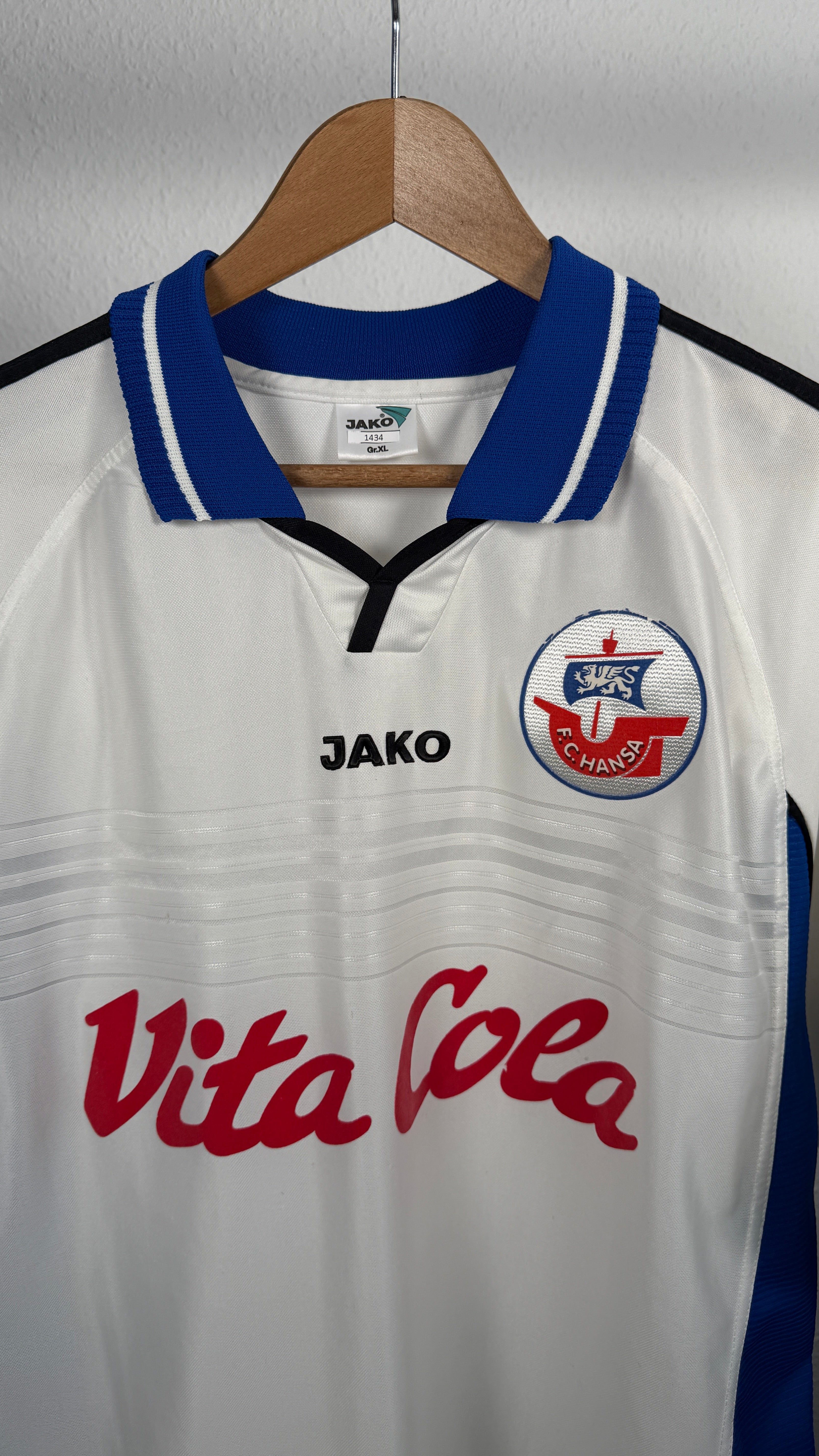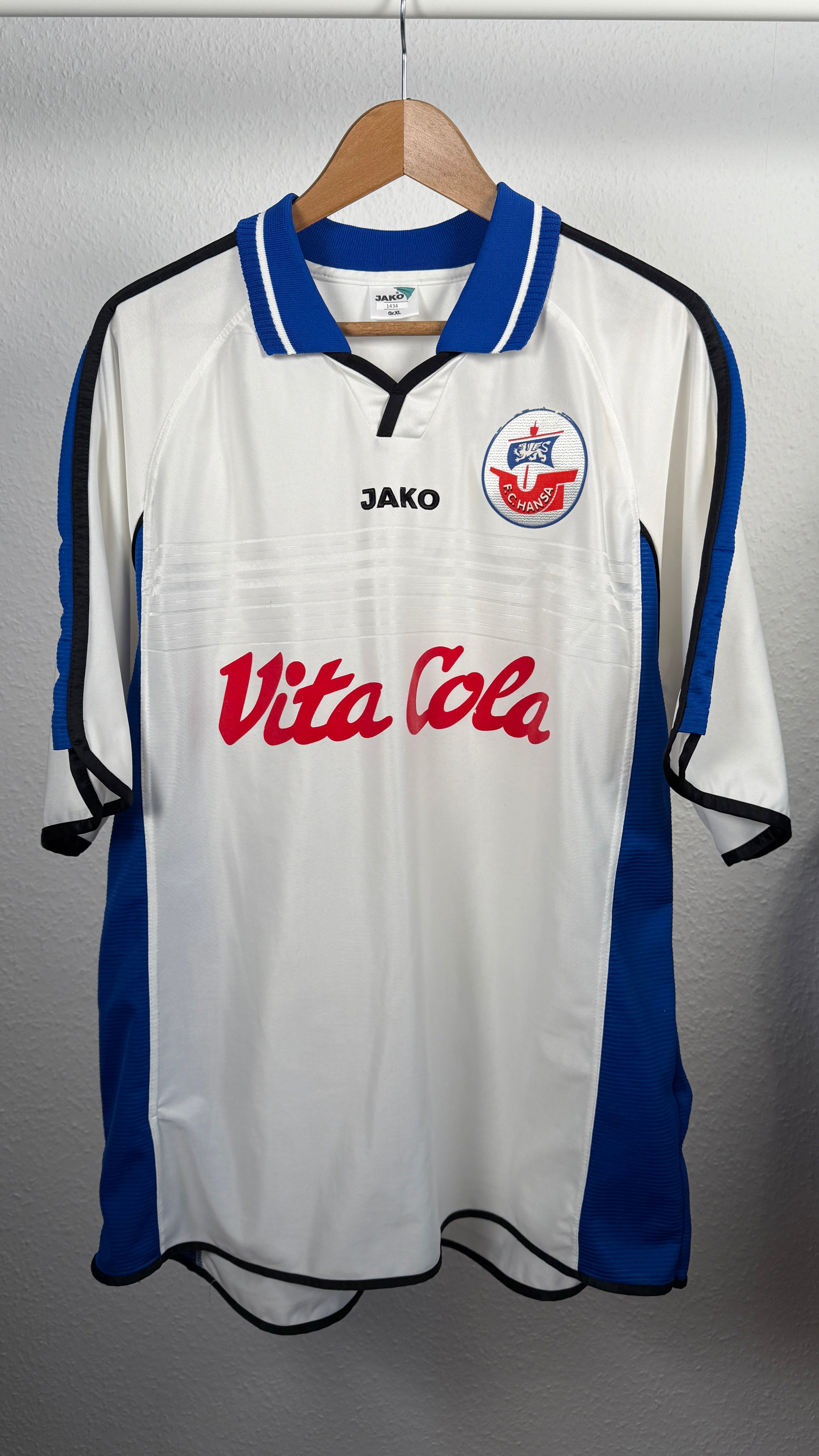 BESONDERHEITEN – Klassisches Hansa-Rostock-Auswärtstrikot aus der Mitte der 2000er mit dem kultigen Vita-Cola-Sponsor.