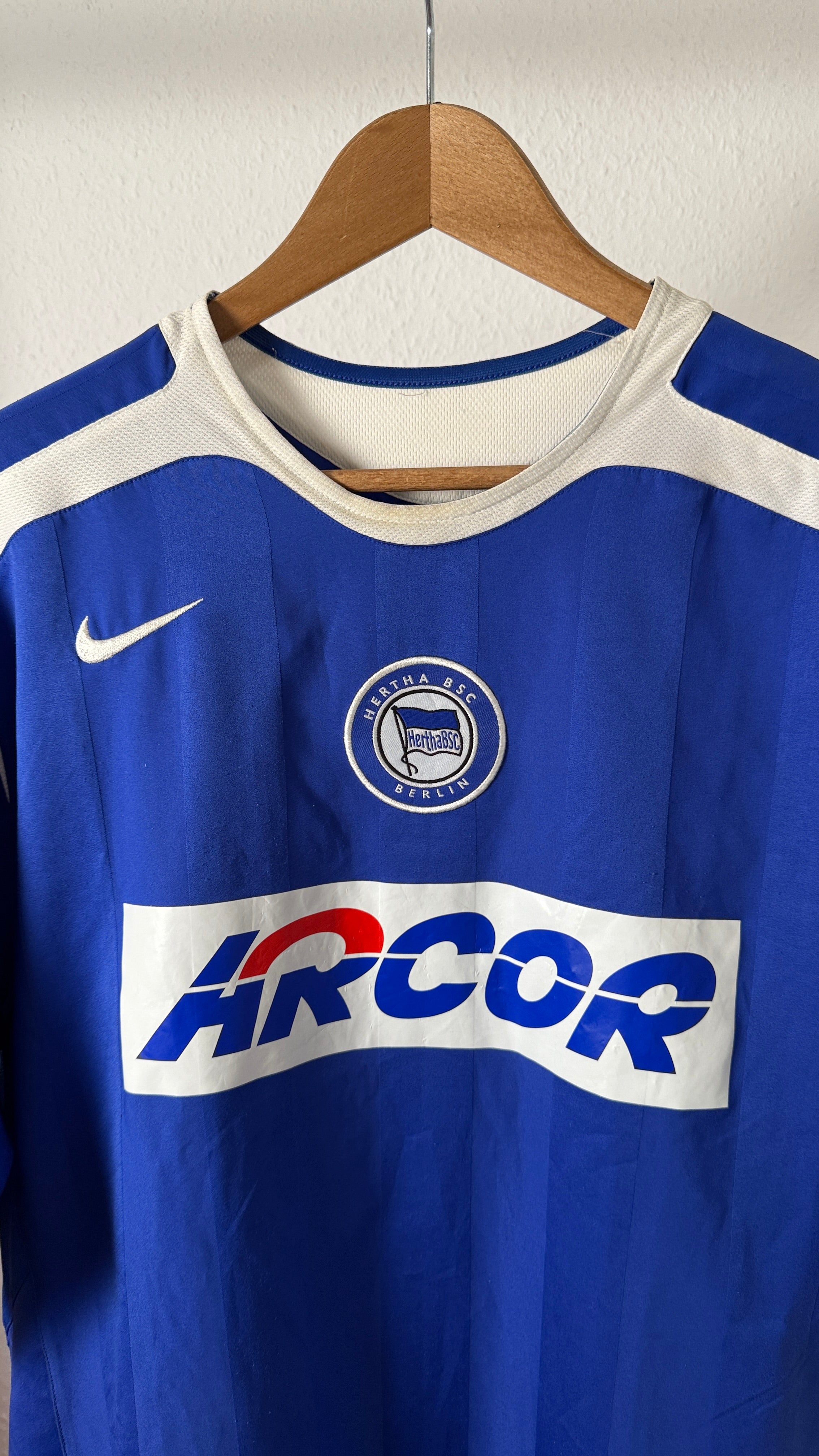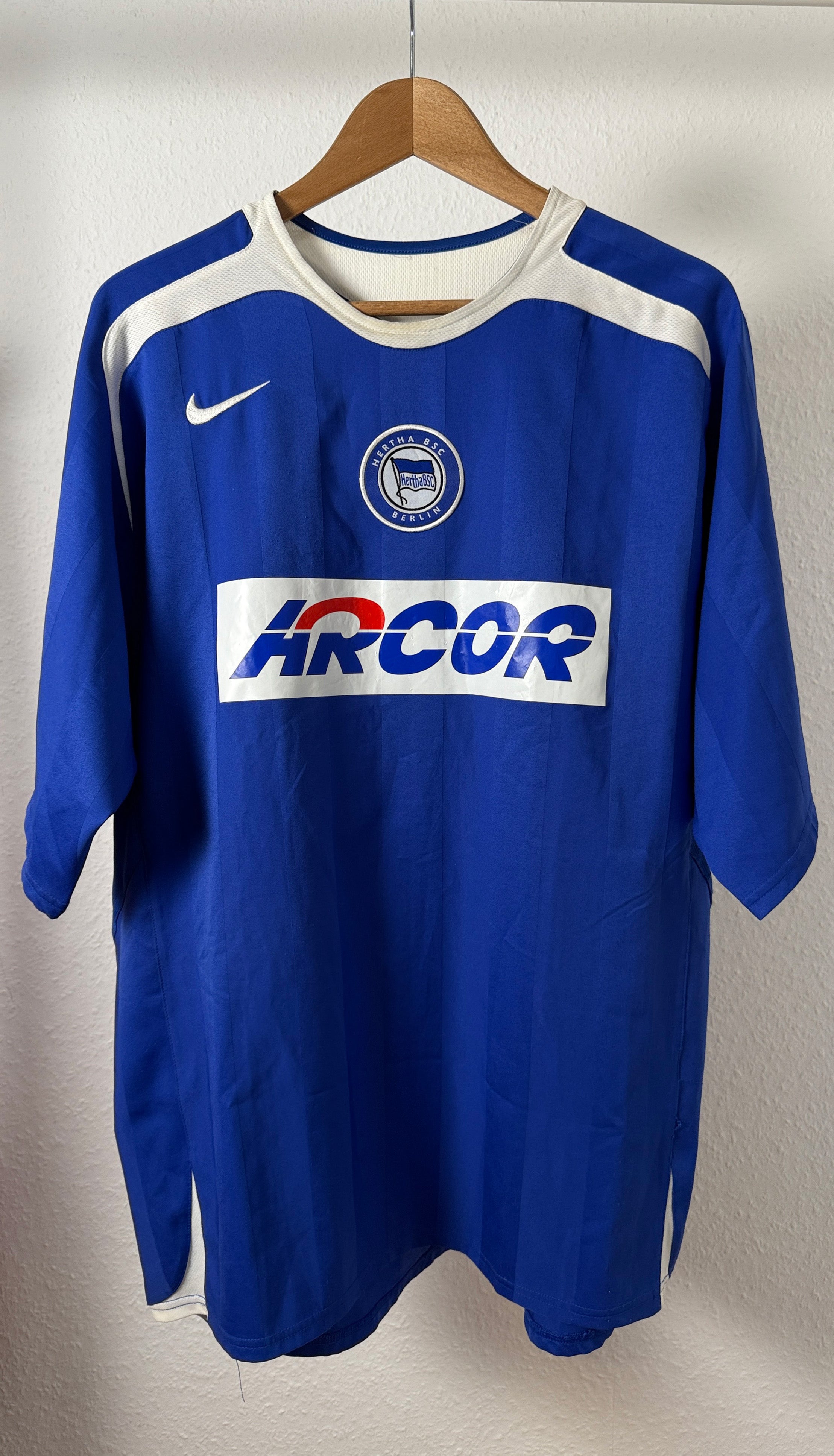Klassisches Hertha-Heimtrikot der Saison 2004/05 im typischen Nike-Look der 2000er. Mit Arcor-Sponsor und originalem Spielerflock von Giménez (#13). In XL und in diesem Zustand ein sehr schönes und gefragtes Vintage-Sammlerstück.