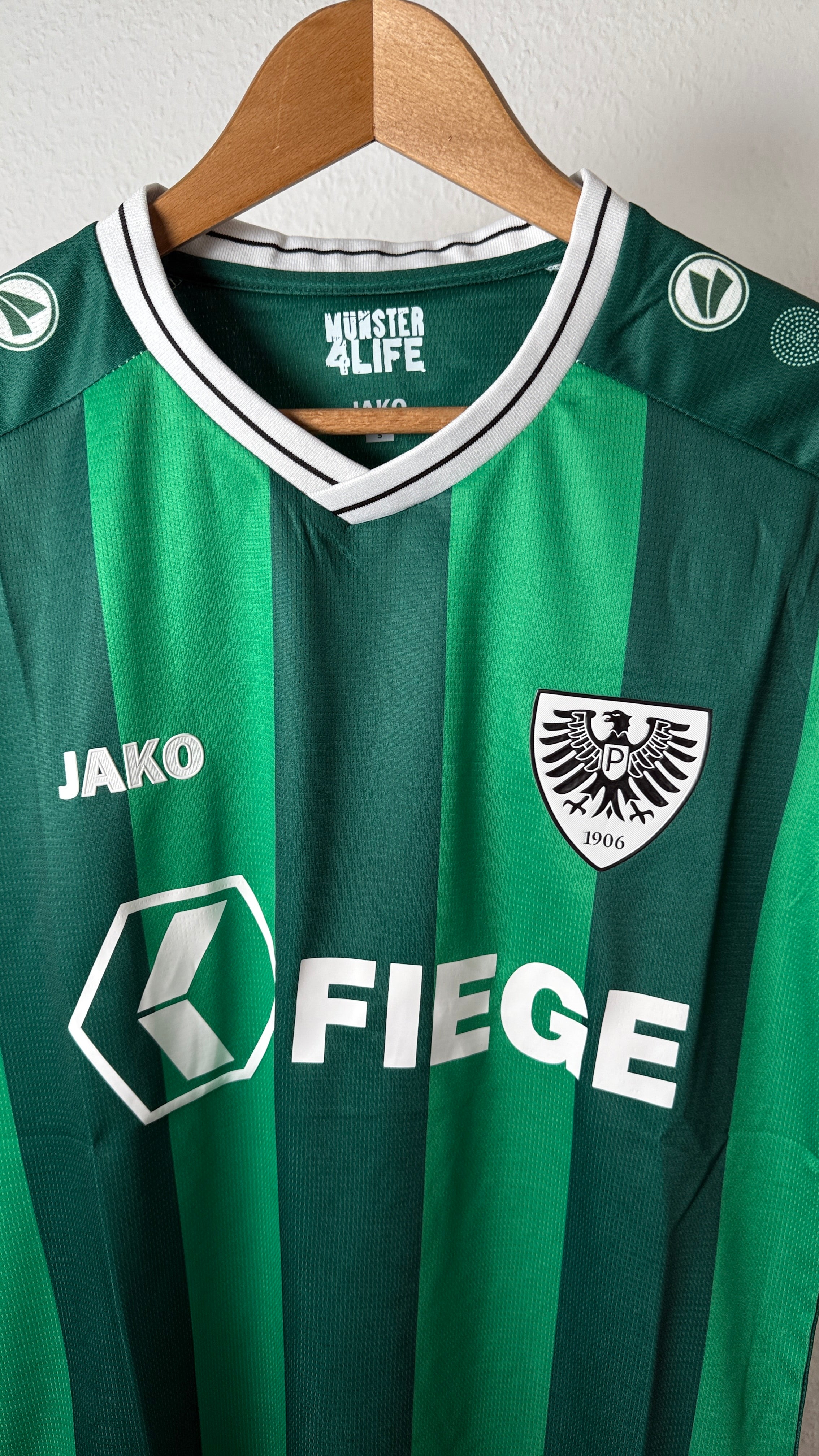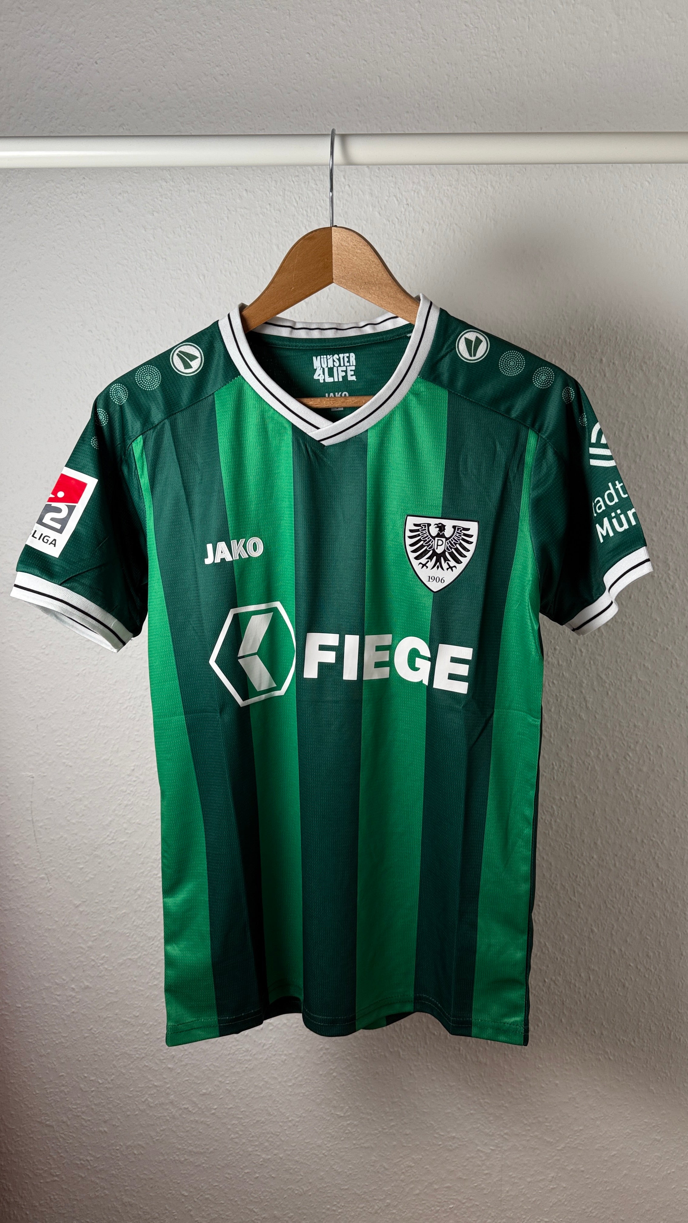 • BESONDERHEITEN – Modernes Heimtrikot von Preußen Münster aus der Saison 2025/26. Frisches, sattes Grün in Kombination mit einem sportlichen, körpernahen Schnitt.