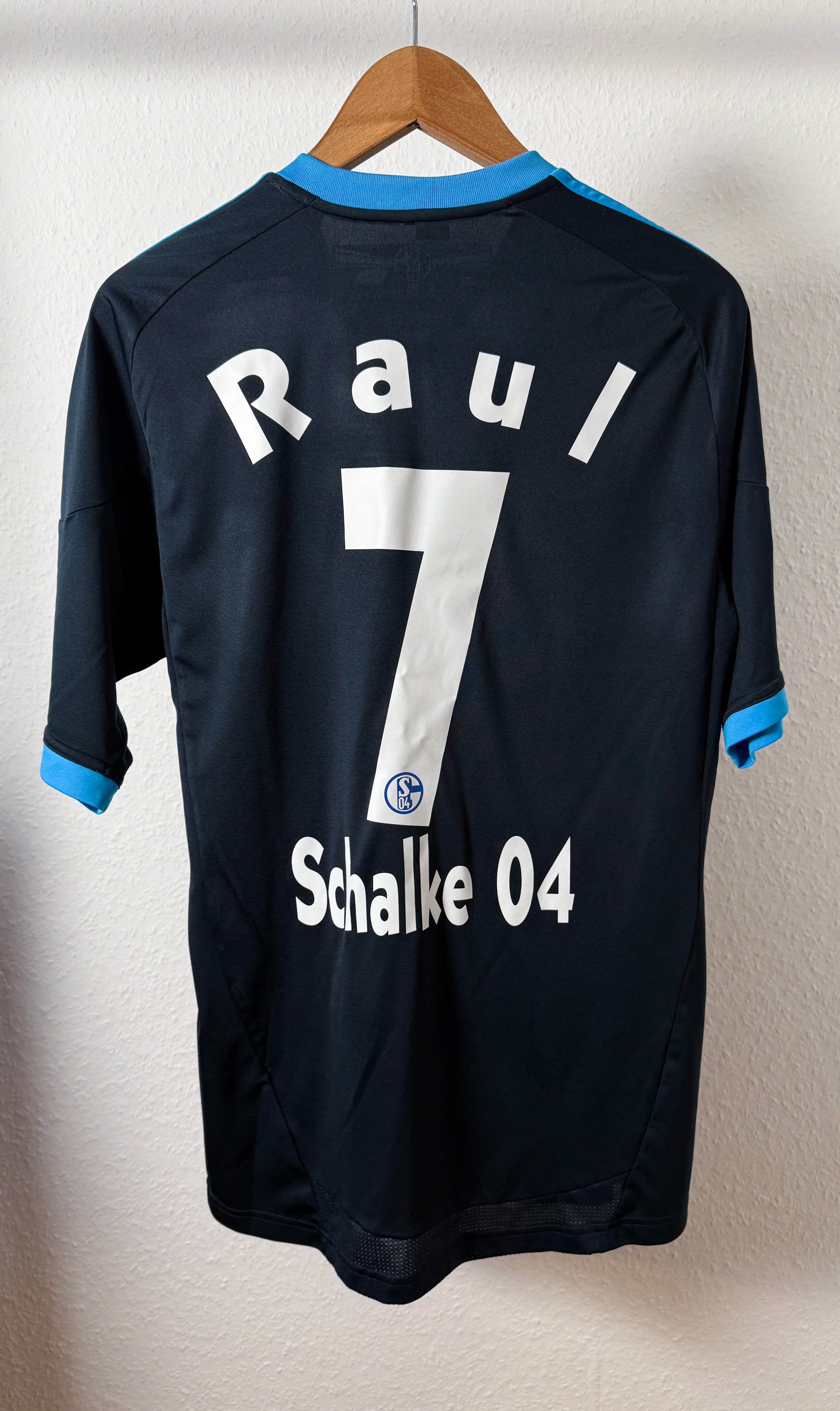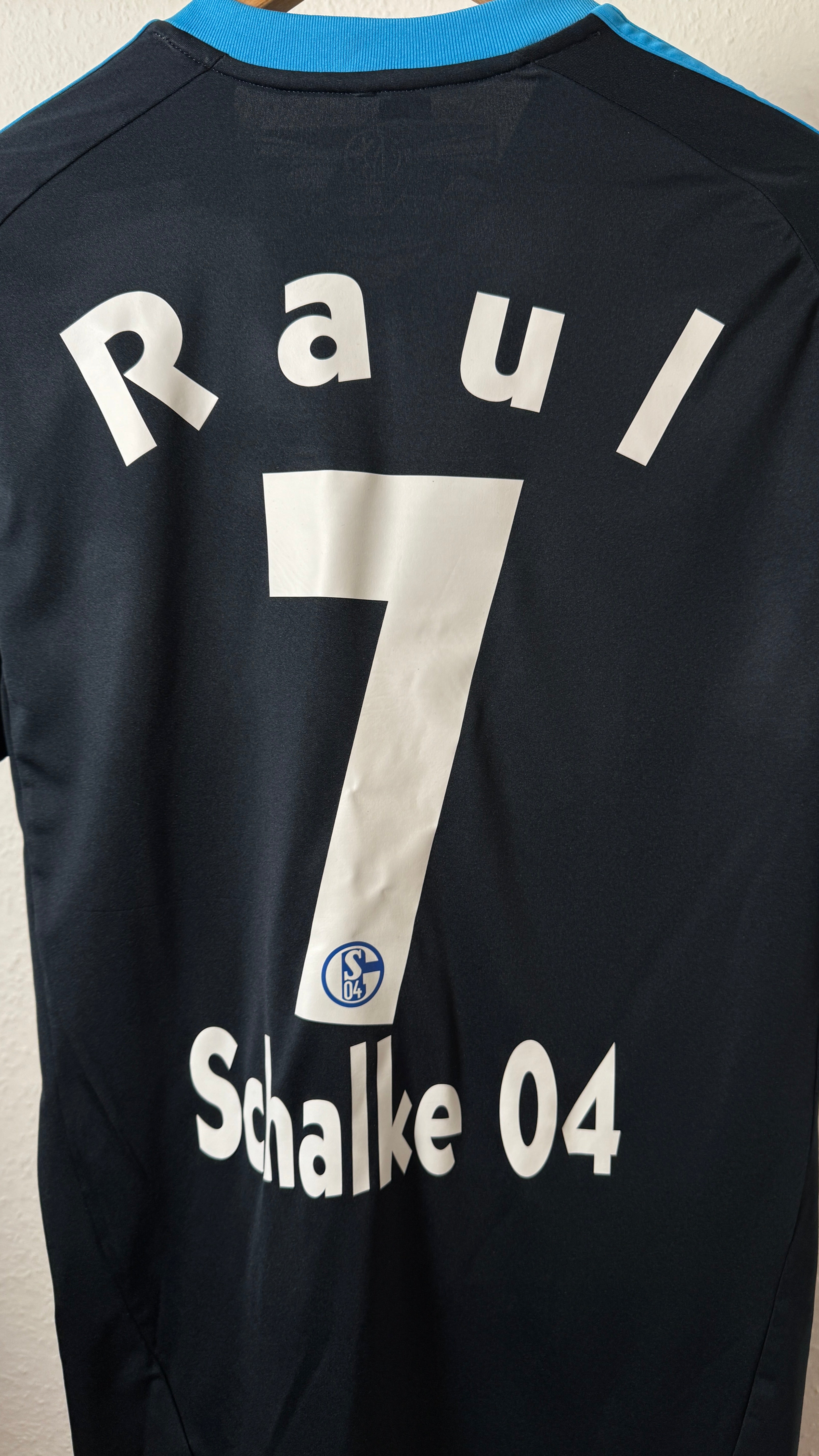 Besonderheiten: Original Auswärtstrikot von Schalke 04 aus der Saison 2010 mit dem Flock von Raul (#7), einem der größten Spieler der Vereinsgeschichte. Ein echtes Sammlerstück für Schalke-Fans und Raul-Fans.